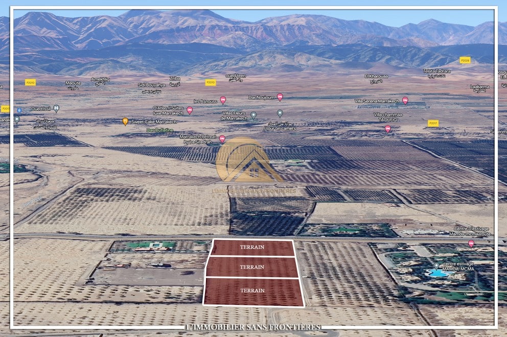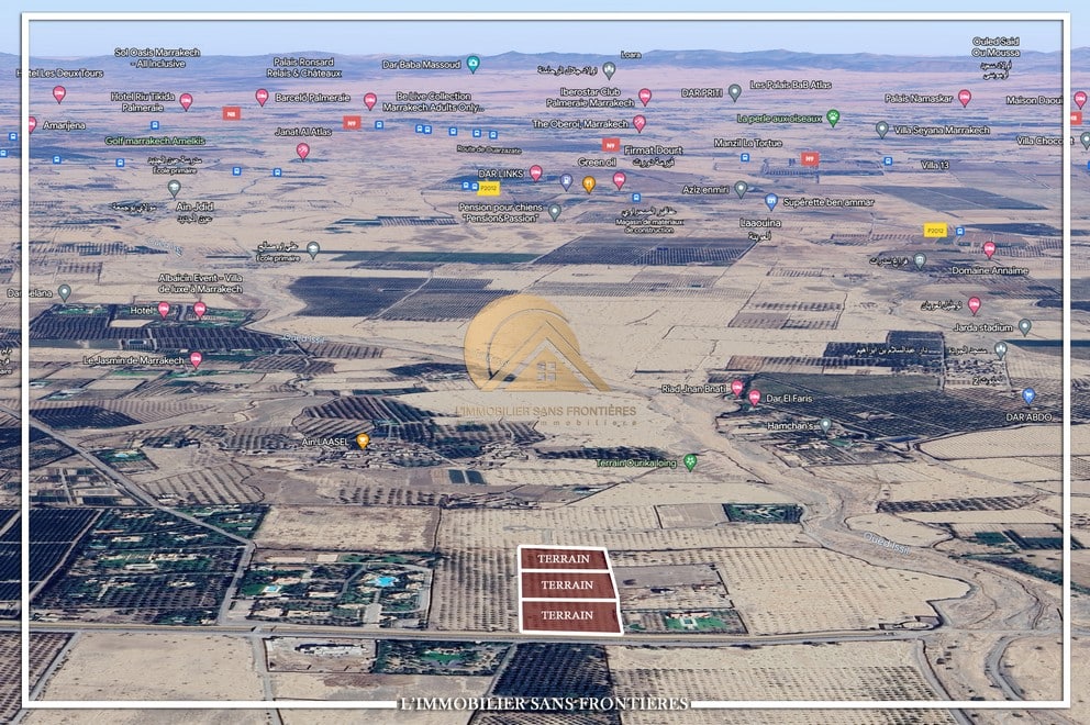 Real Estate Without Borders offers for sale this 5000 m² land plot located on Route de Fès, at only 8 km as stated. It is indicated in E1 zone.