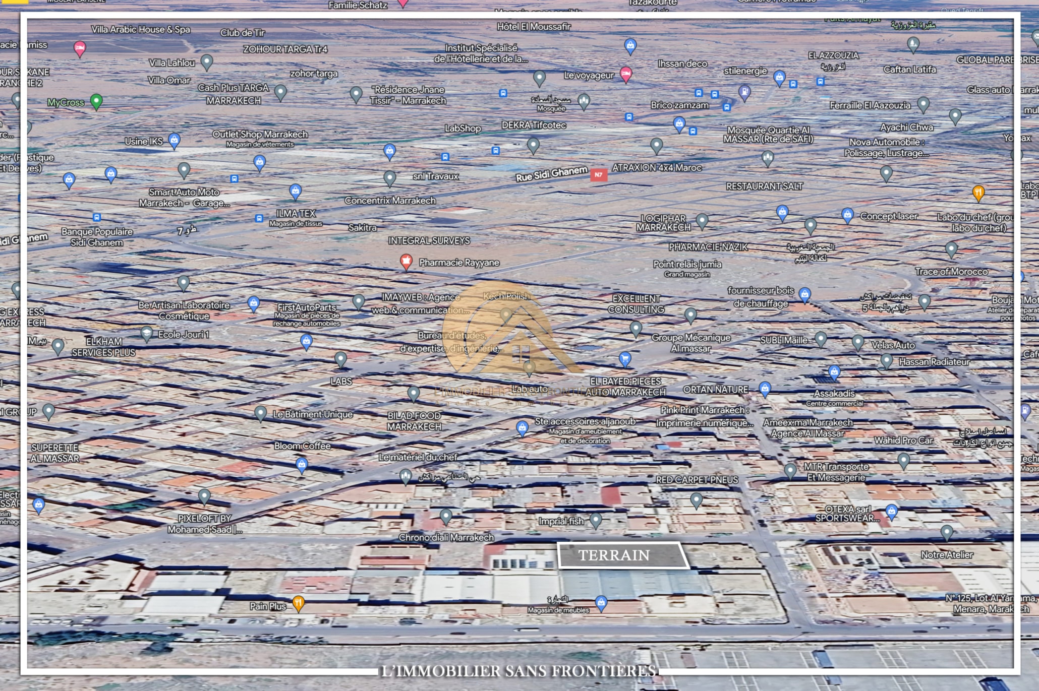 Real Estate Without Borders offers this 600 m² land for sale in Hay Al Massar, Marrakech, stated close to the city center. The location is presented as providing easy access to amenities.