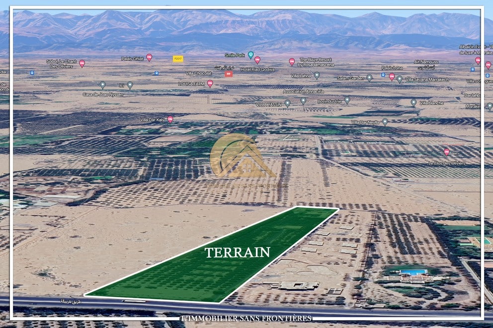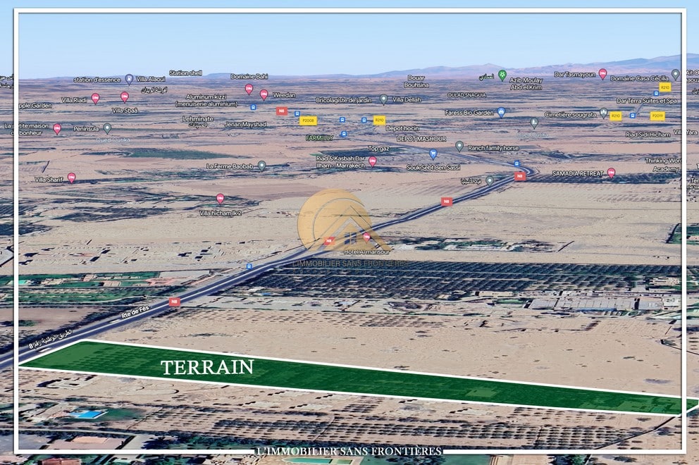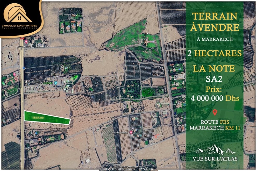 Real Estate Without Borders offers this titled land for sale on Route de Fes km 12, Marrakech. The stated area is 2 hectares, with SA2 classification.