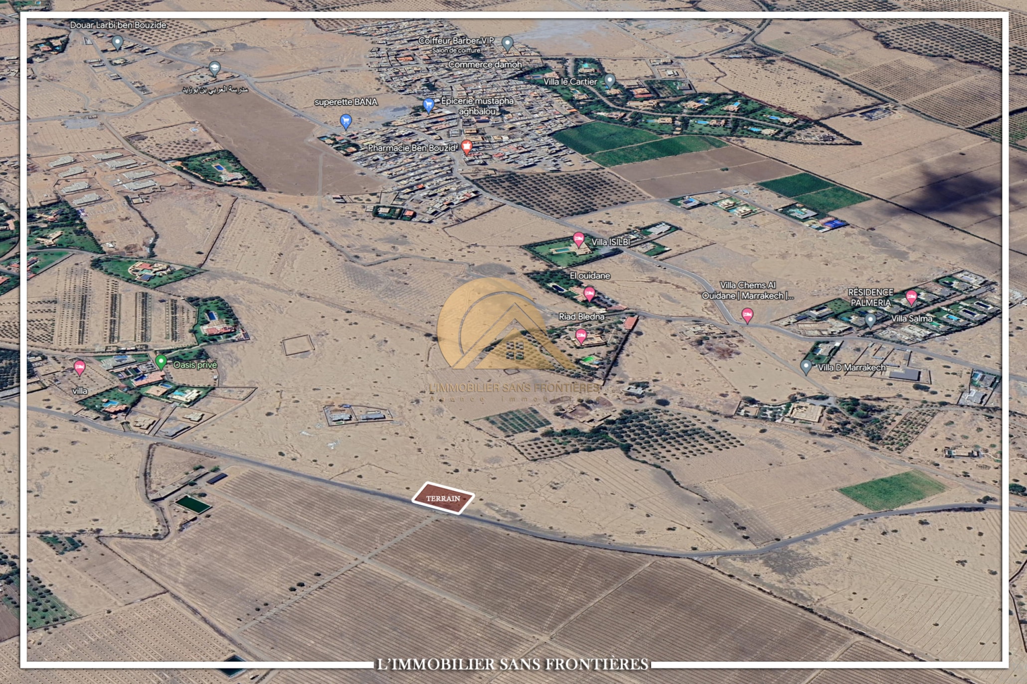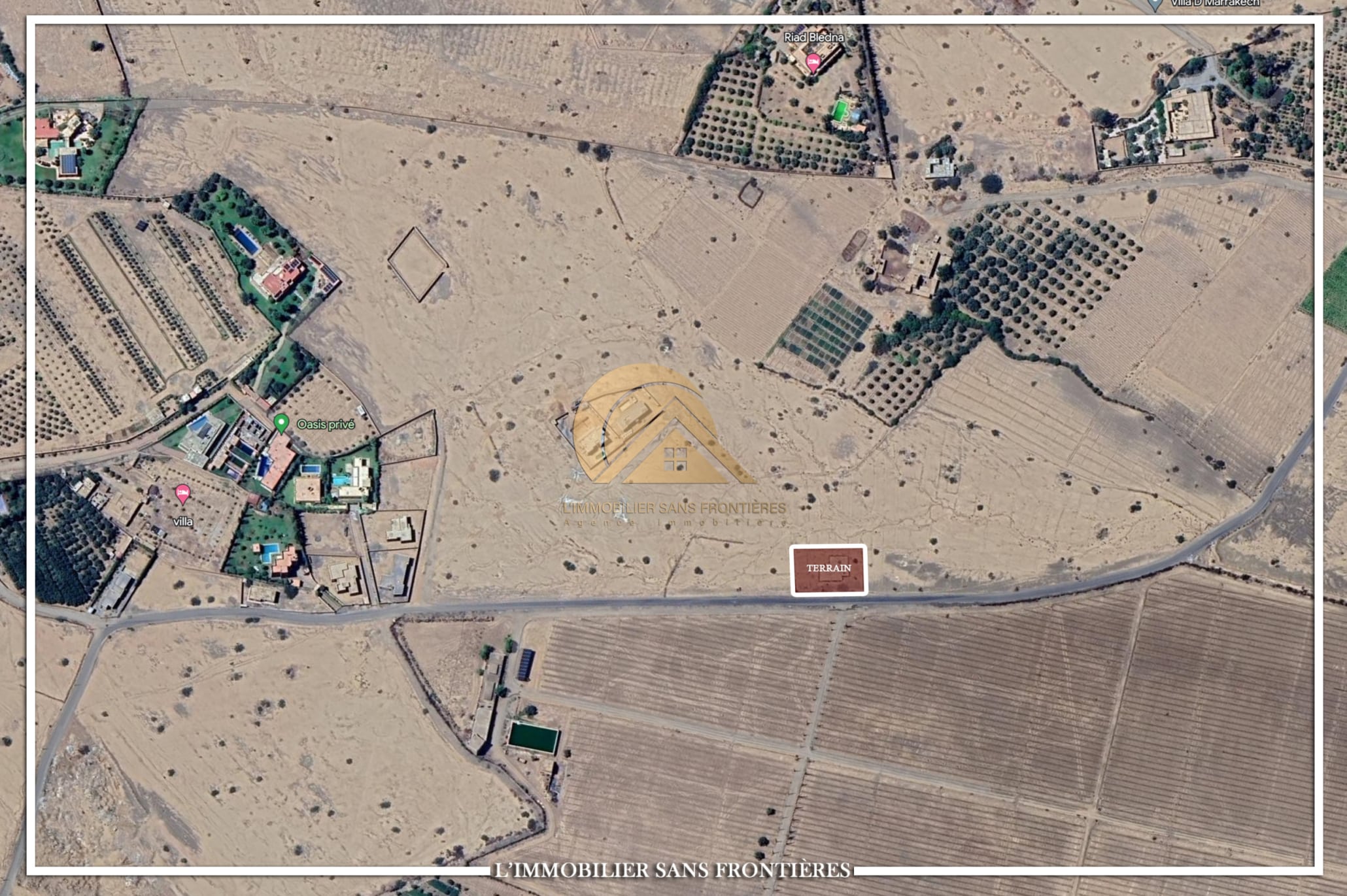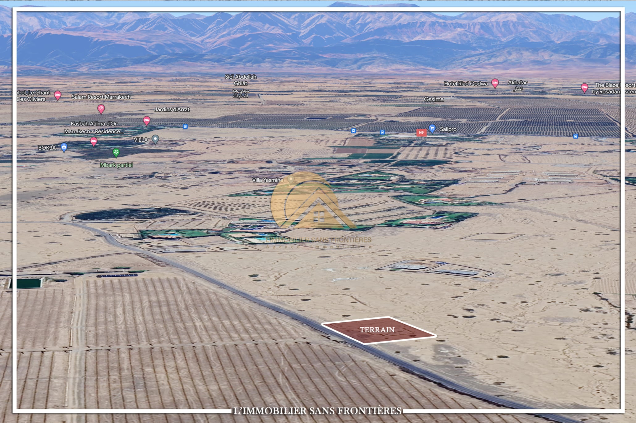 Real Estate Without Borders offers this 1353 m² land for sale on Route de Ouarzazate km 18, Marrakech. Access is stated as with no dirt track.