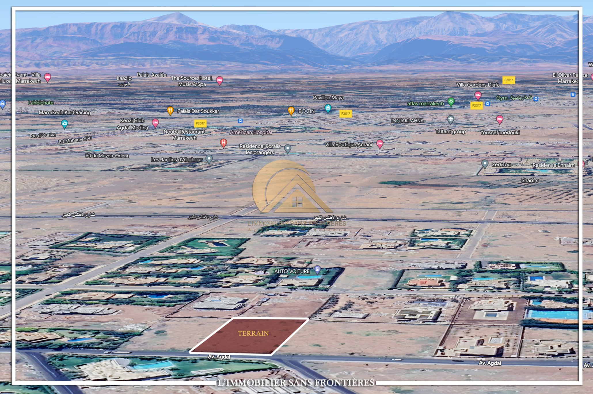 Real Estate Without Borders offers this titled land for sale in Agdal, Marrakech. The plot is stated to be directly on the road, with easy access and visibility.