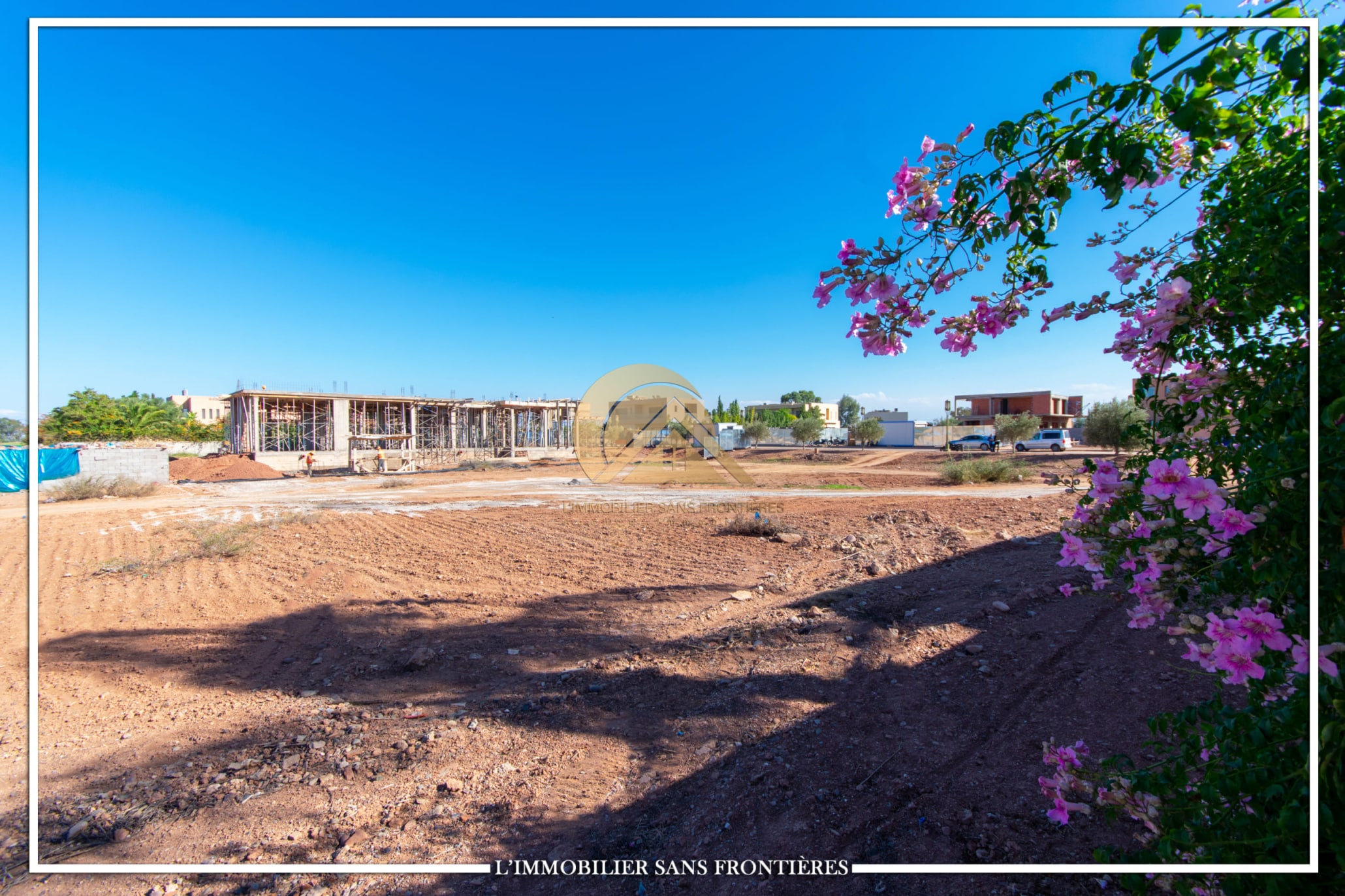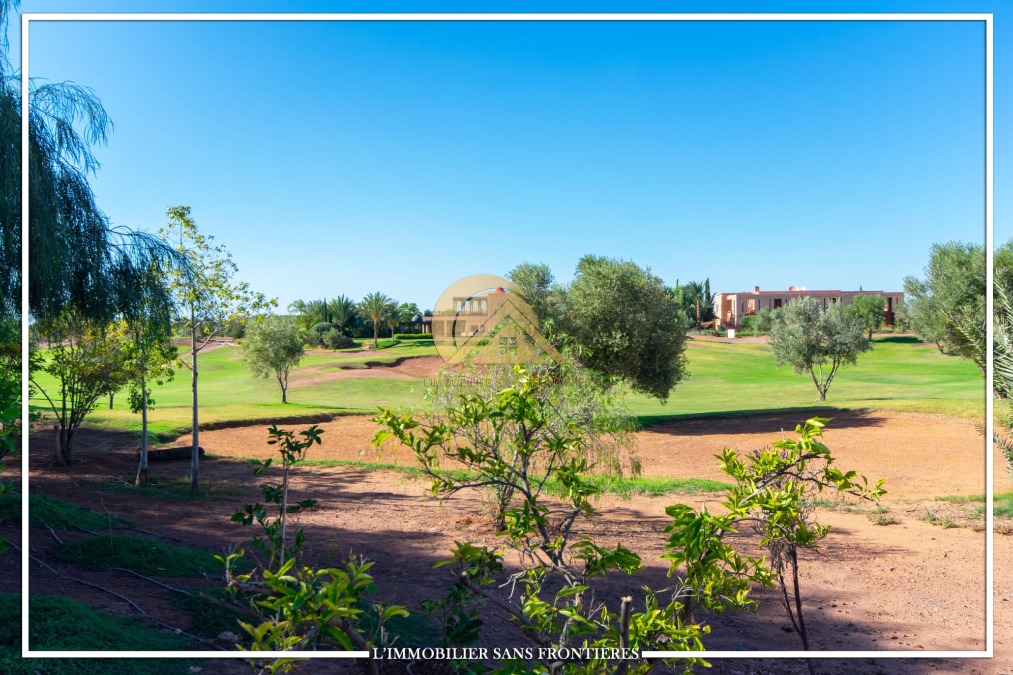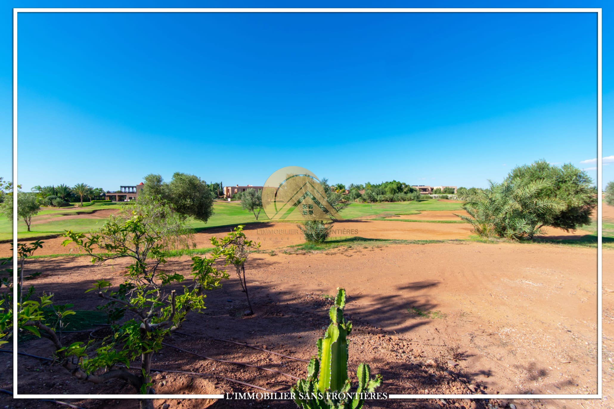 Real Estate Without Borders offers for sale this titled 2103 m² land plot in the heart of Golf d’Amelkis, indicated for villa construction. It is described with a golf course view, in a calm and secure setting, with stated proximity to Marrakech infrastructure.