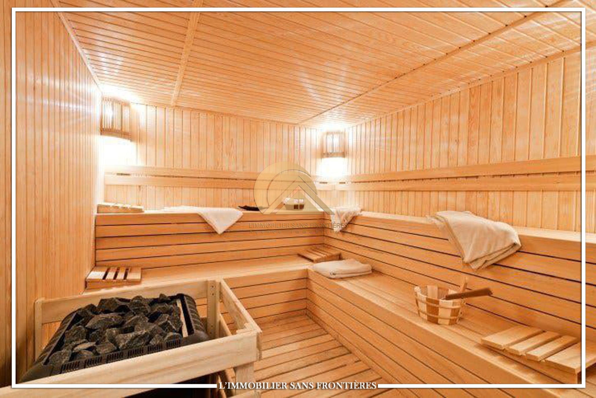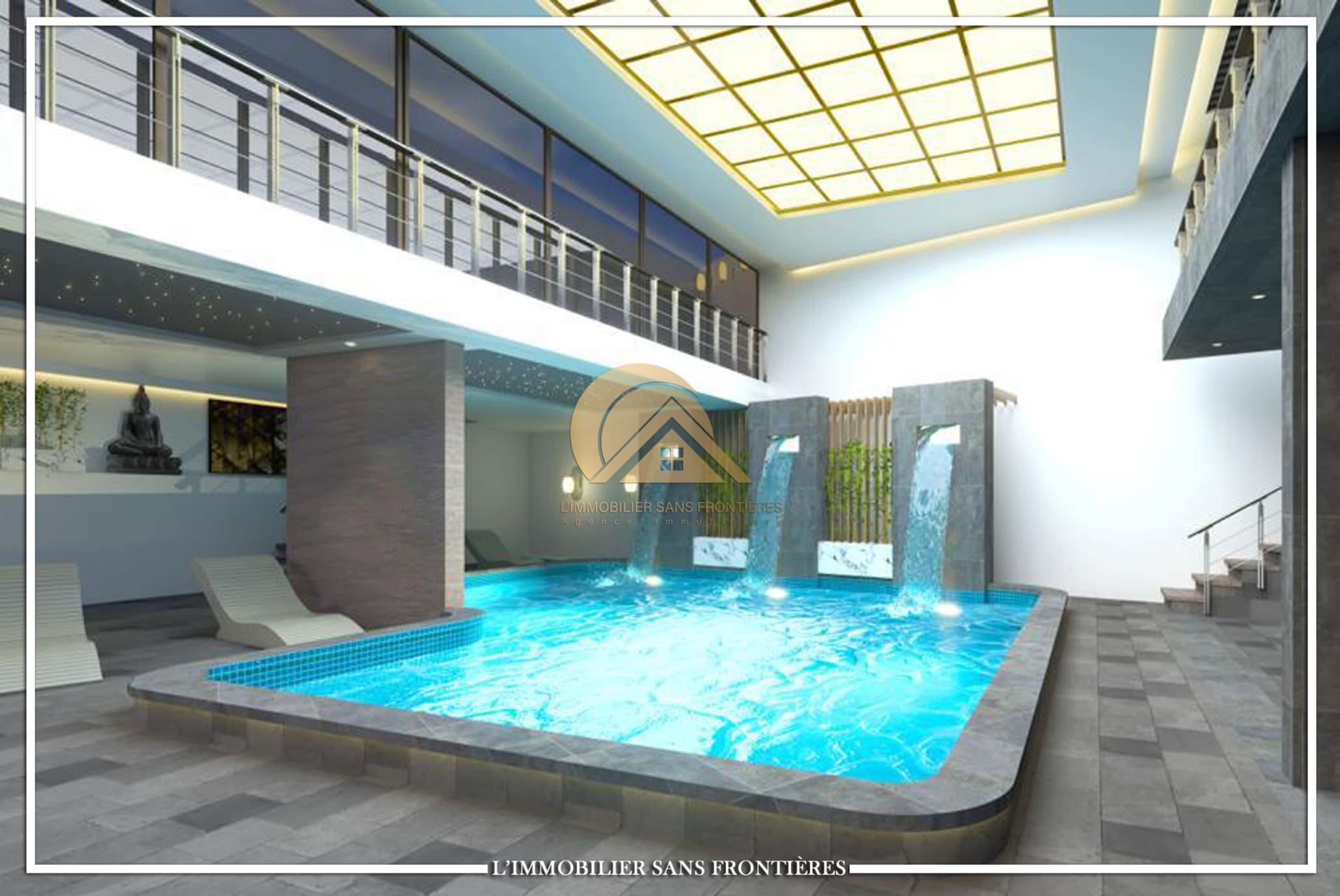 Real Estate Without Borders offers this new project for sale in Guéliz, Marrakech. The listing mentions two pools, a gym, a garden area, as well as a hammam and sauna within the residence.