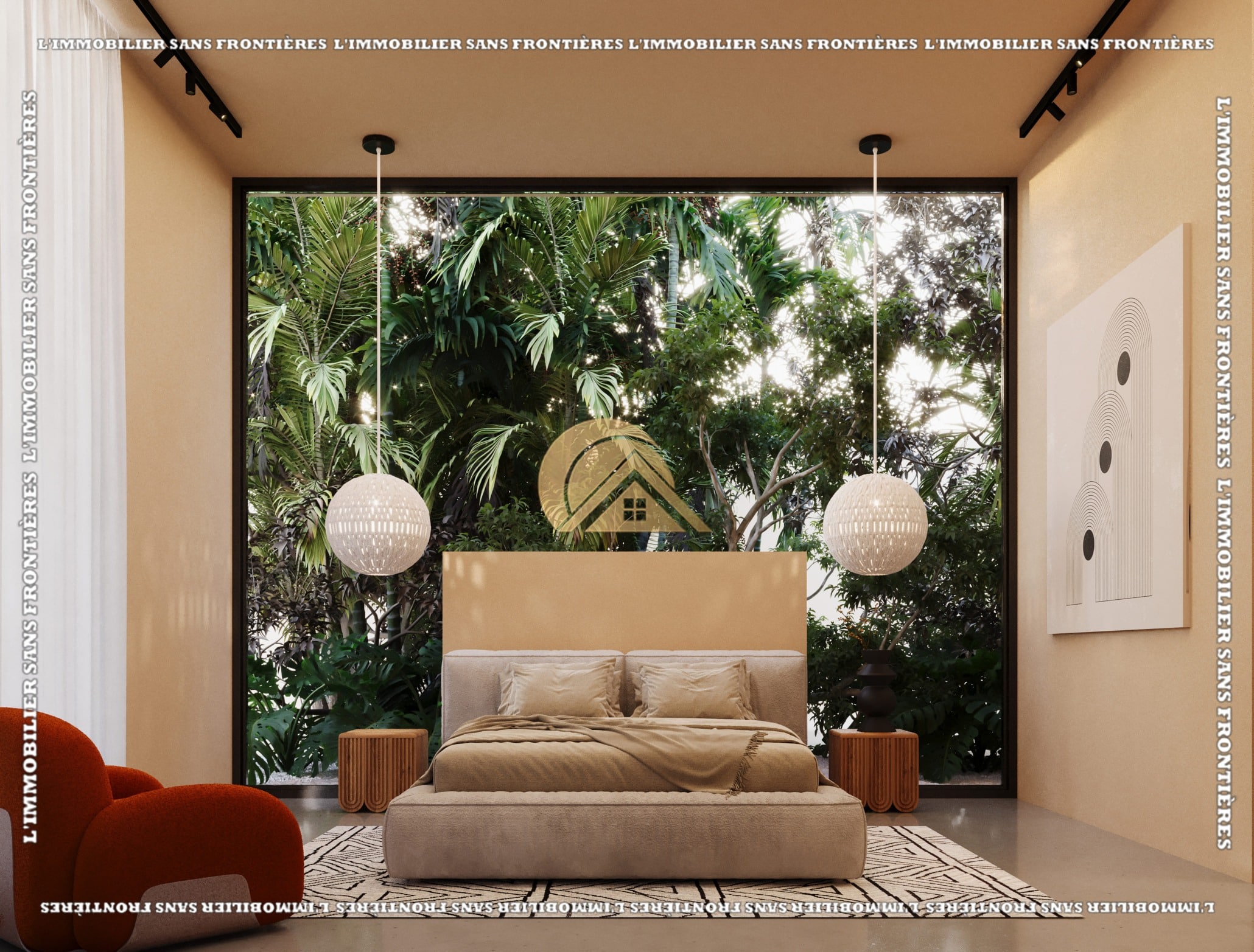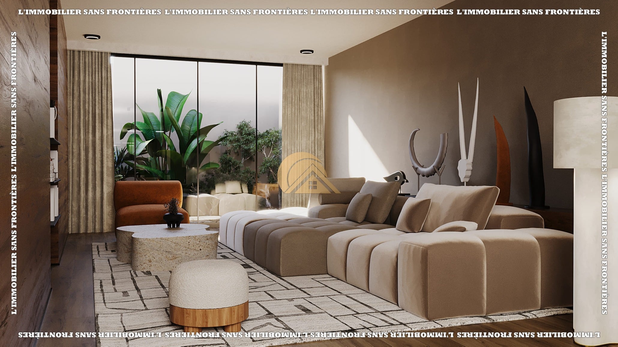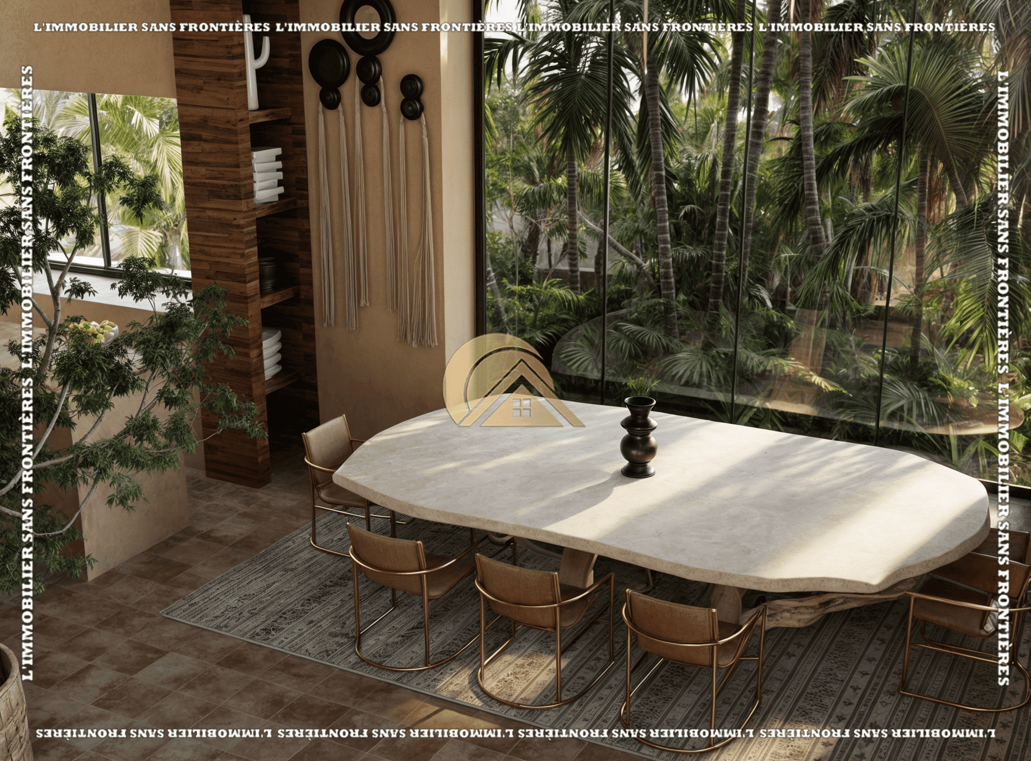 Real Estate Without Borders offers an off-plan villa within a project of 11 villas on Route d’Amizmiz Km 7, close to Marrakech. The project is presented in a calm setting, with Bali-inspired architecture and turnkey delivery. Villa Type 1 is stated on a 715 m² plot with a total living area of 338 m².