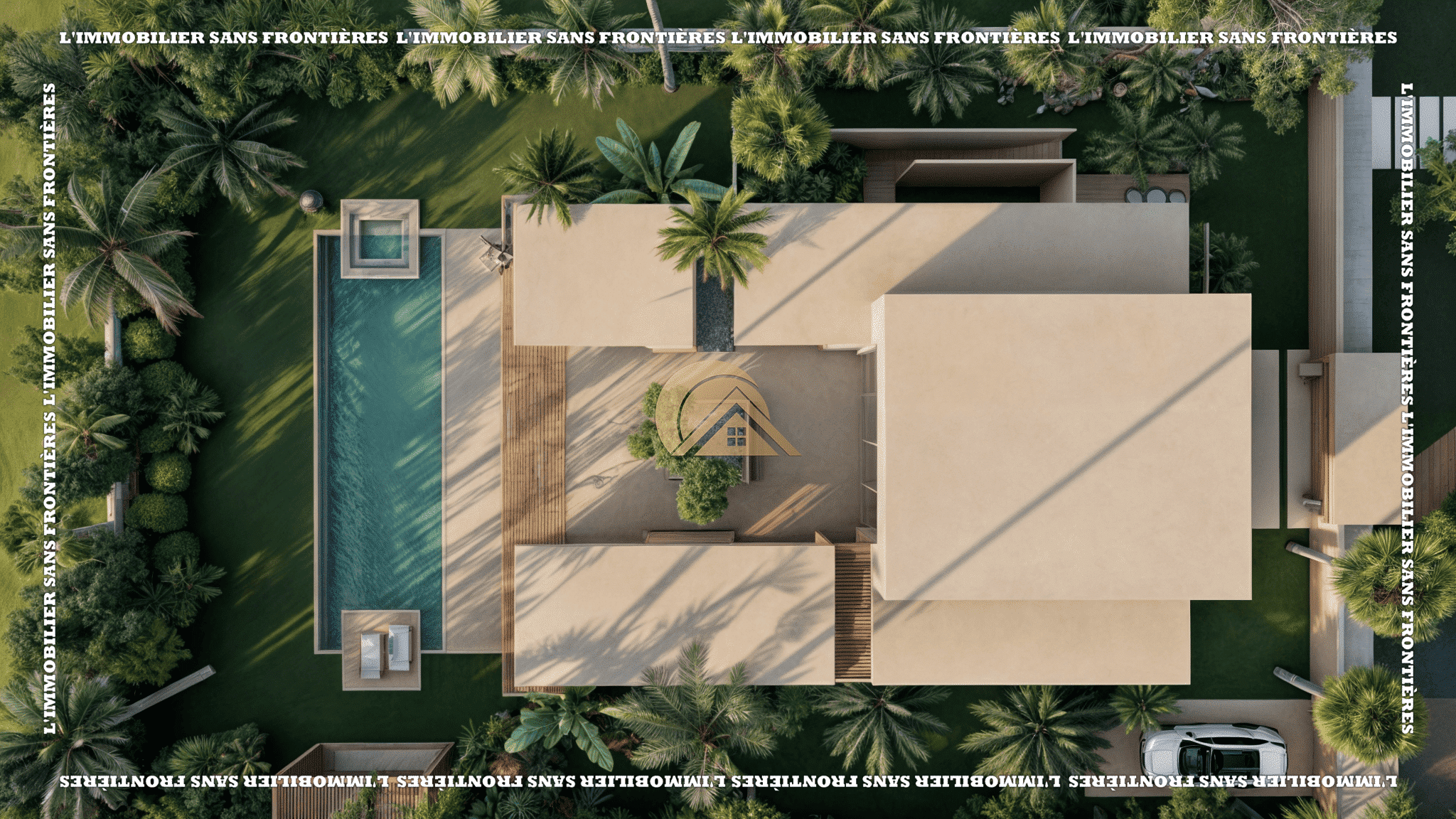 Private pool 12 m x 5 m – Sunken lounge – Deck area for sunbeds – Landscaped garden – Parking
