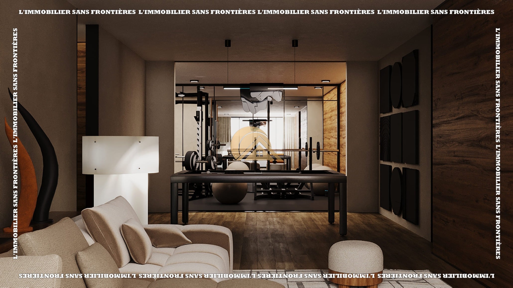 Basement (176 m²): Living room – Staff bedroom with bathroom – Gym room – Cinema room – Laundry area – Technical room