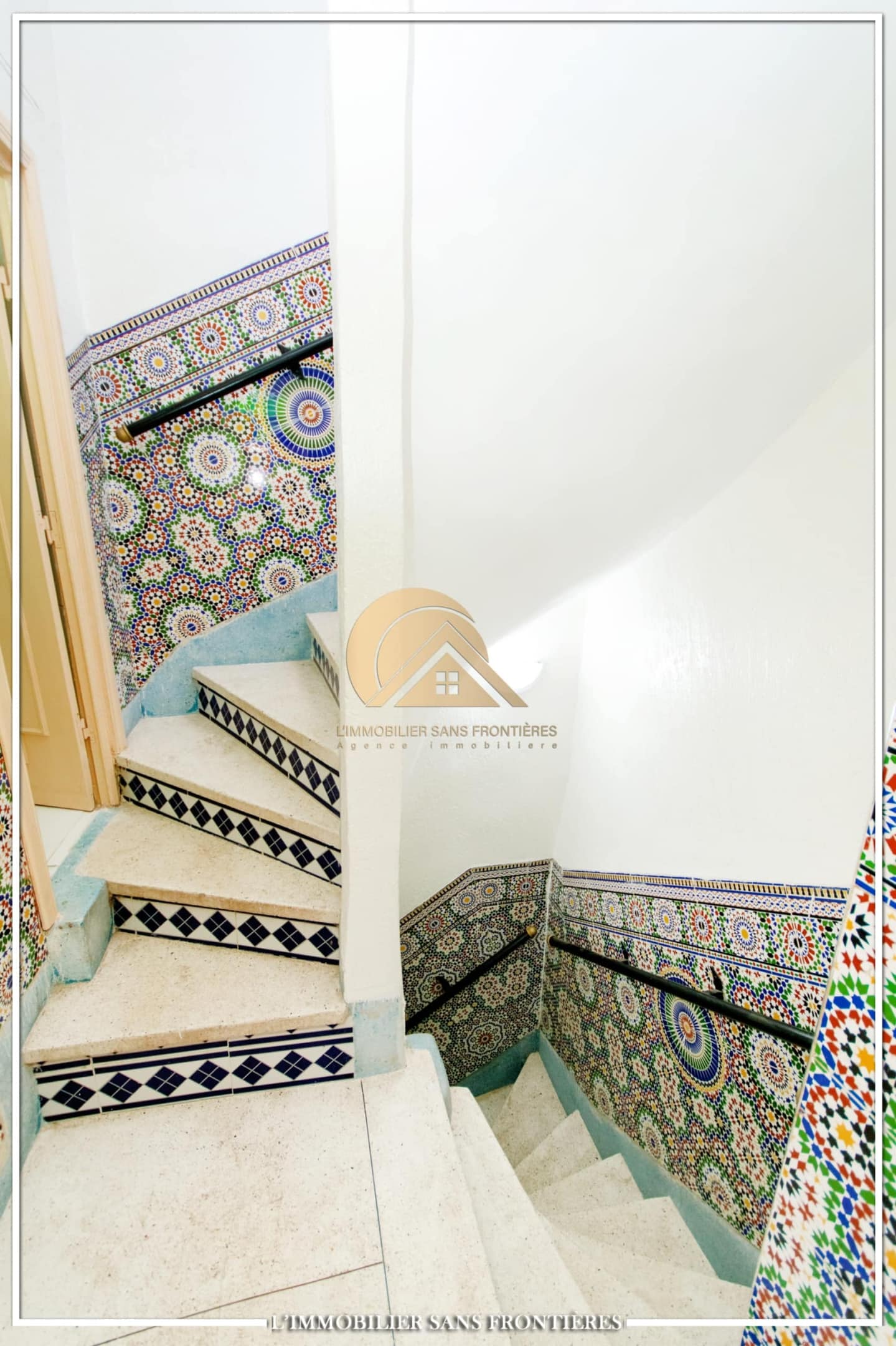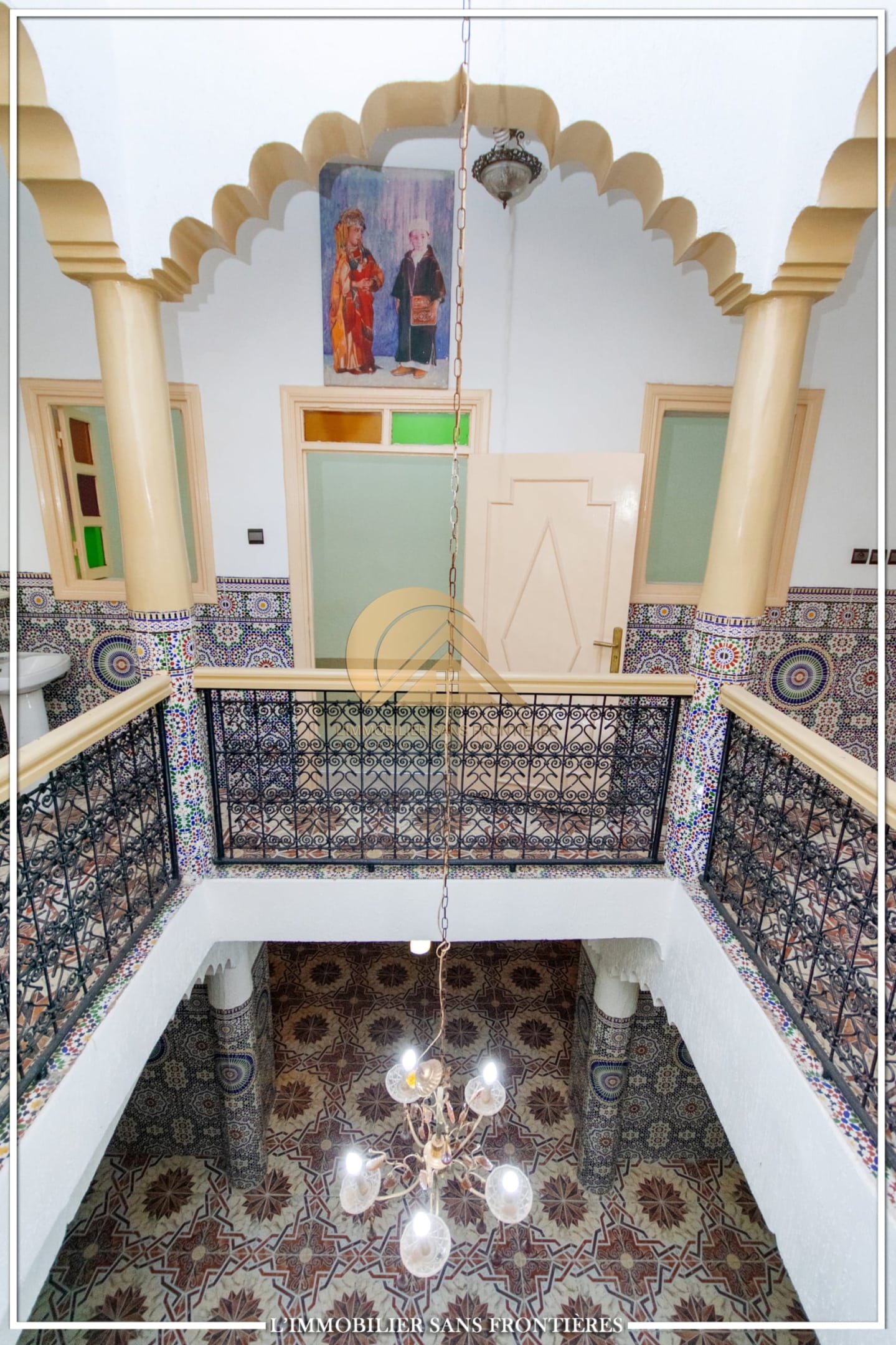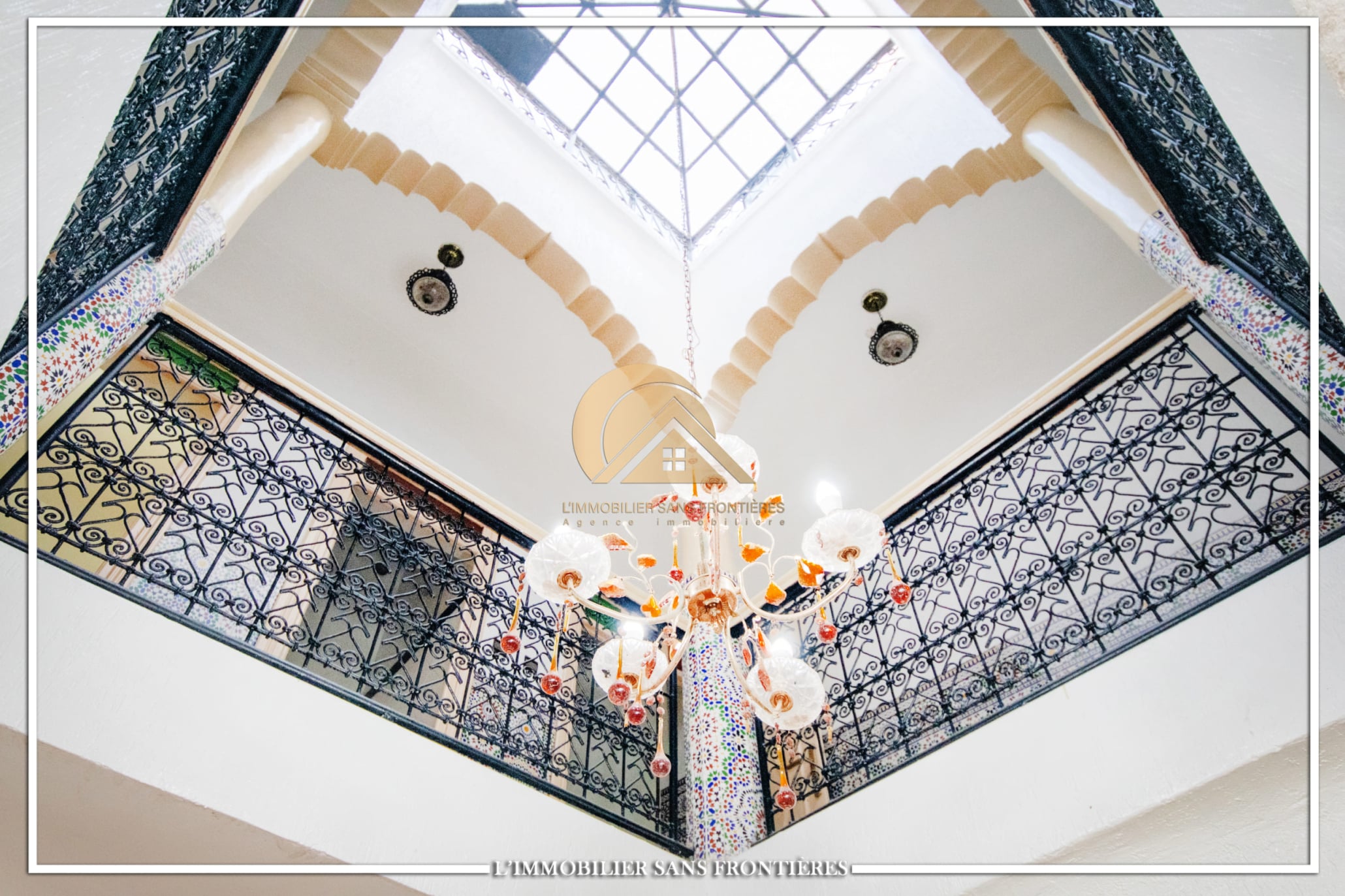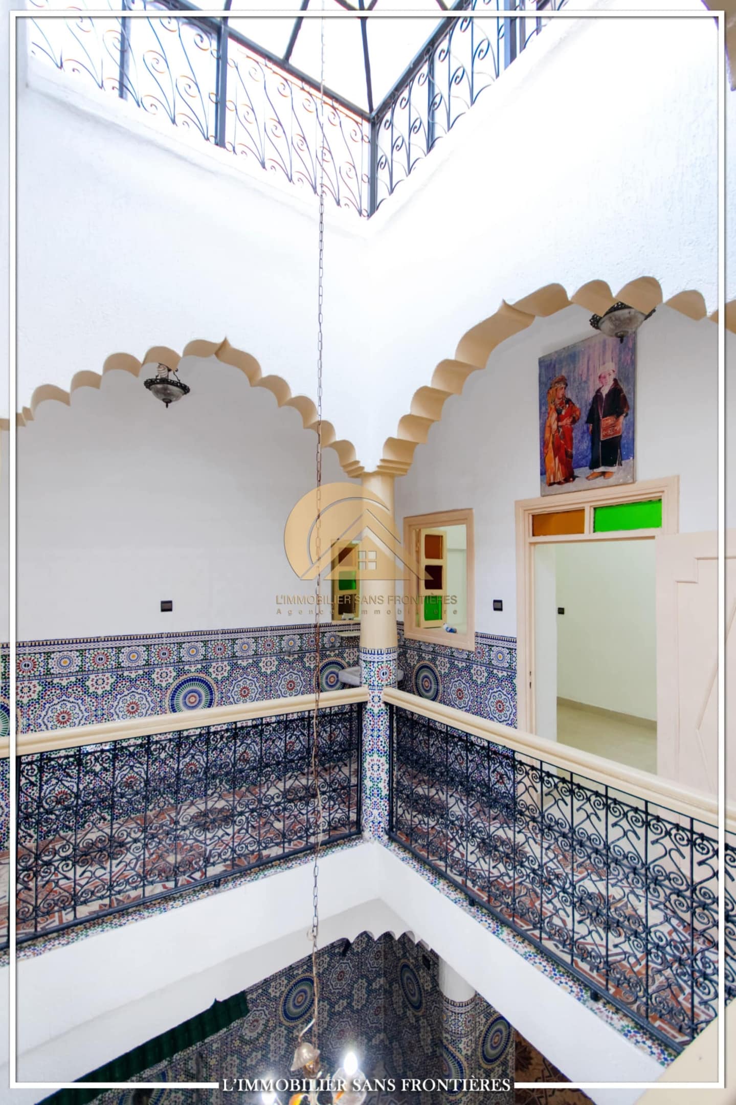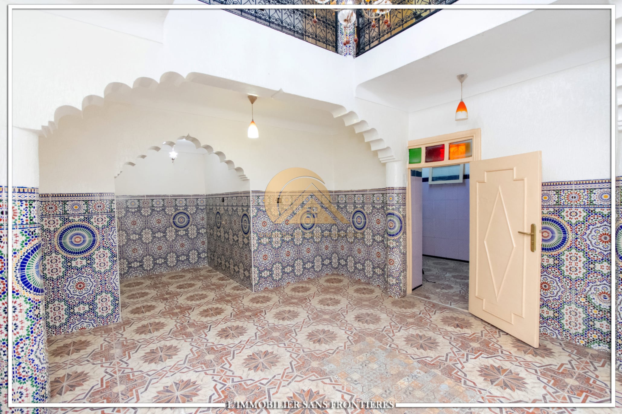 Real Estate Without Borders offers this R2 riad for sale in the heart of Marrakech’s medina. The text describes a friendly and calm atmosphere. Area: 240 m².