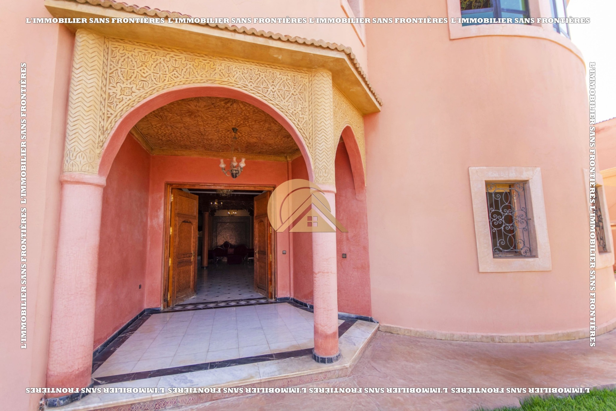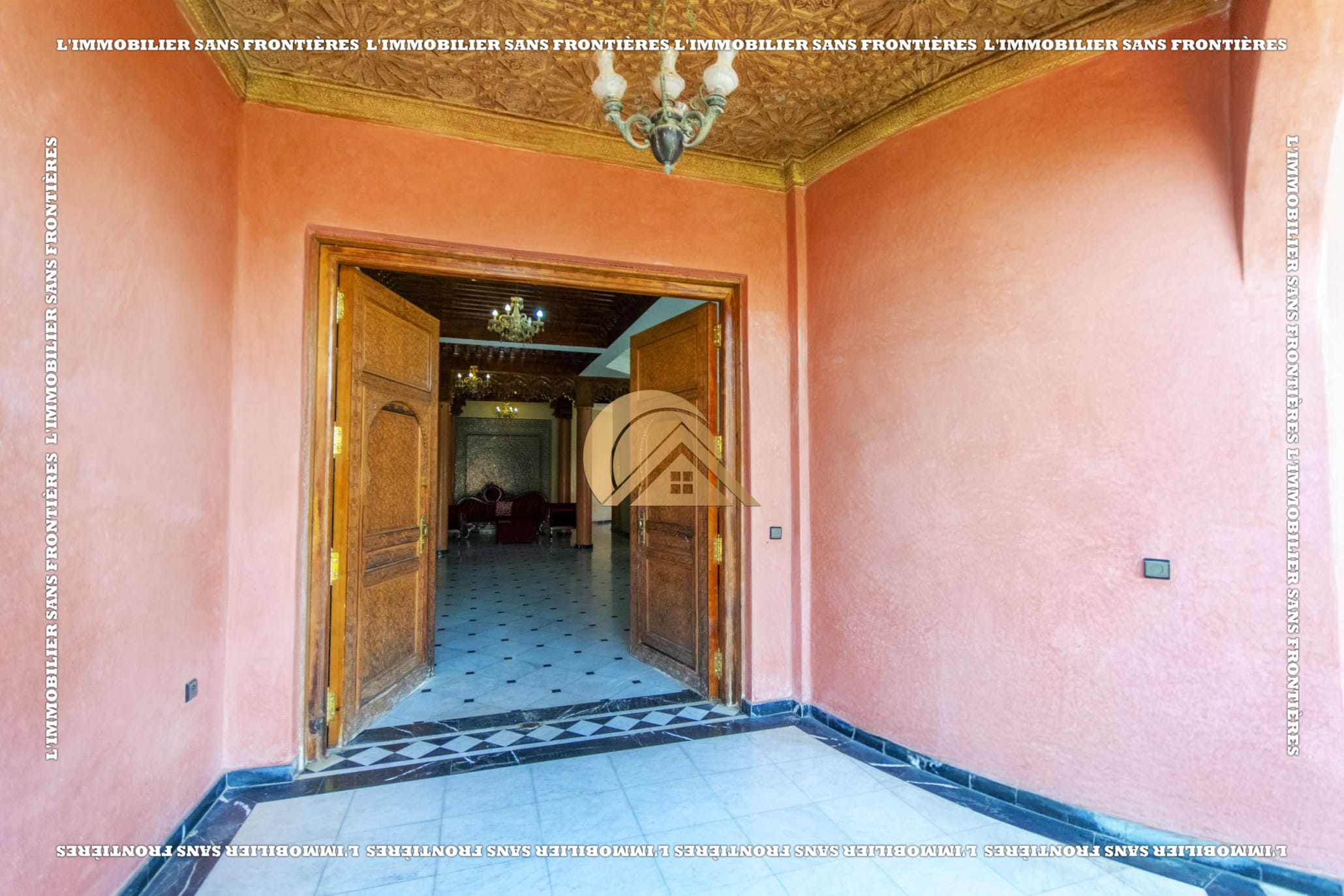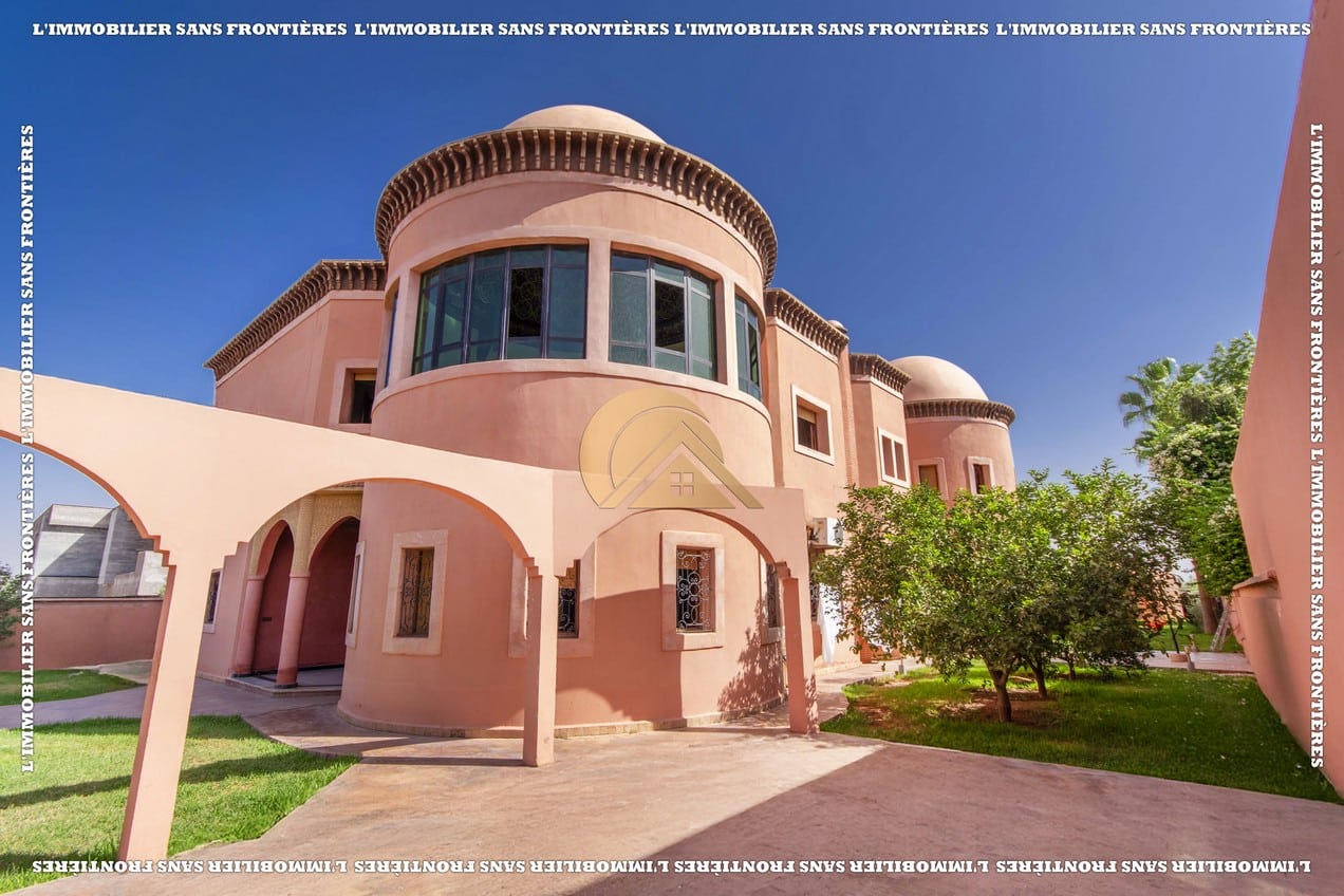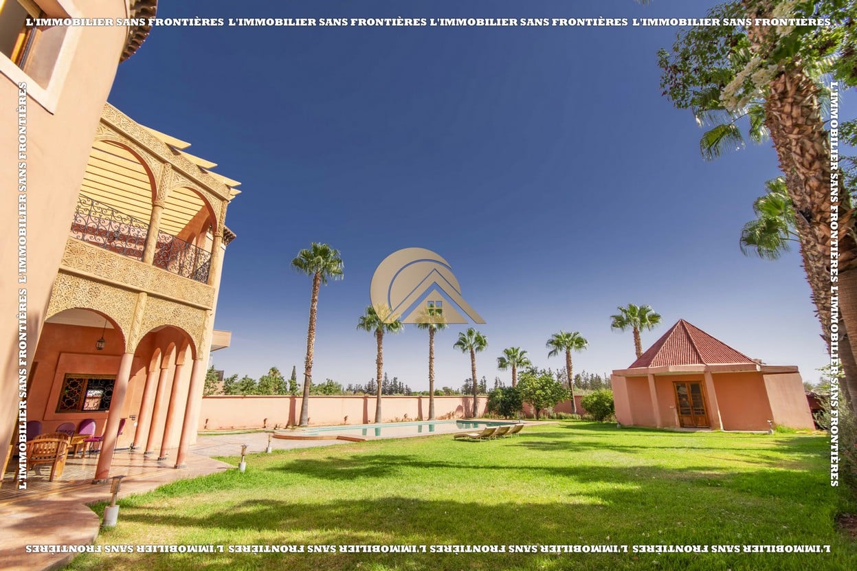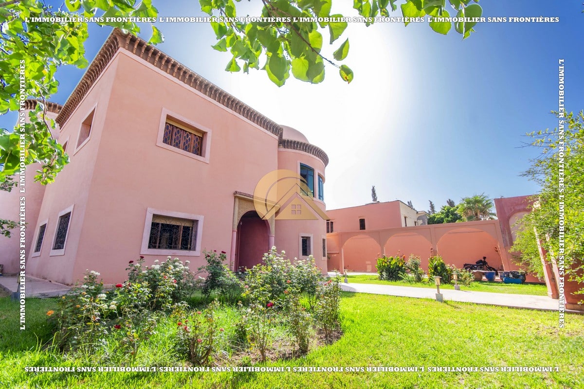 Real Estate Without Borders offers for sale this titled empty villa with an occupancy permit, located on Route d’Ourika km 4, Marrakech. The stated plot area is 2 009 m² and the living space is 500 m² over 2 levels. The text mentions a pool, a private garden, a well, and surveillance cameras.