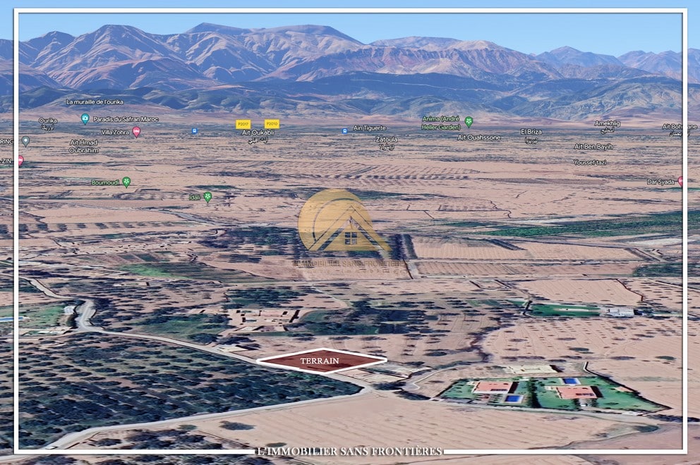 Real Estate Without Borders offers this titled land for sale on Route Sidi Abdellah Ghiat km 25, Marrakech. The listing states it is walled and includes a well.