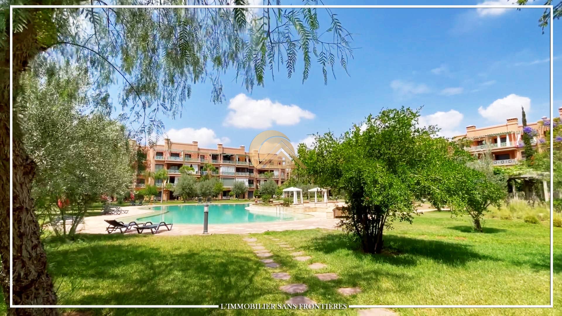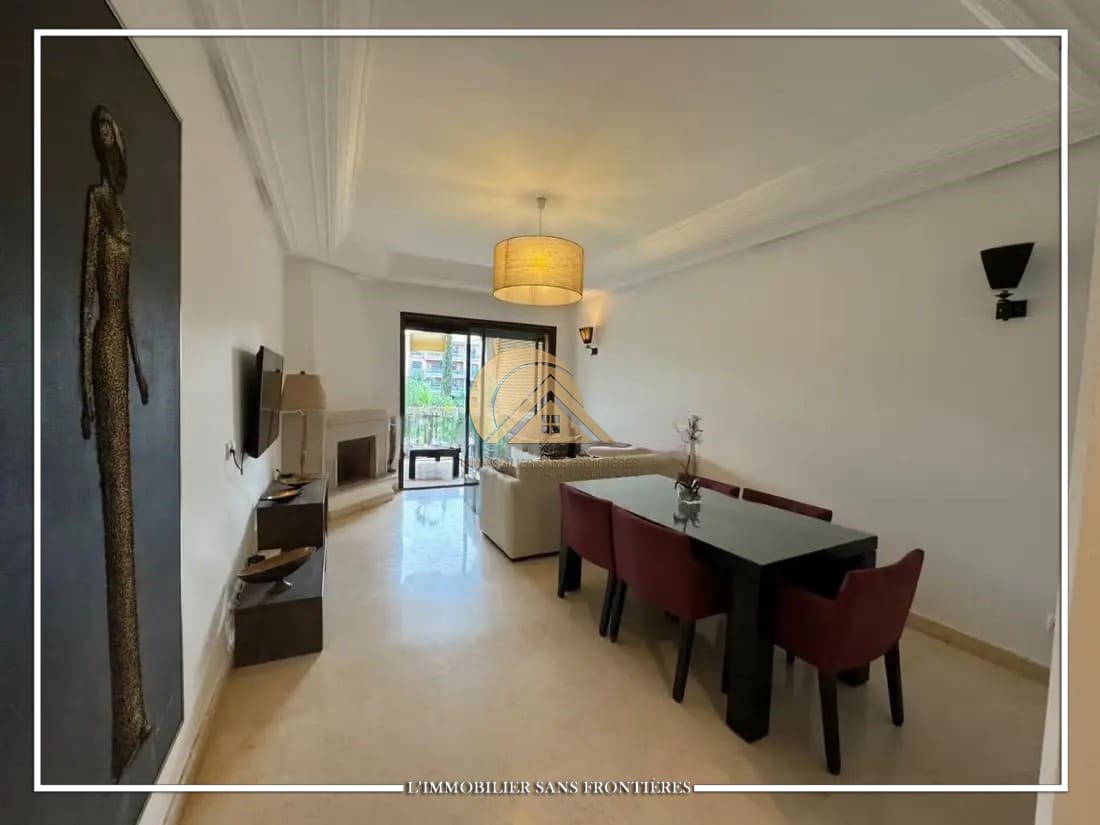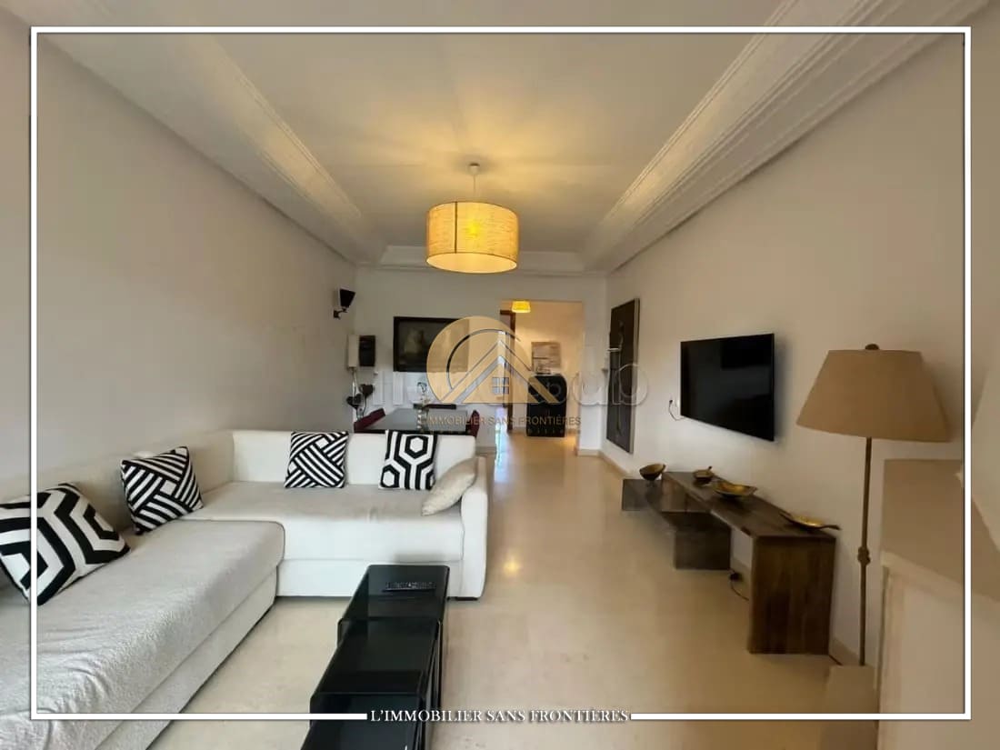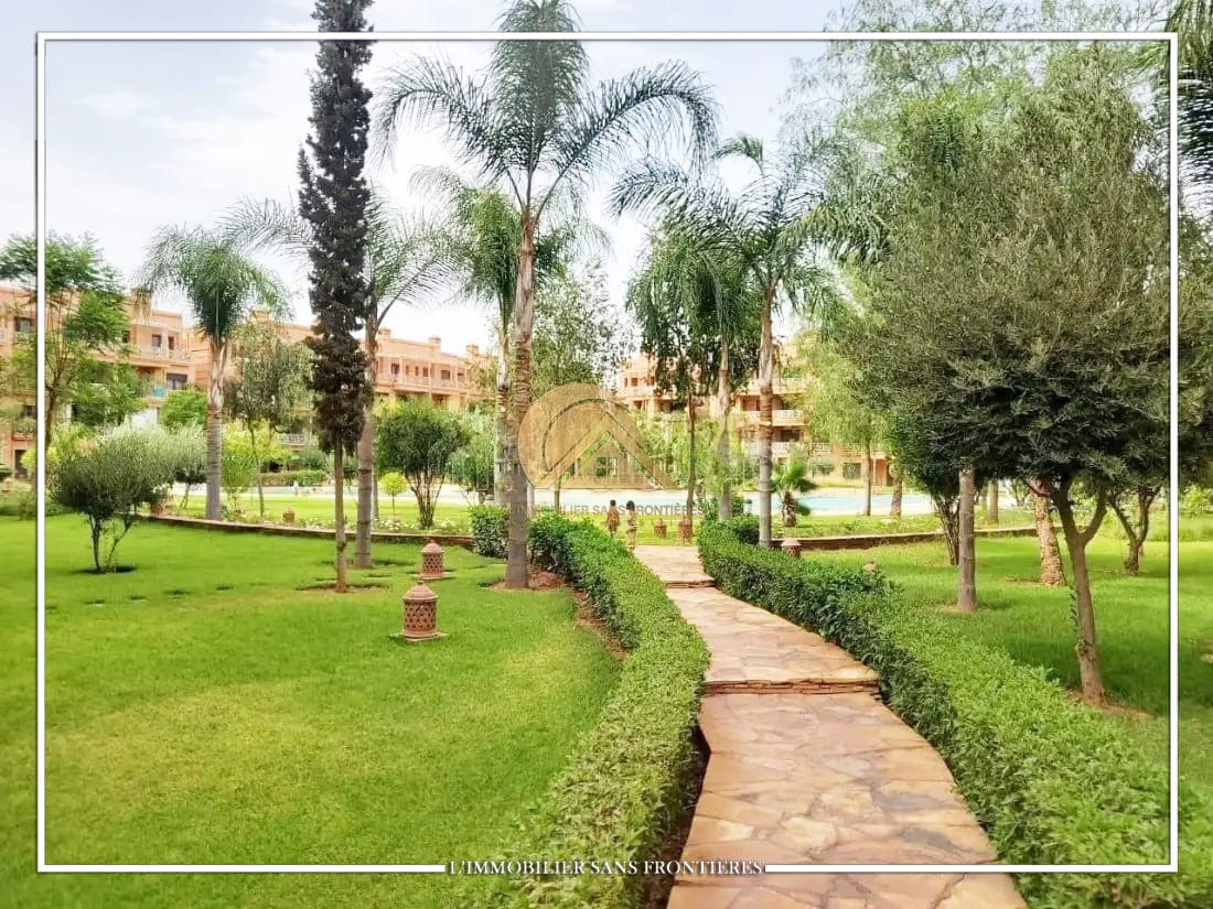 Real Estate Without Borders offers this unfurnished apartment for sale in Agdal, Marrakech, on the 1st floor, in a secured residence. The residence provides access to a pool, shared garden and a gym, and the listing indicates a basement parking space.