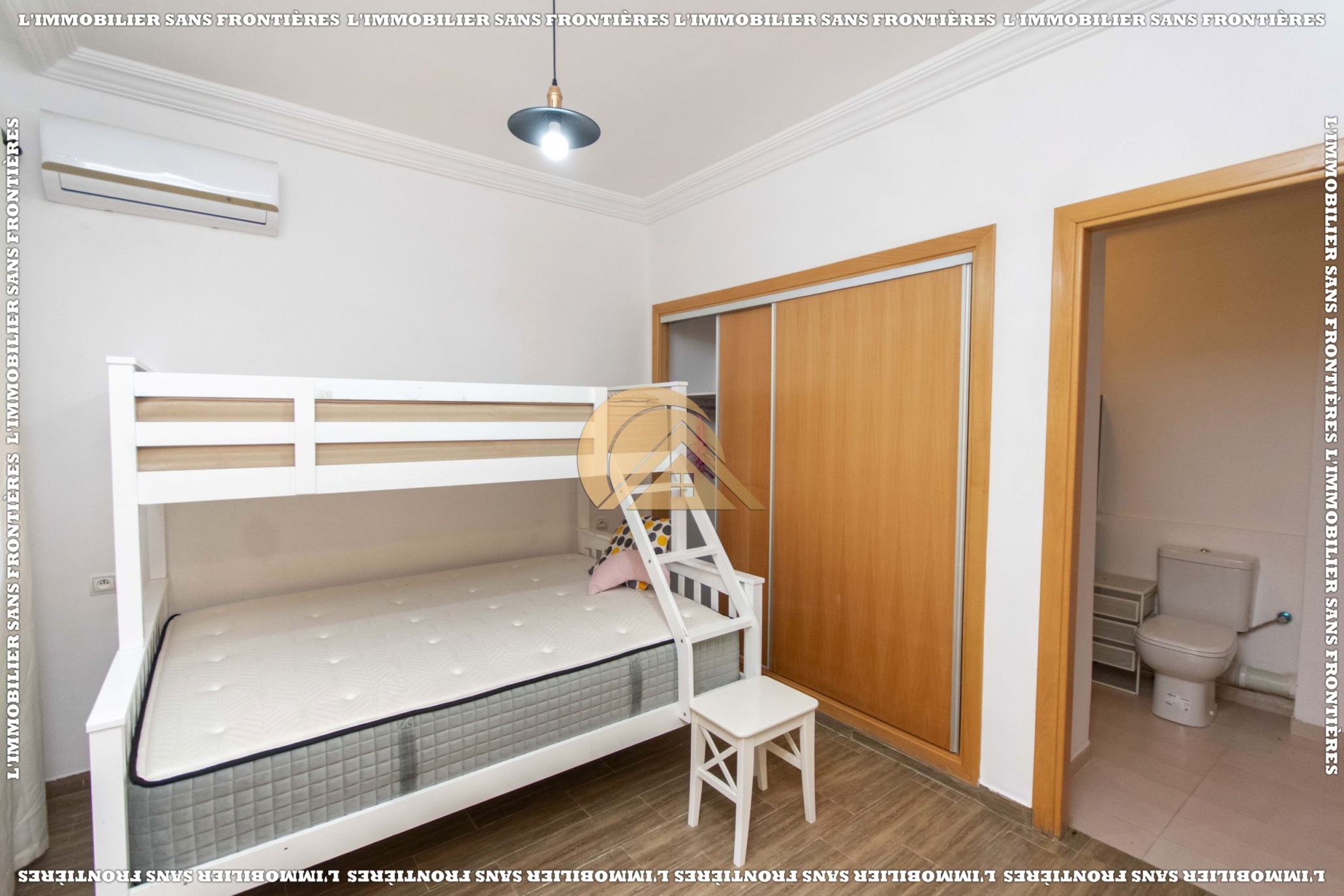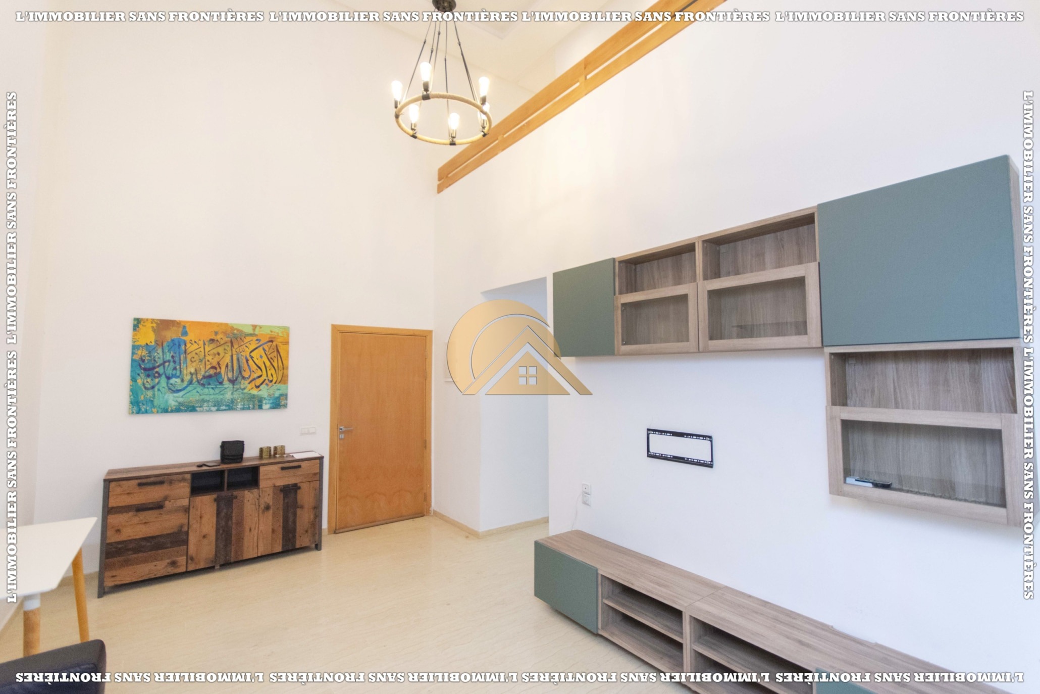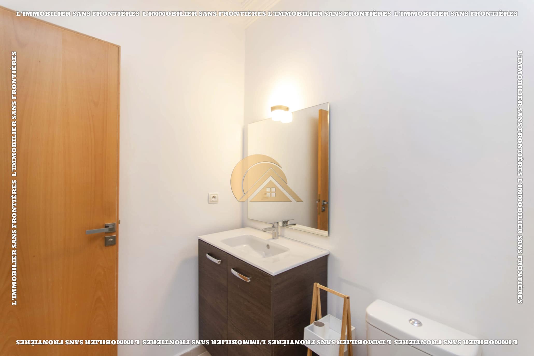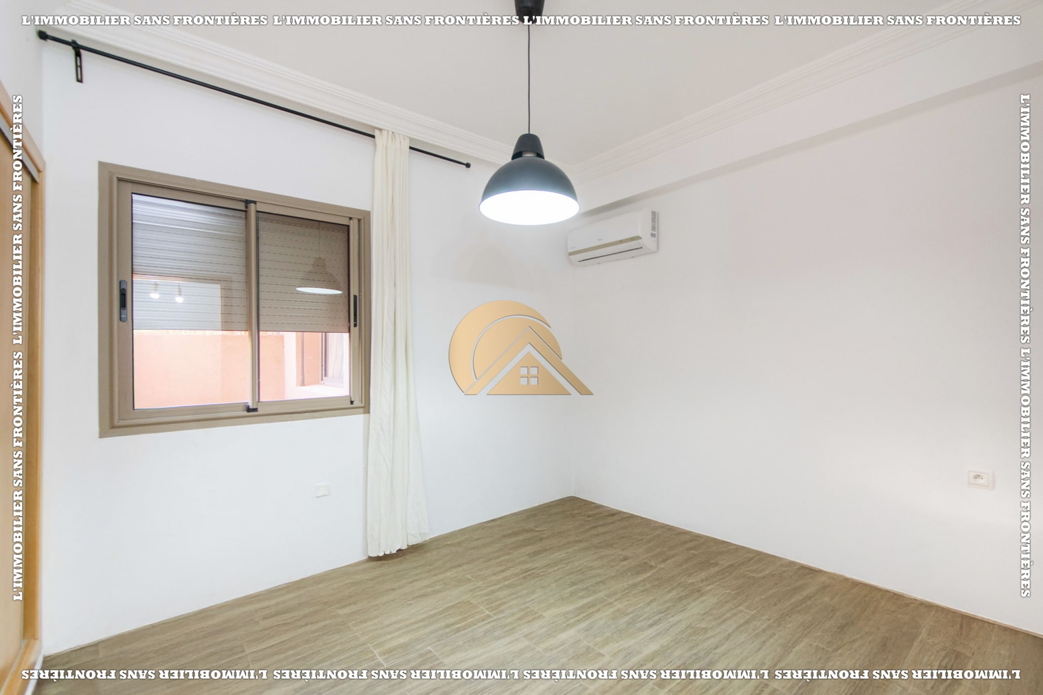 Real Estate Without Borders offers this unfurnished duplex for sale in Targa, Marrakech, on the ground floor of a calm and secured residence. The text indicates proximity to shops and amenities.