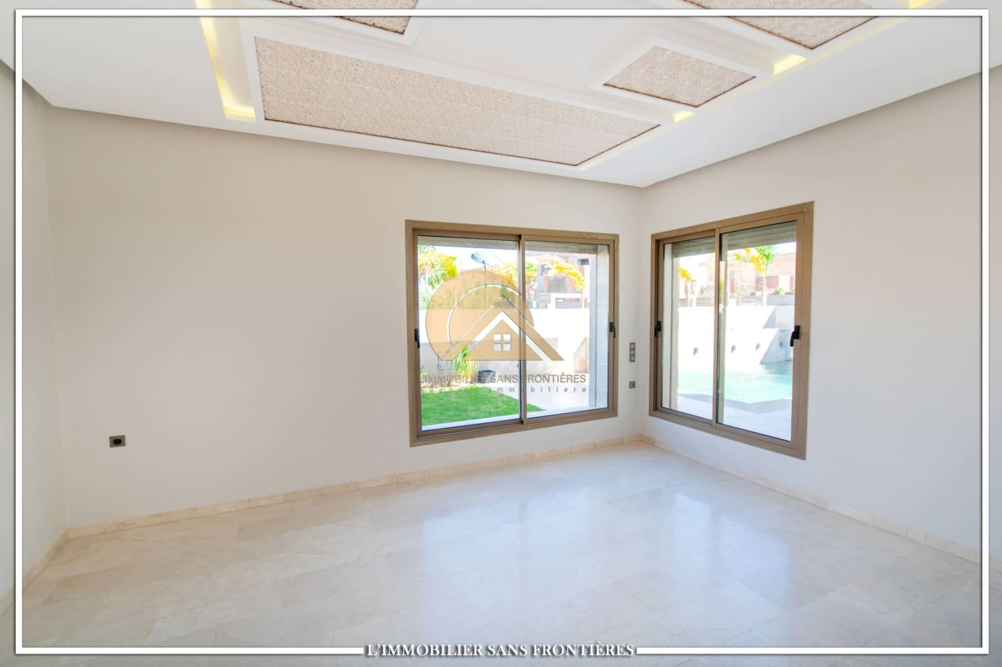 Real Estate Without Borders offers this modern unfurnished villa for sale on Route Ourika, Marrakech, within a golf residence. The description mentions a private pool, a garden, and Atlas mountains views.