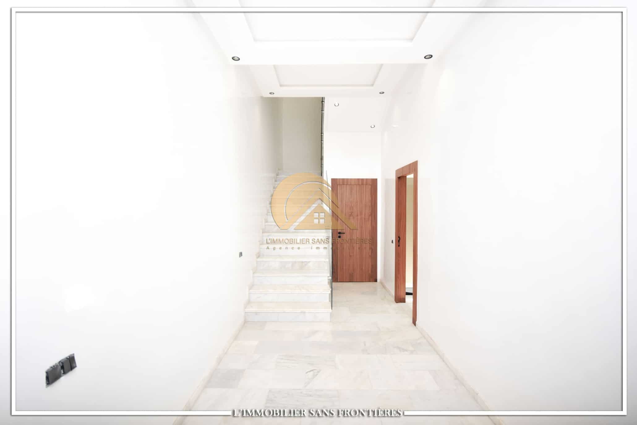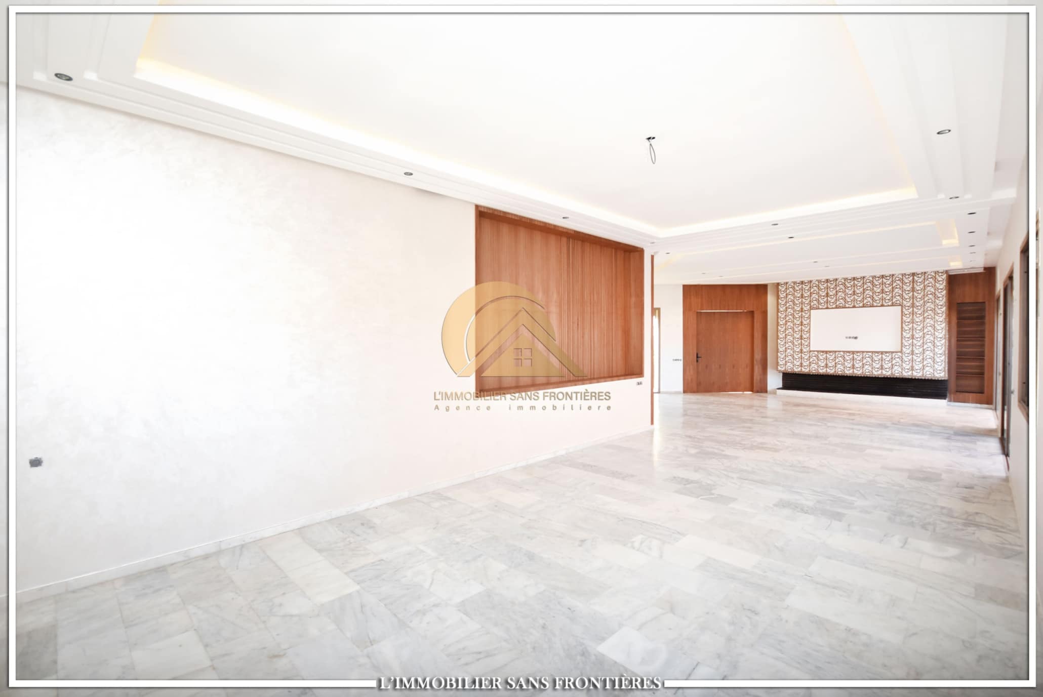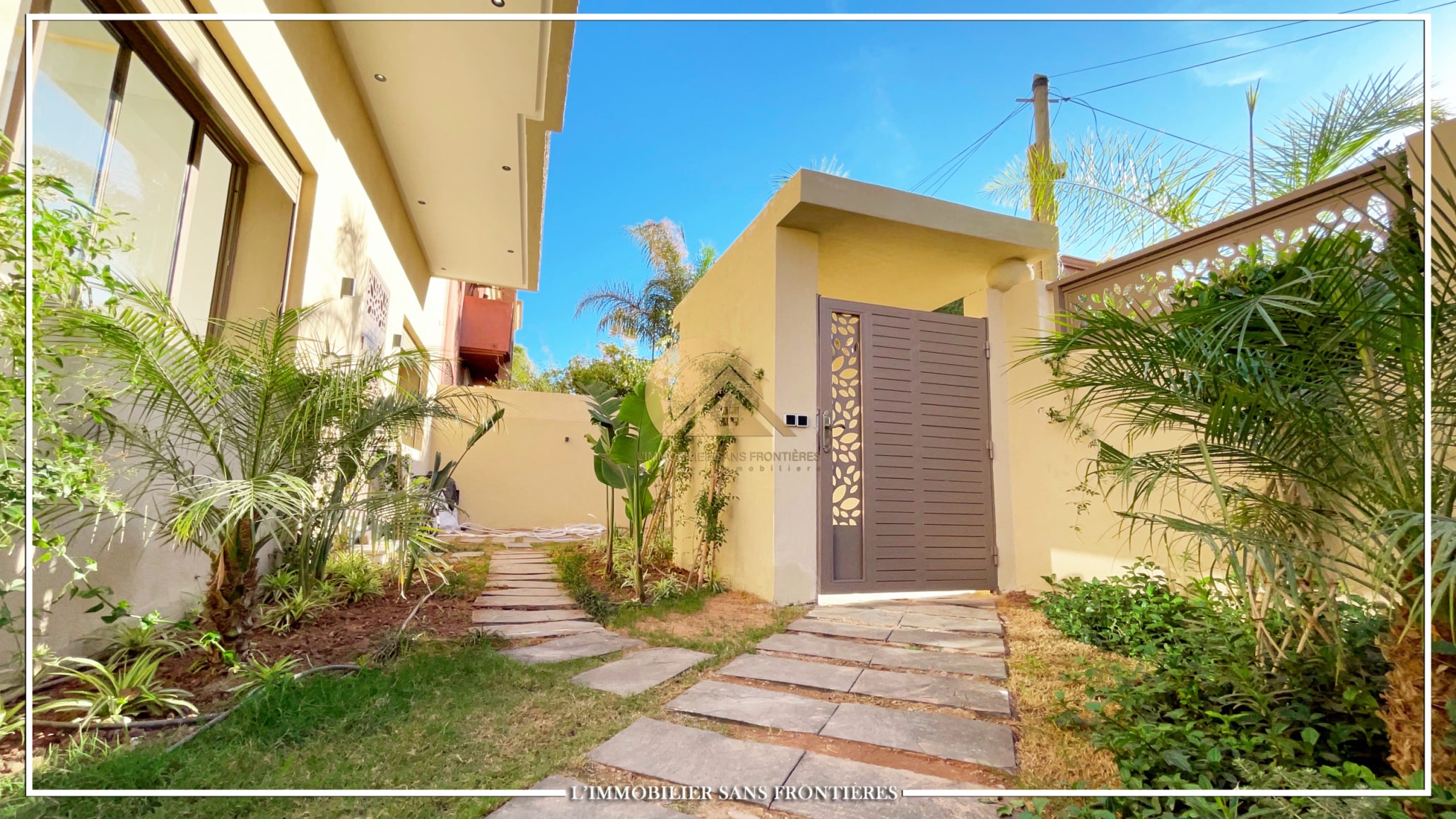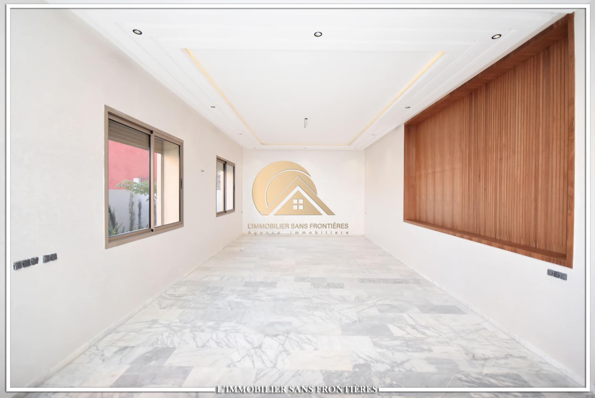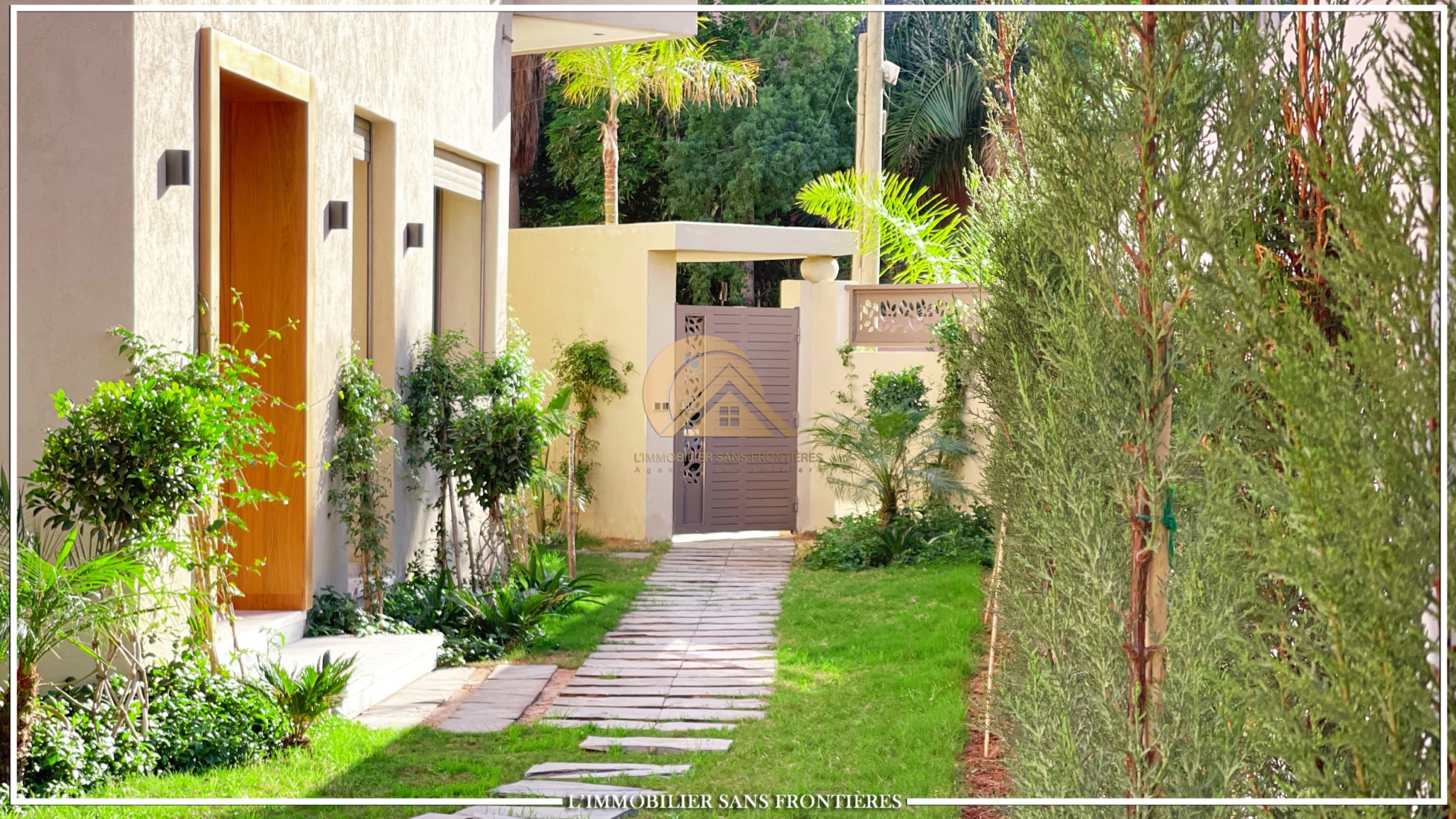 Real Estate Without Borders offers this unfurnished villa for sale in Targa, Marrakech. The text mentions a contemporary villa with three facades, garden and pool, and interiors stated as bright with a bay window. Stated area: 433m².