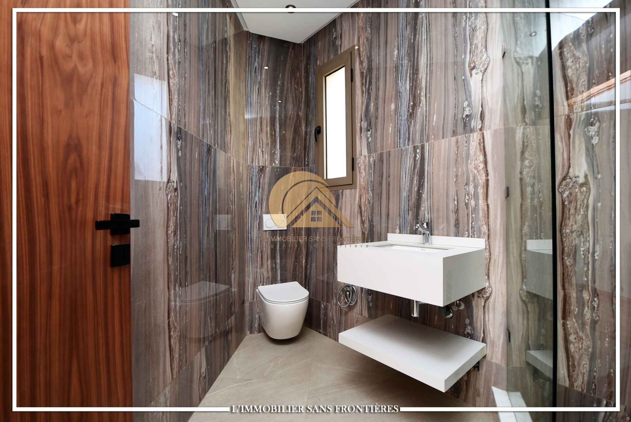Ground floor: European living room with fireplace – Moroccan living room – Bedroom – Sitting area – Equipped kitchen – Laundry area – Guest toilet – Bay window – Terrace