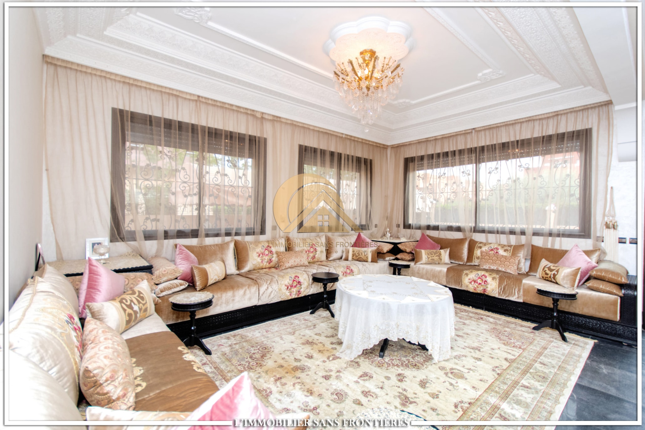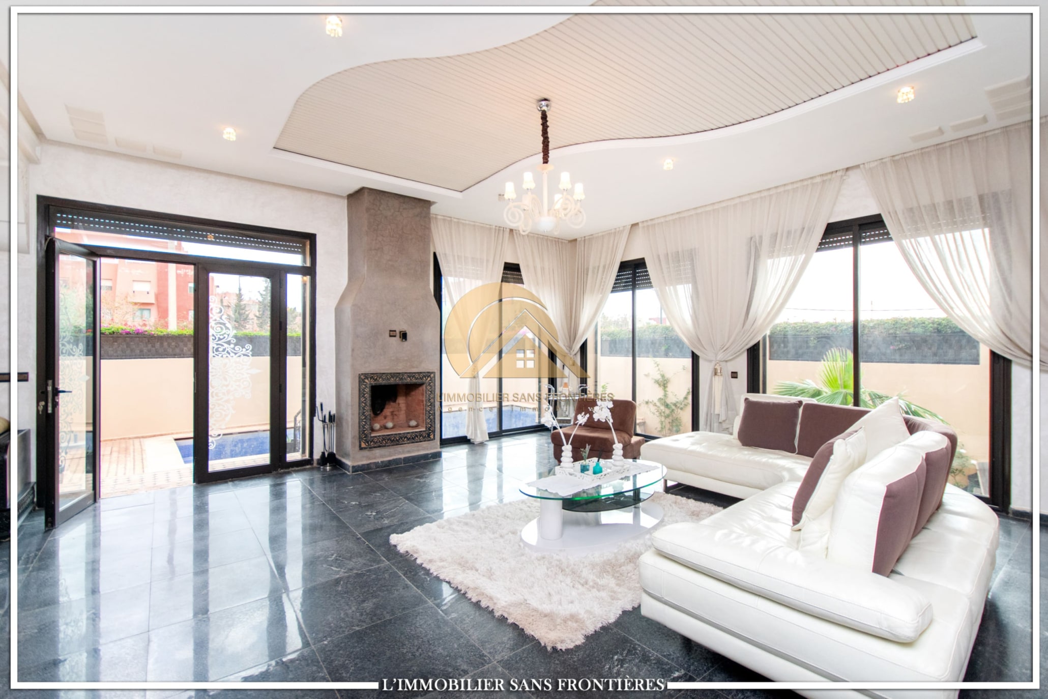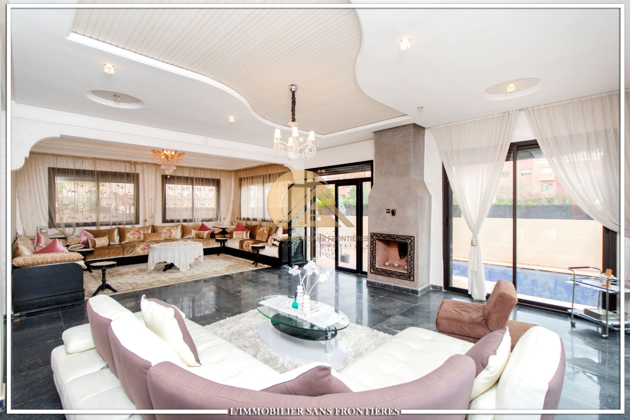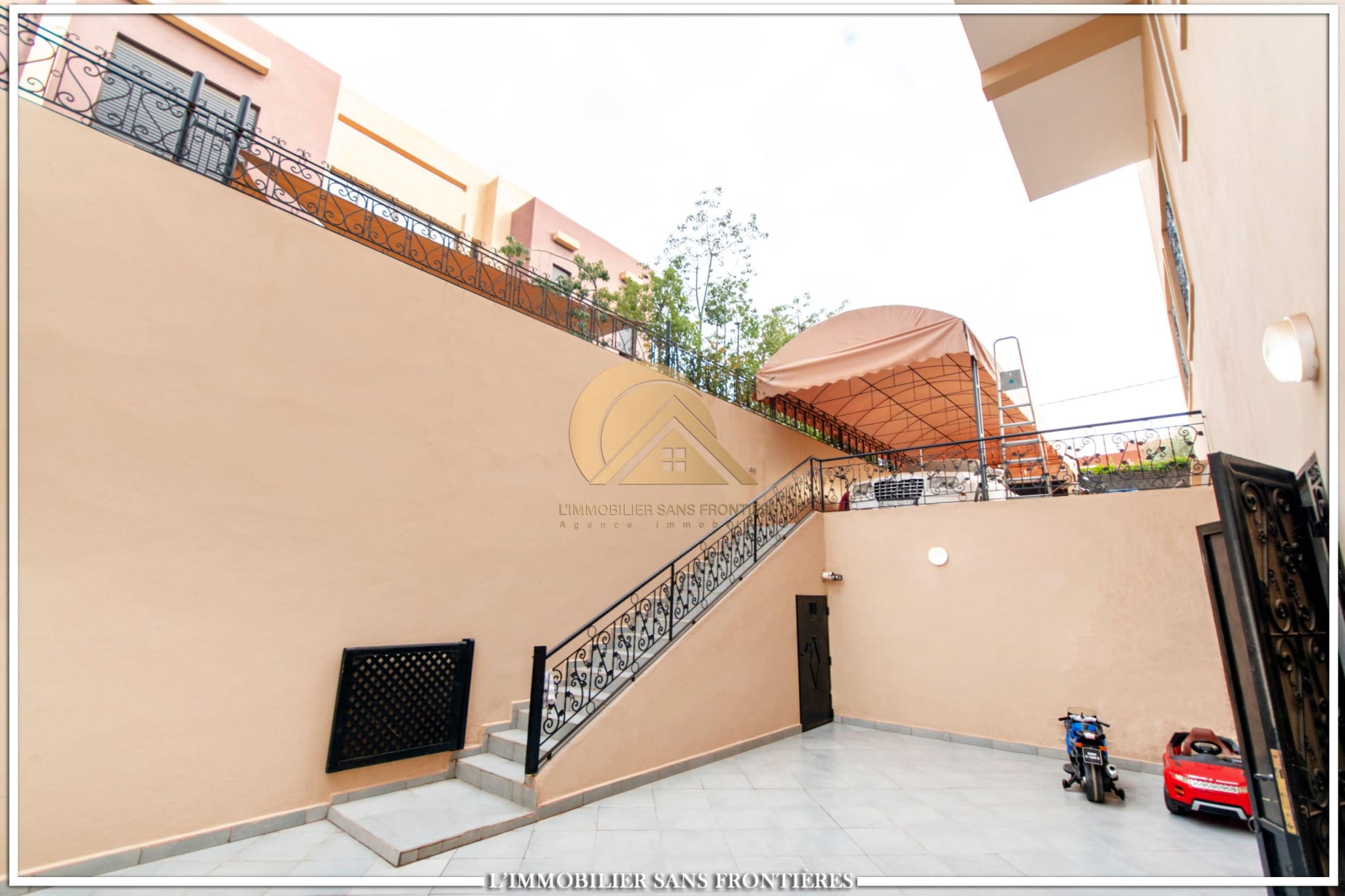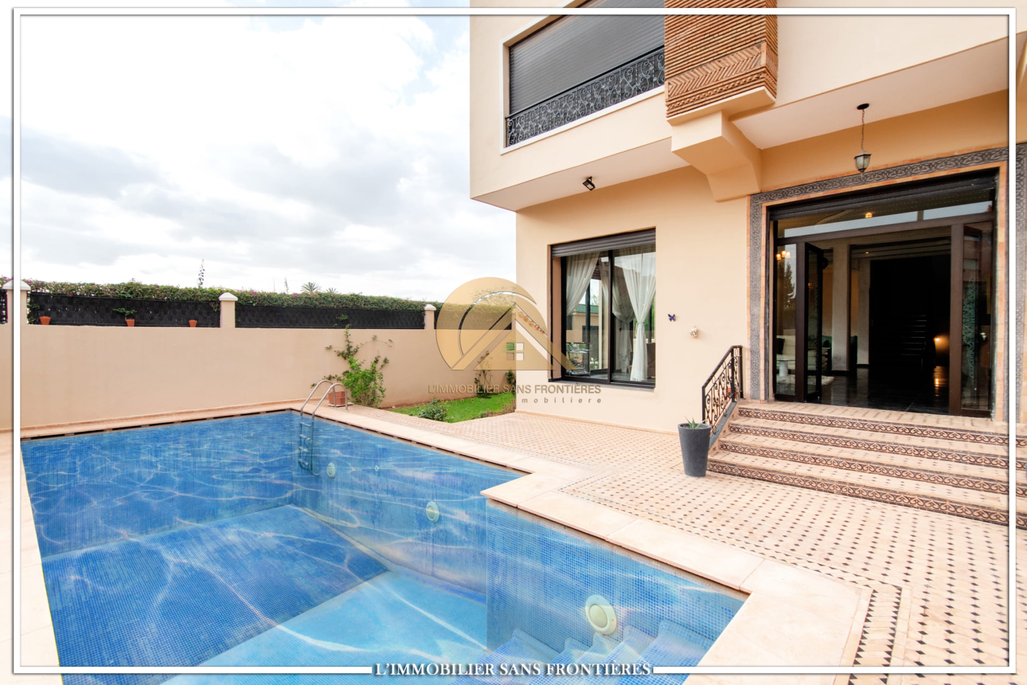 Real Estate Without Borders offers this unfurnished villa for sale in Targa, Marrakech, laid out over three levels and presented with quality finishes. The property includes a private pool and private garden.
