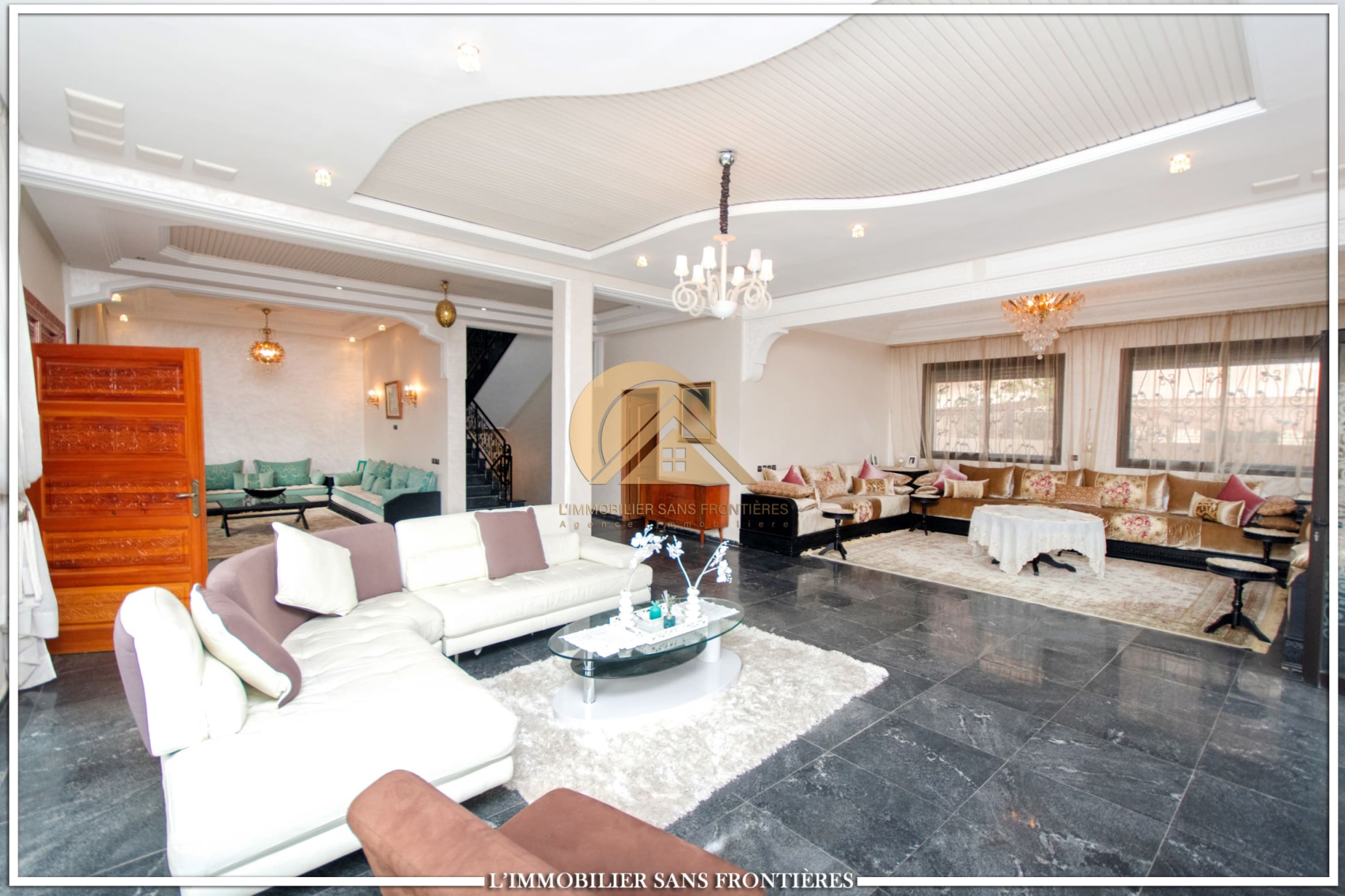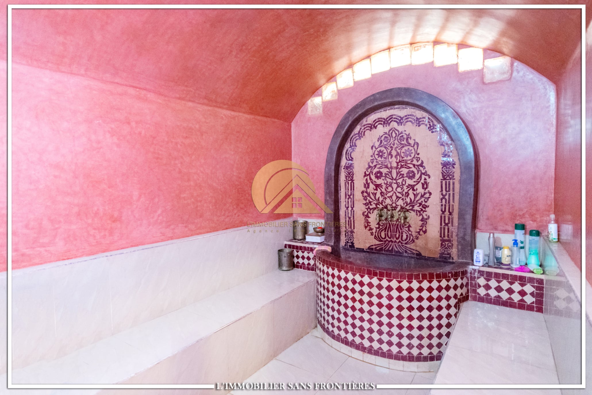 Basement: Moroccan living room – bedroom – fitted kitchen – bathroom – staff bedroom – guest toilet – traditional hammam – courtyard