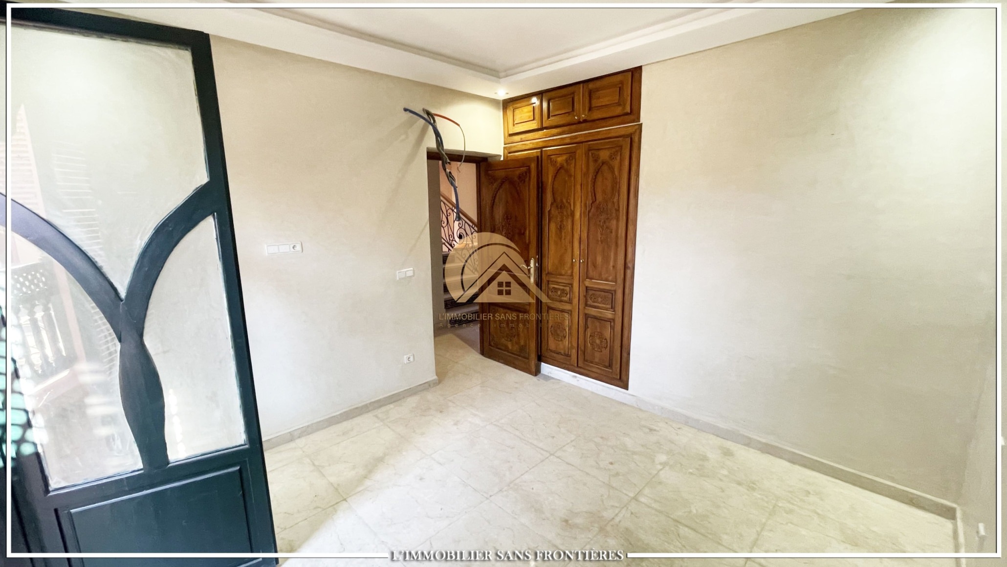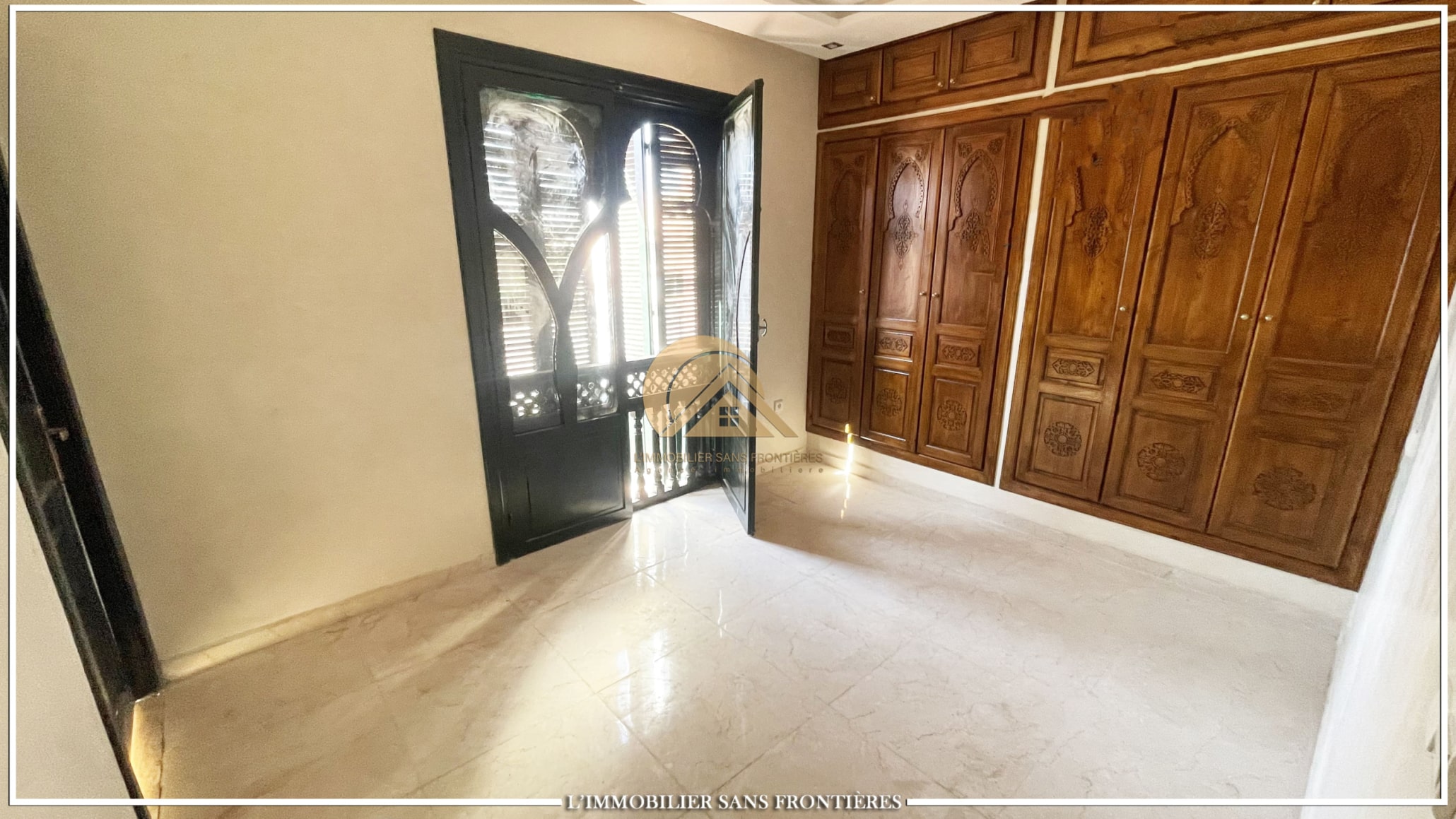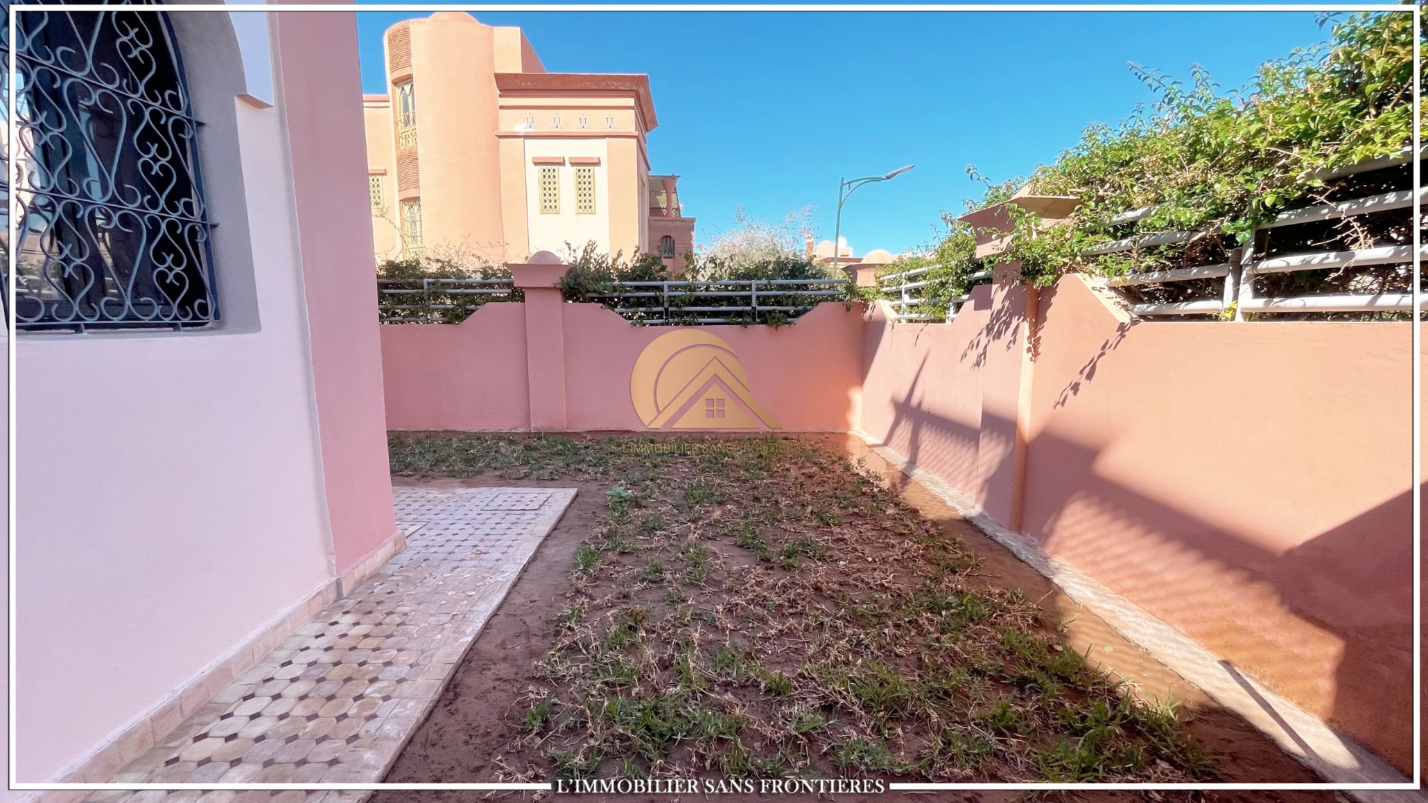 Real Estate Without Borders offers this unfurnished villa for sale in Bab Ighli, Marrakech. The text mentions a well-maintained private garden, a private pool and bright living areas with stated marble flooring.