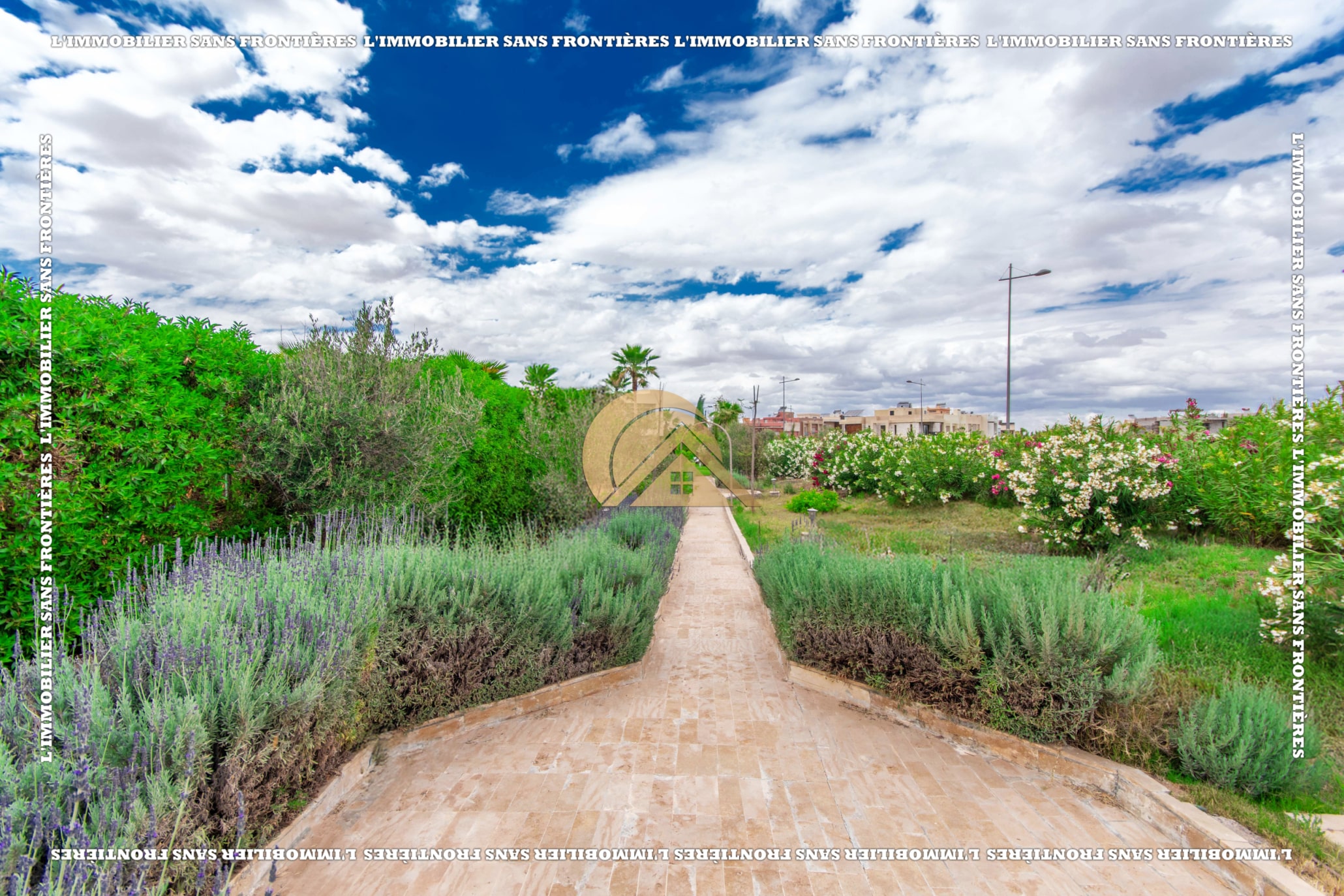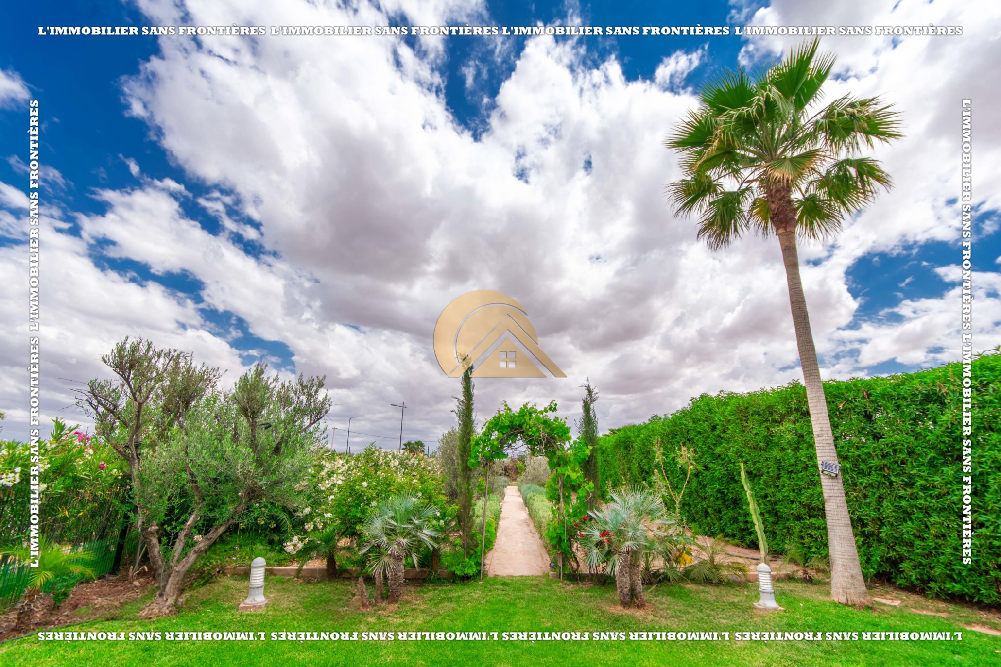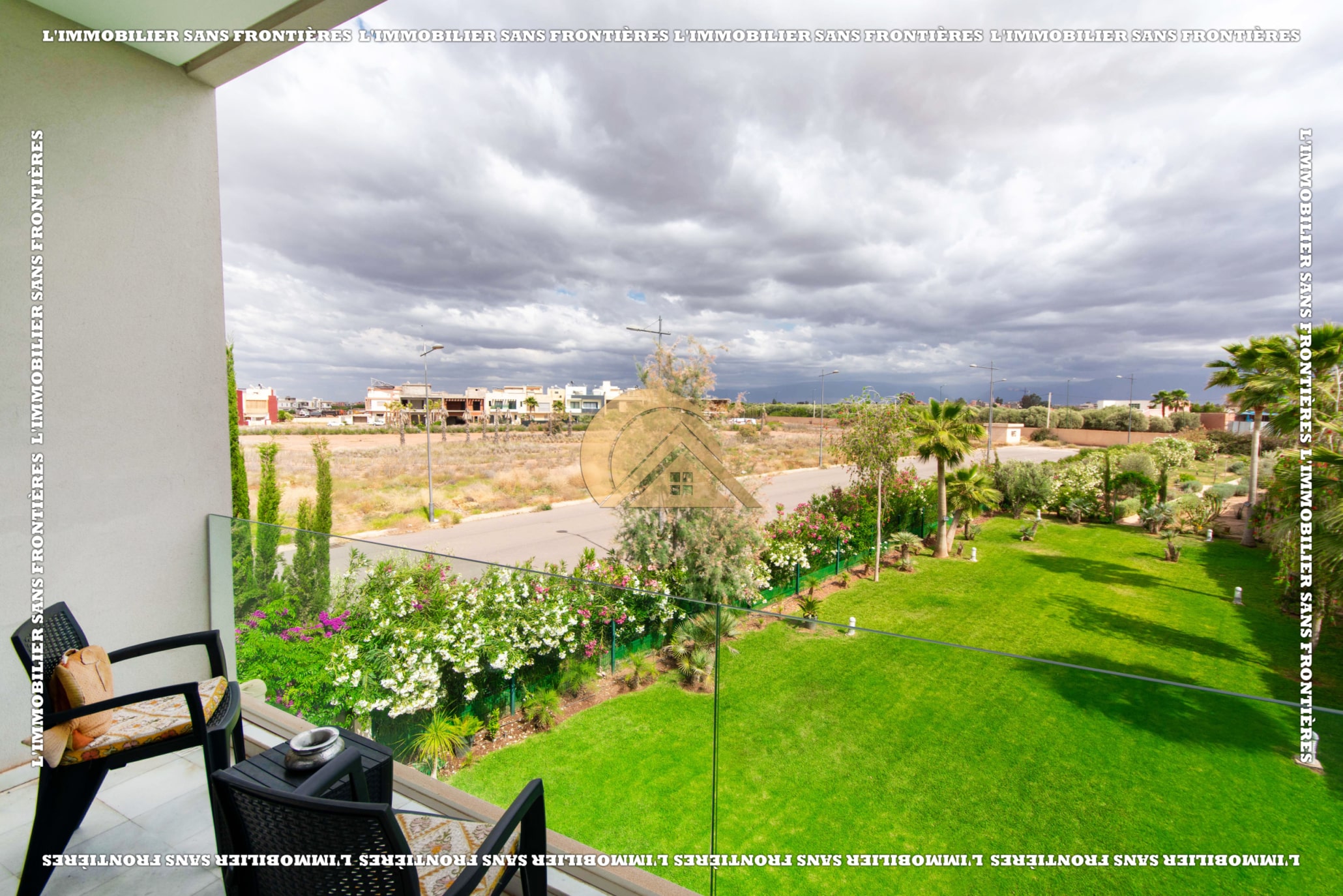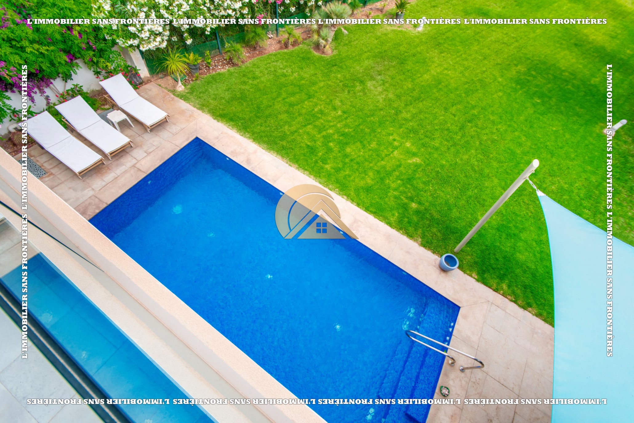 Real Estate Without Borders offers this unfurnished villa for rent in Golf Argan, on Route de Tahanaout in Marrakech. The villa is described in a peaceful setting, with landscaped garden, private pool and a cascade. Stated sizes: land 450 m² and 800 m² living area.
