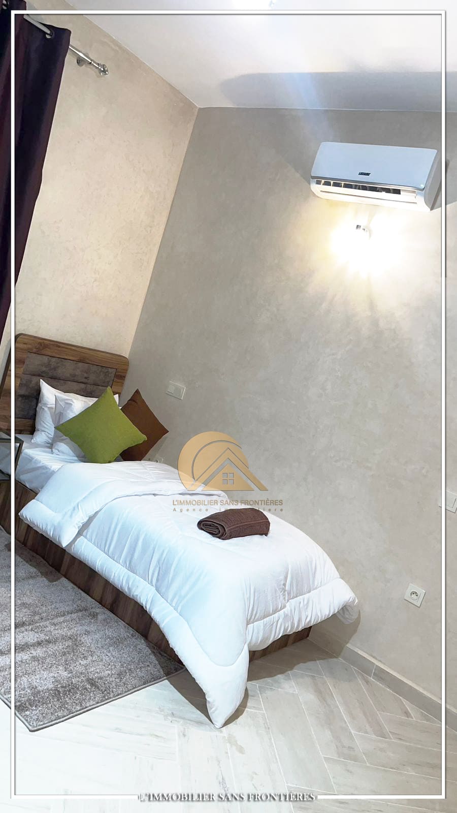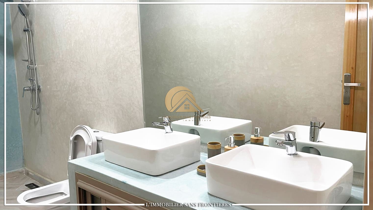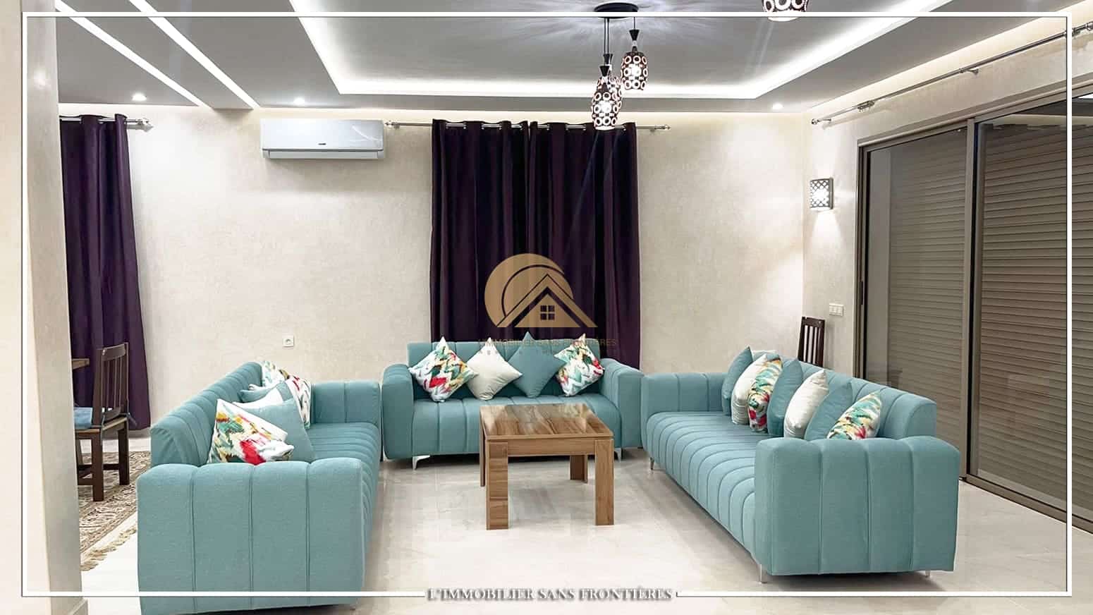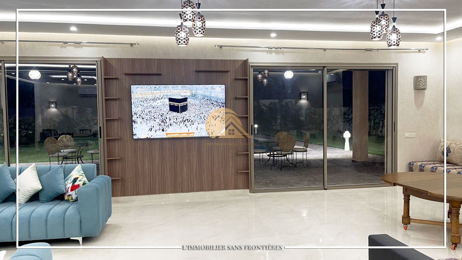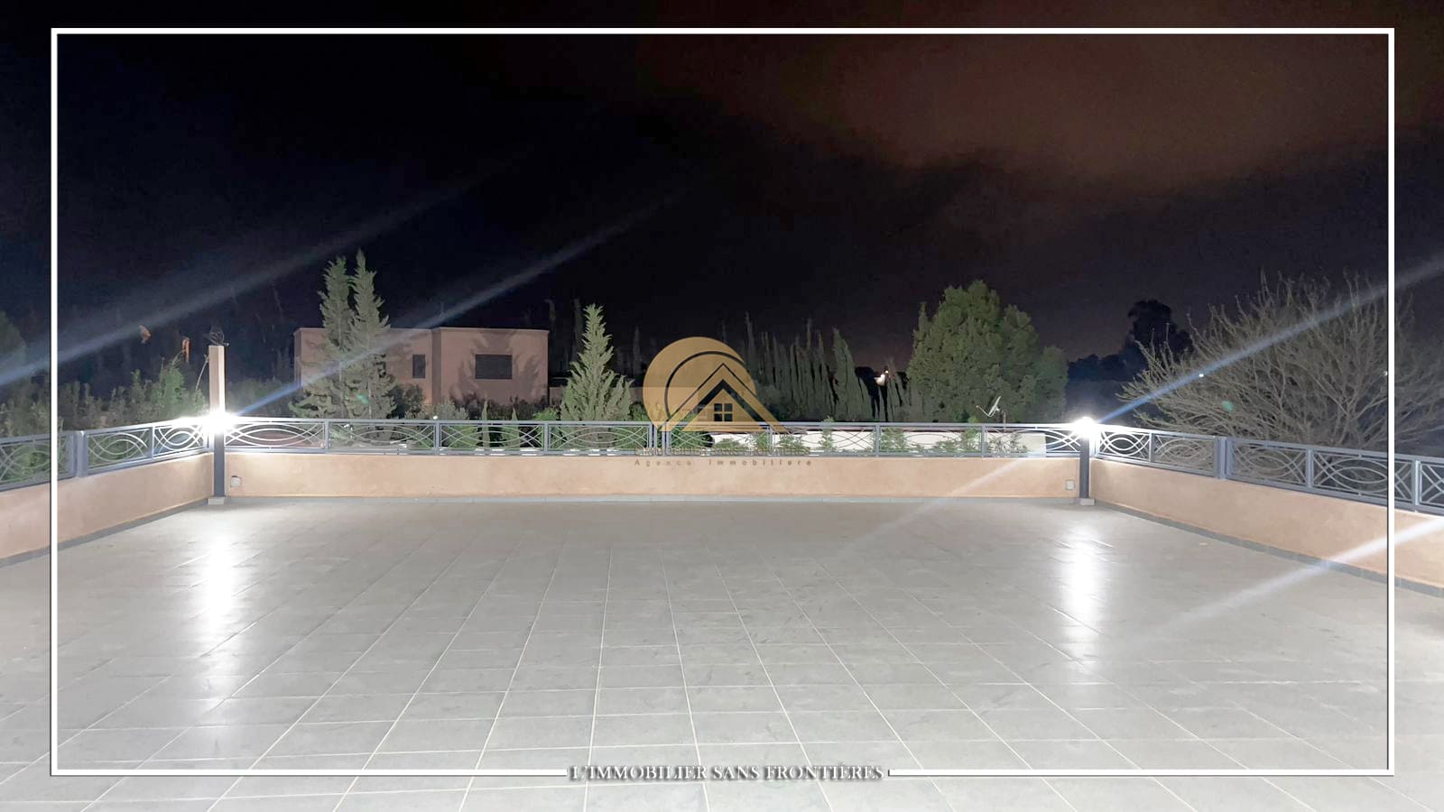 Ground floor: Moroccan living room – European living room – Sitting area – 4 suites with bathrooms, dressing rooms and AC – Equipped kitchen – Laundry area – Terrace