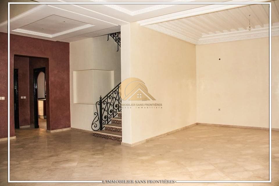 Real Estate Without Borders offers this unfurnished villa for rent in Targa, Marrakech, built on two levels. The listing mentions a large private garden, natural light, an open view, and proximity to shops, schools and services.