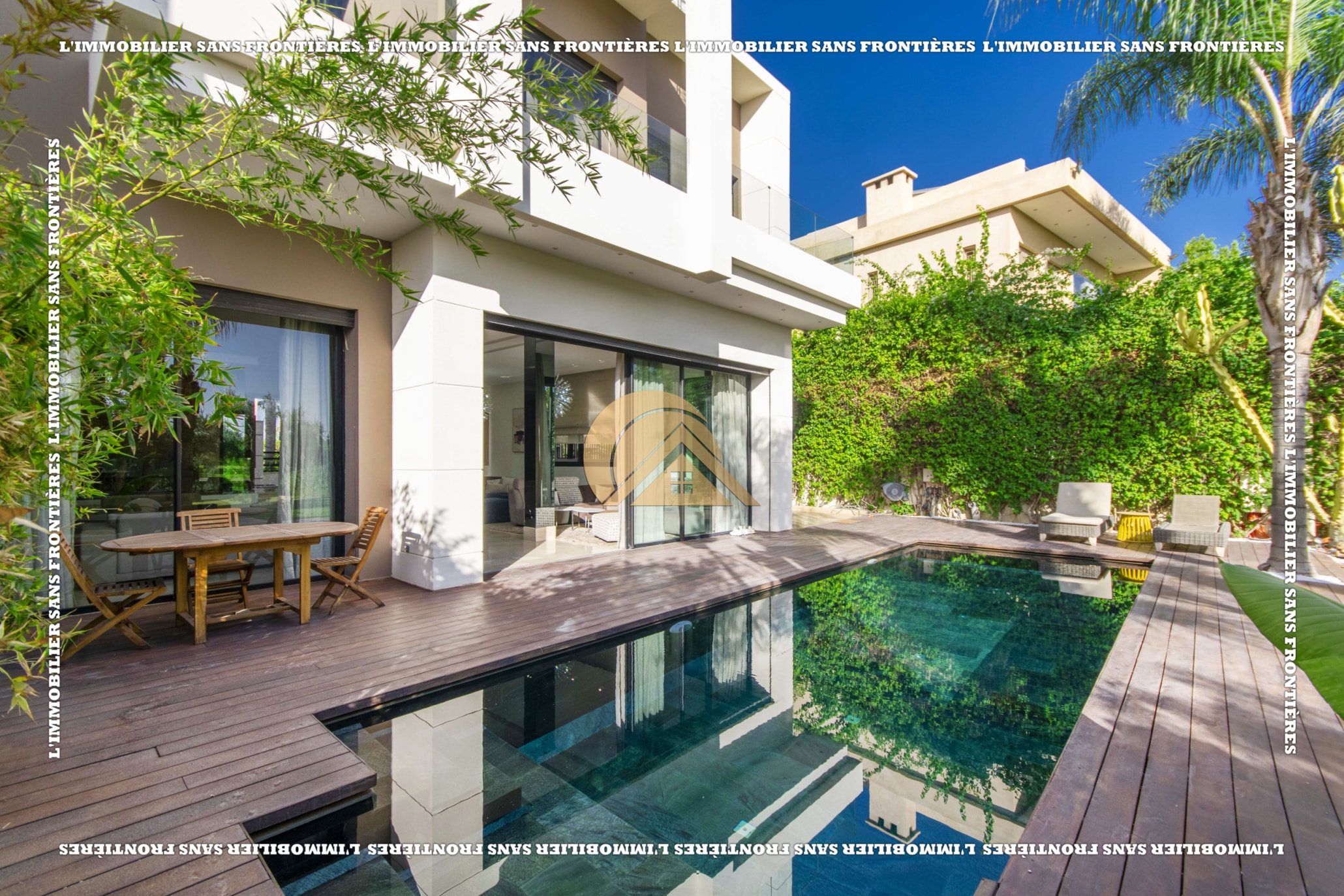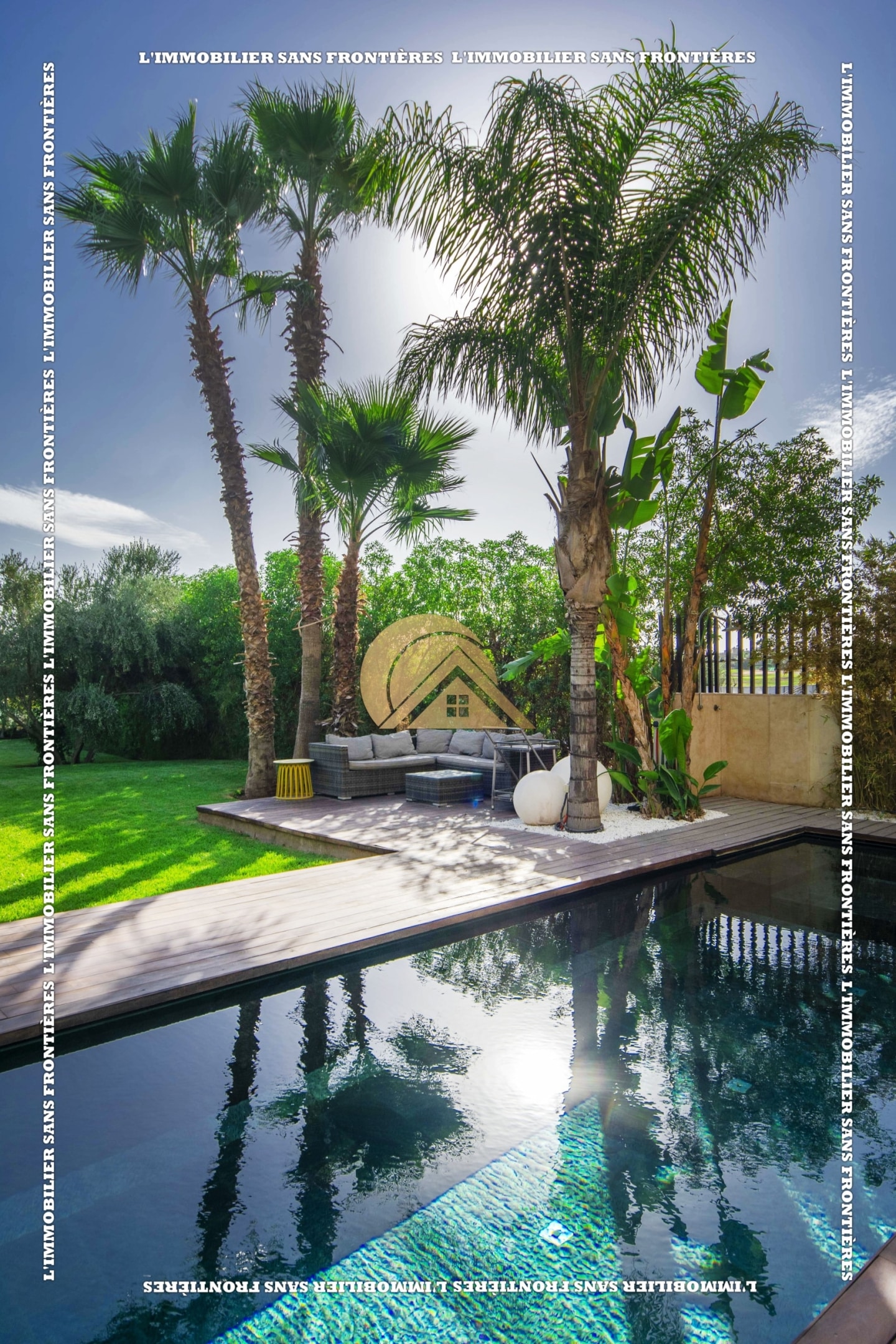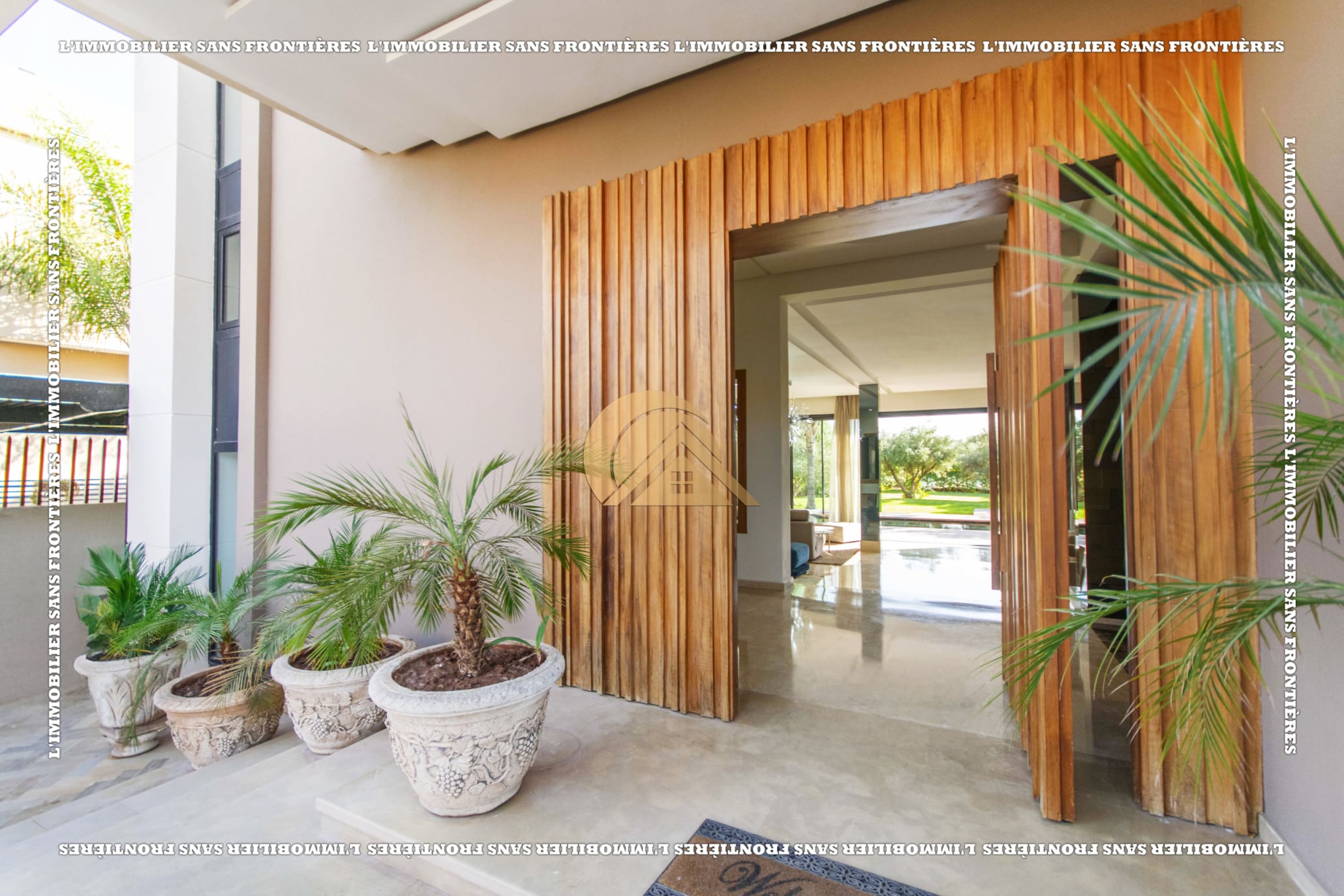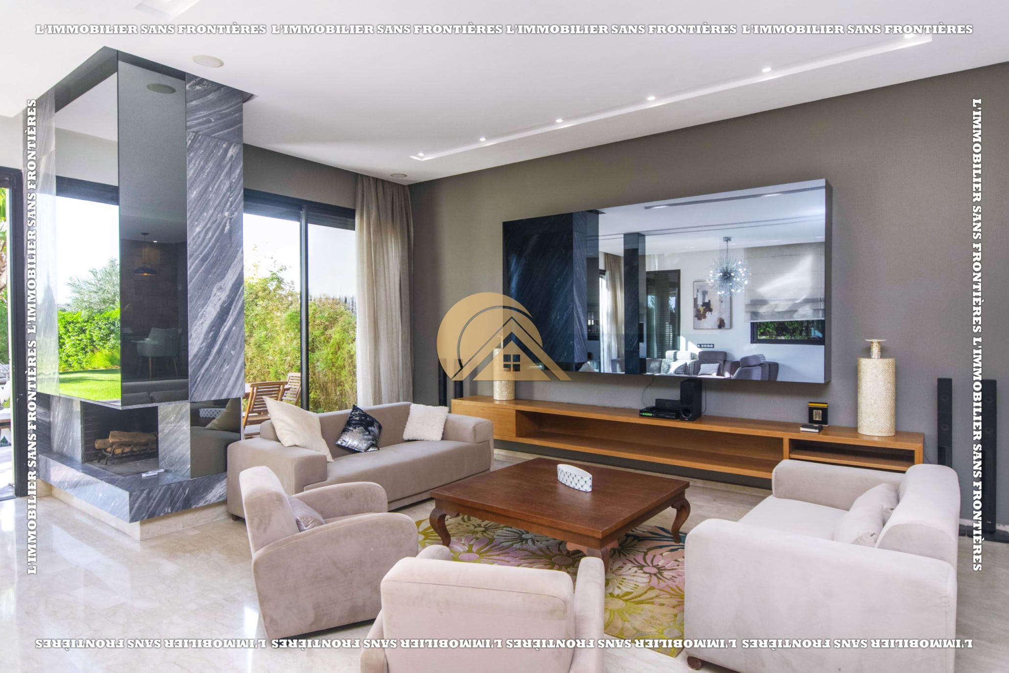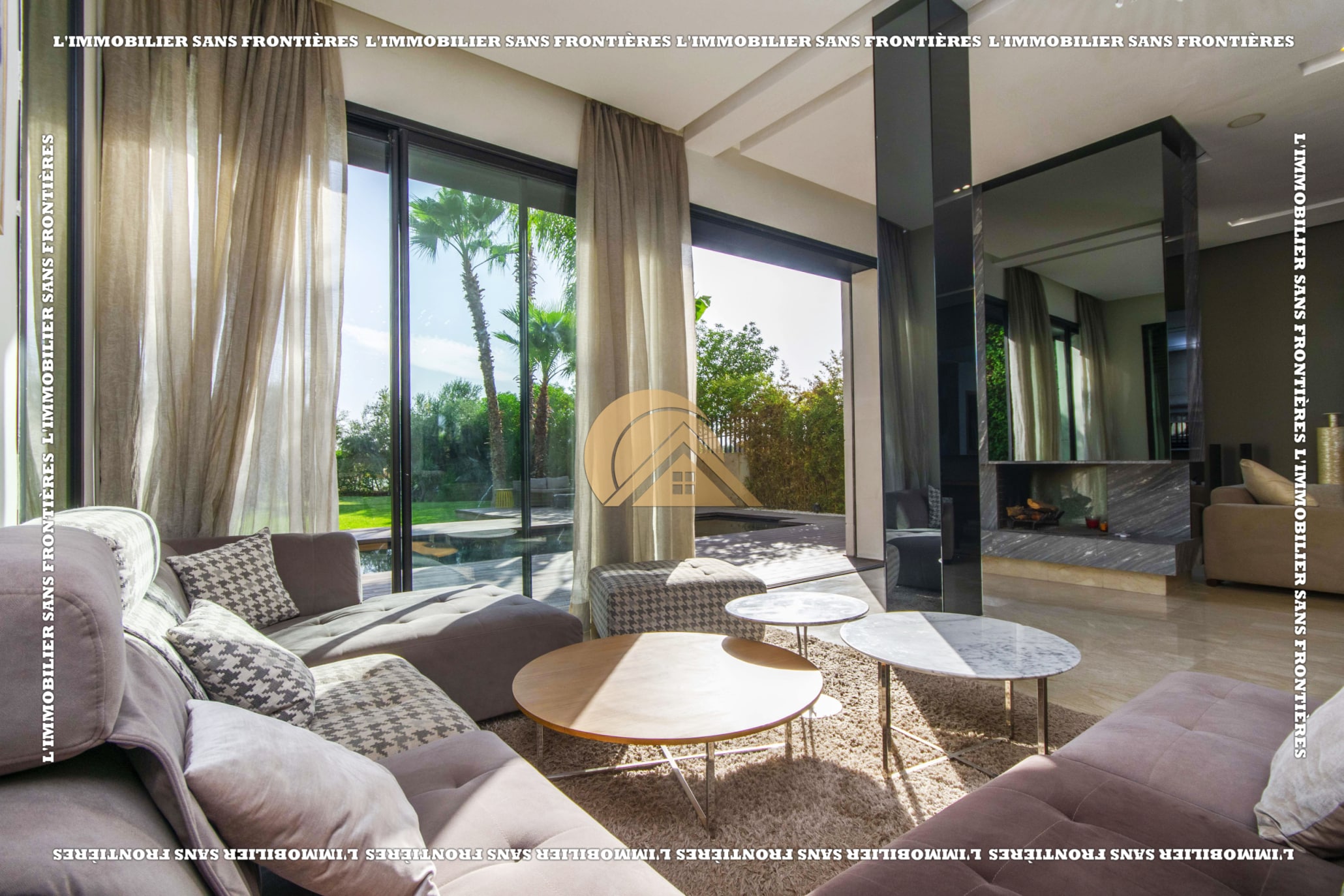 Real Estate Without Borders presents this furnished villa for rent within the Golf Argan residence, on Route de Tahanaout in Marrakech. It is described as calm, with a golf view and a contemporary layout. Set on a 1000 m² plot with 500 m² of living space, it offers generous volumes.