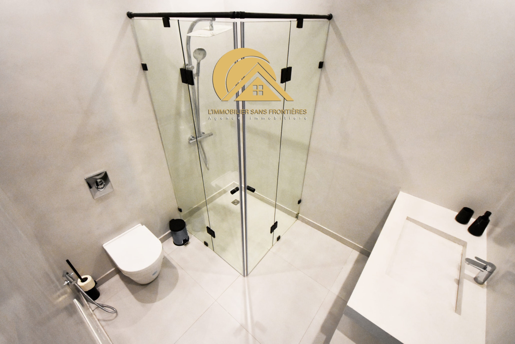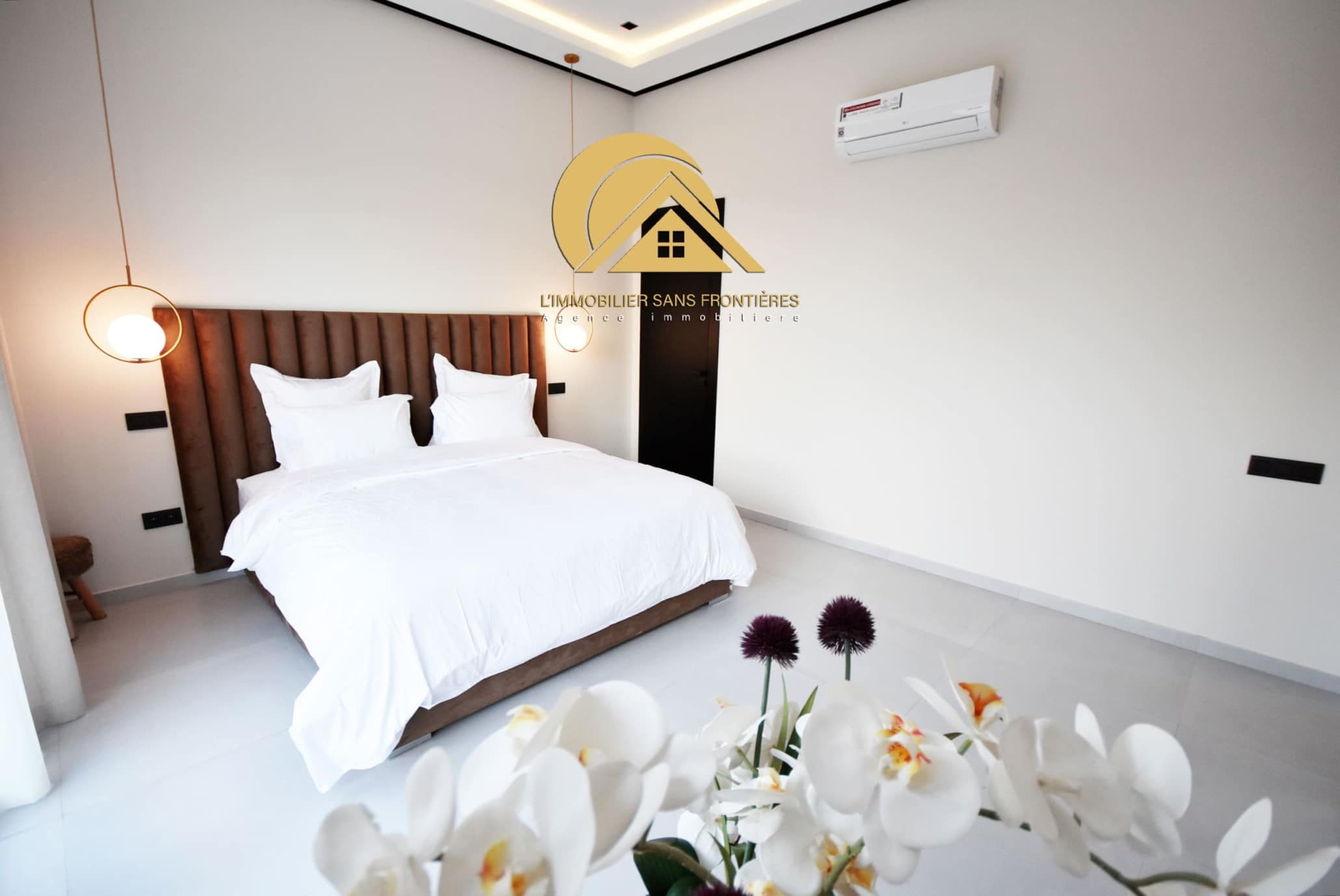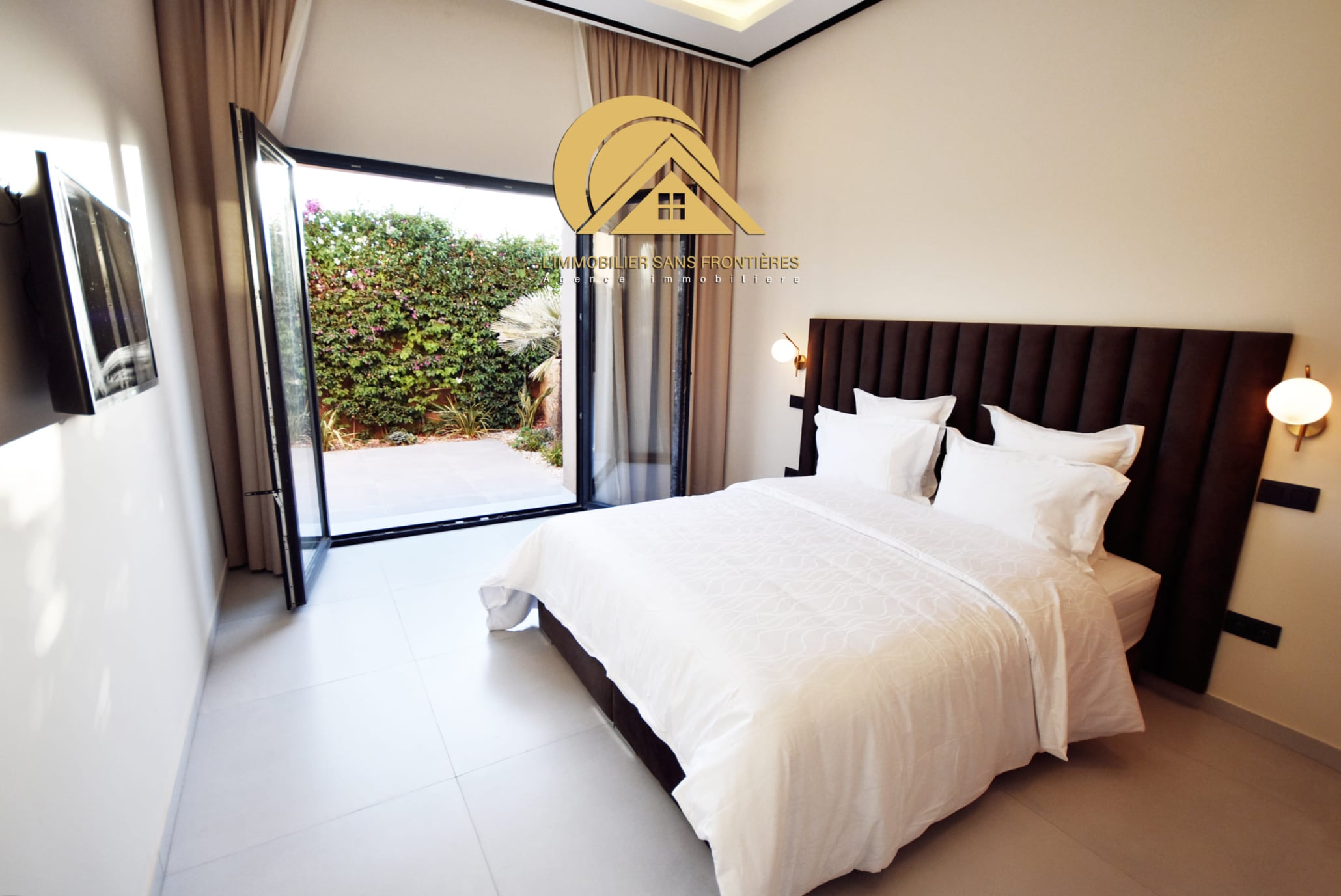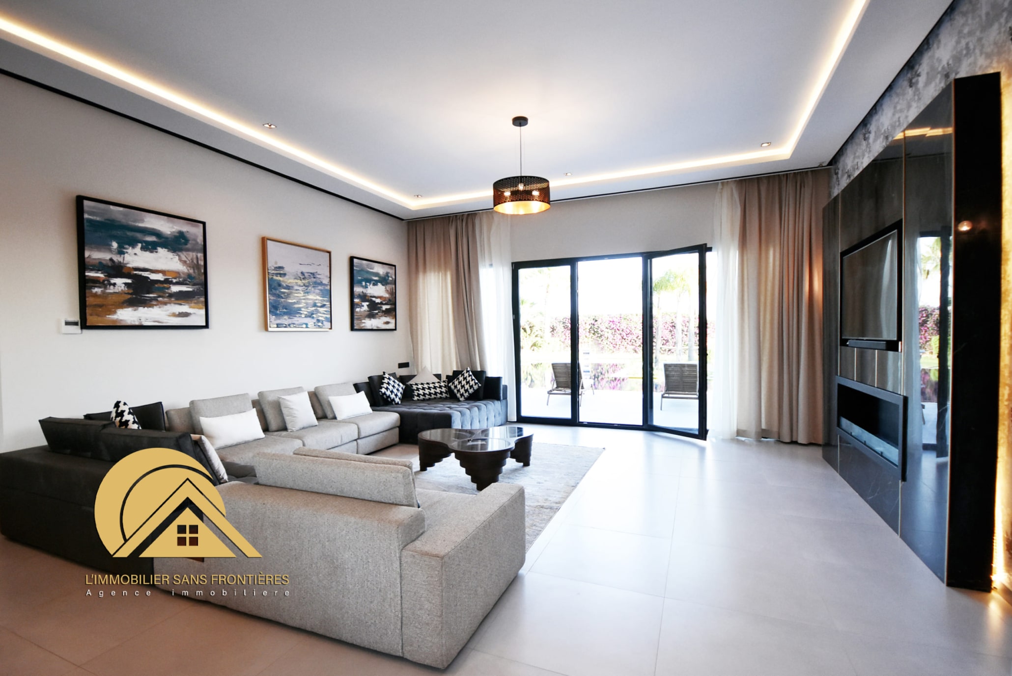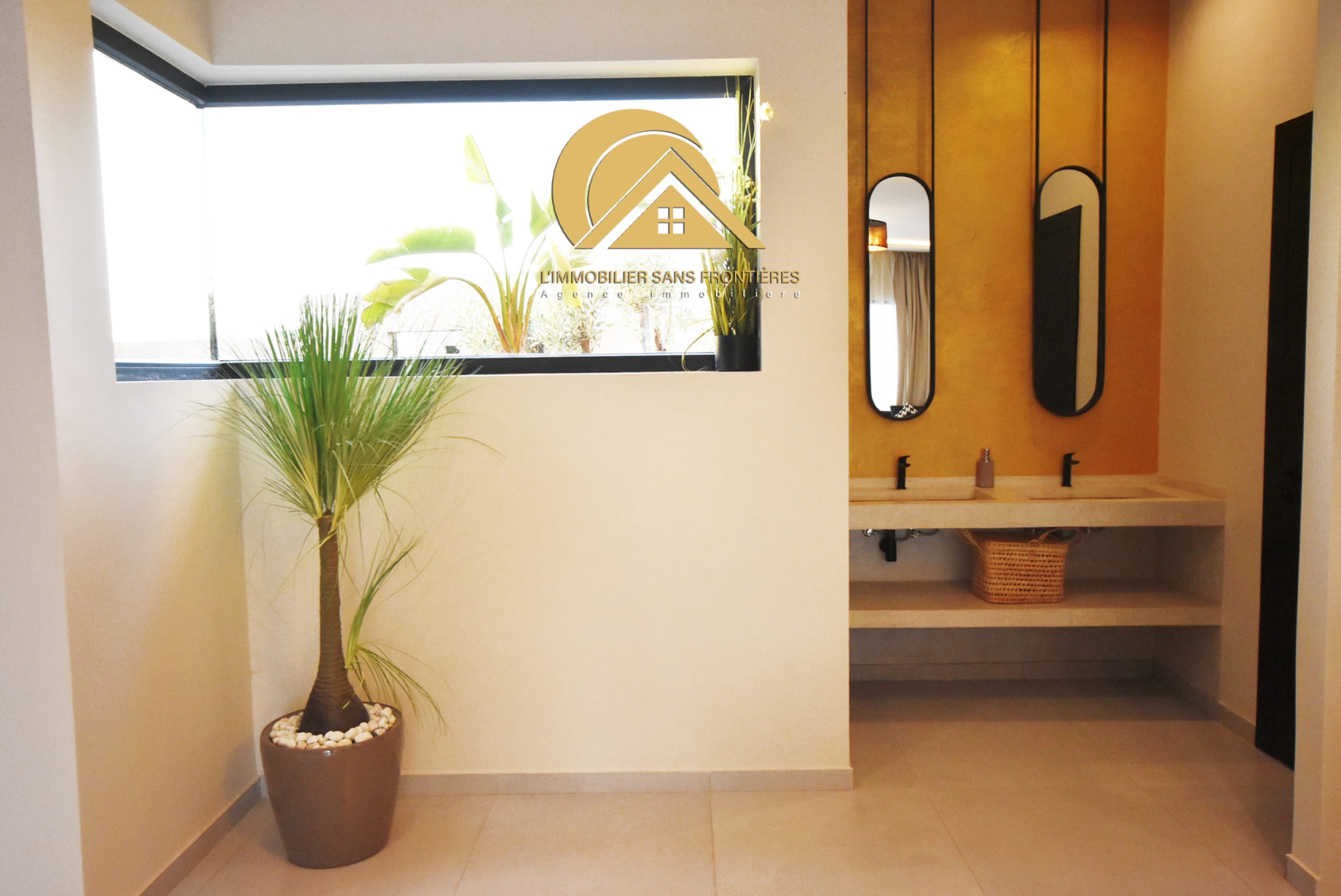 Large living room with garden/pool view – master suite with dressing – bathroom – 2 bedrooms – fully equipped American kitchen – 2 bathrooms – guest washbasin and toilet – terrace – traditional hammam – central air conditioning