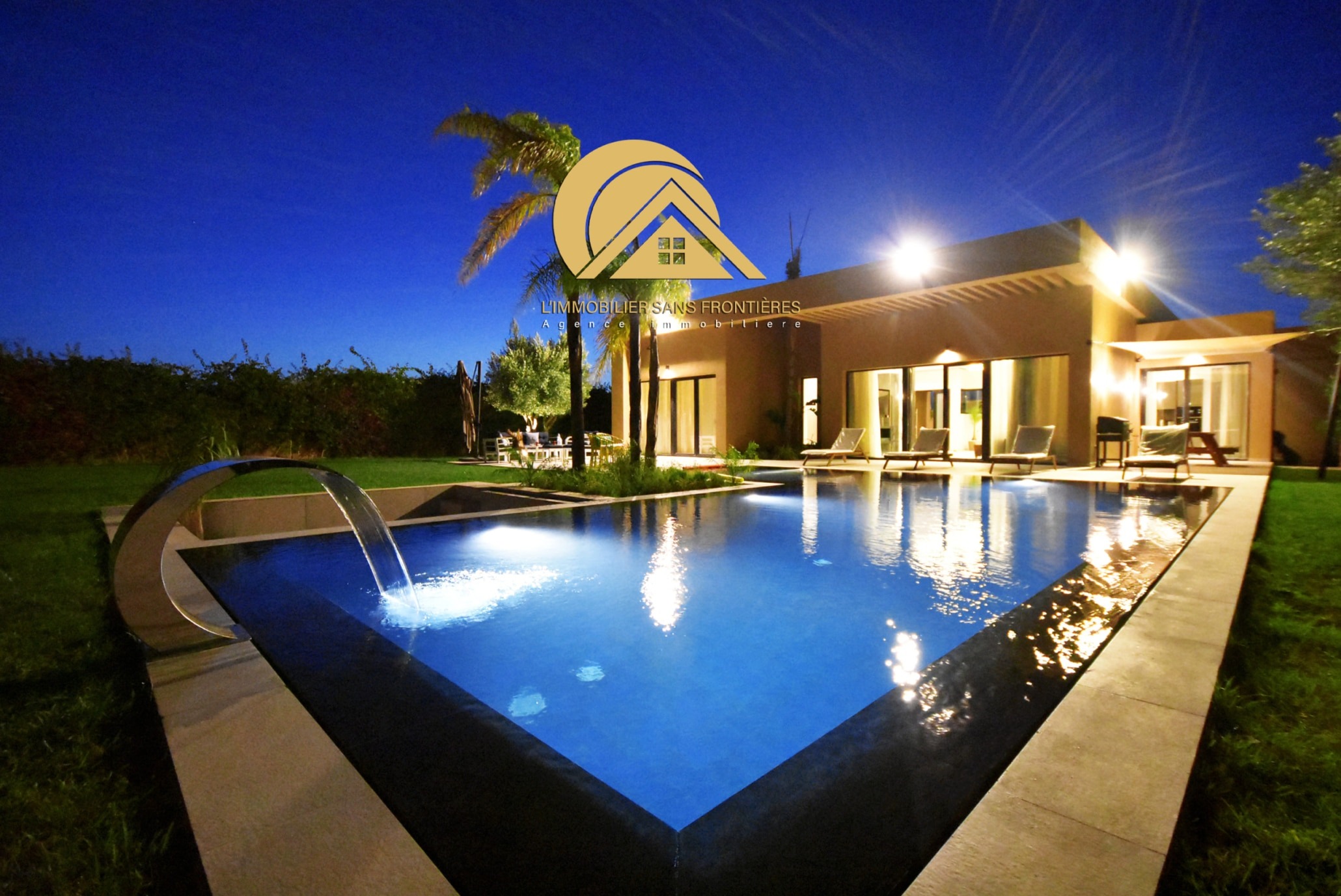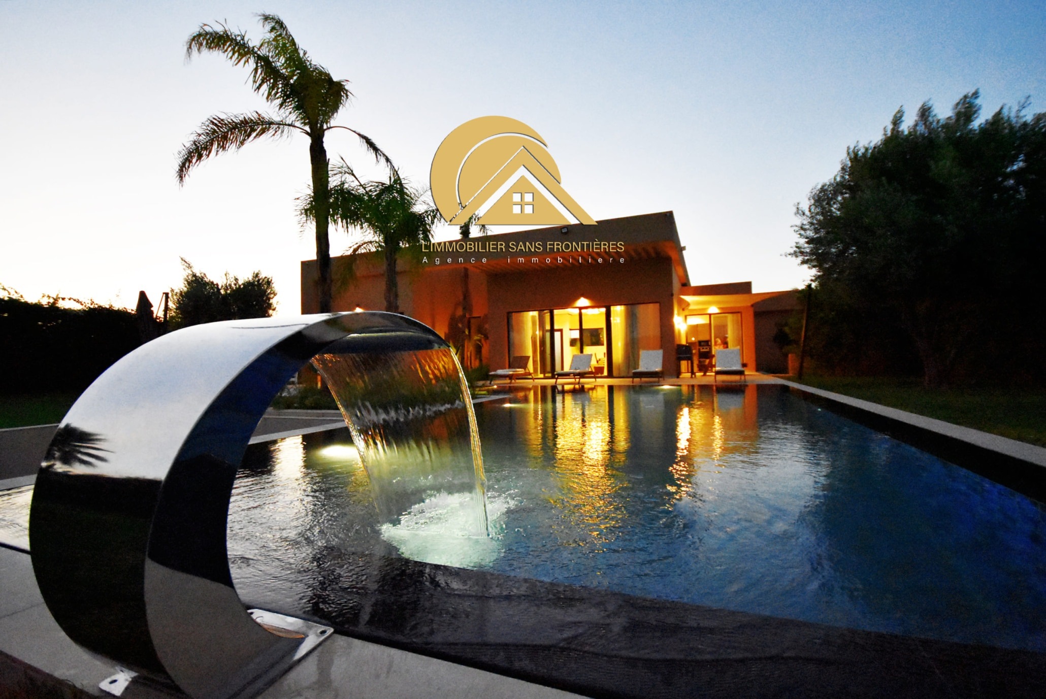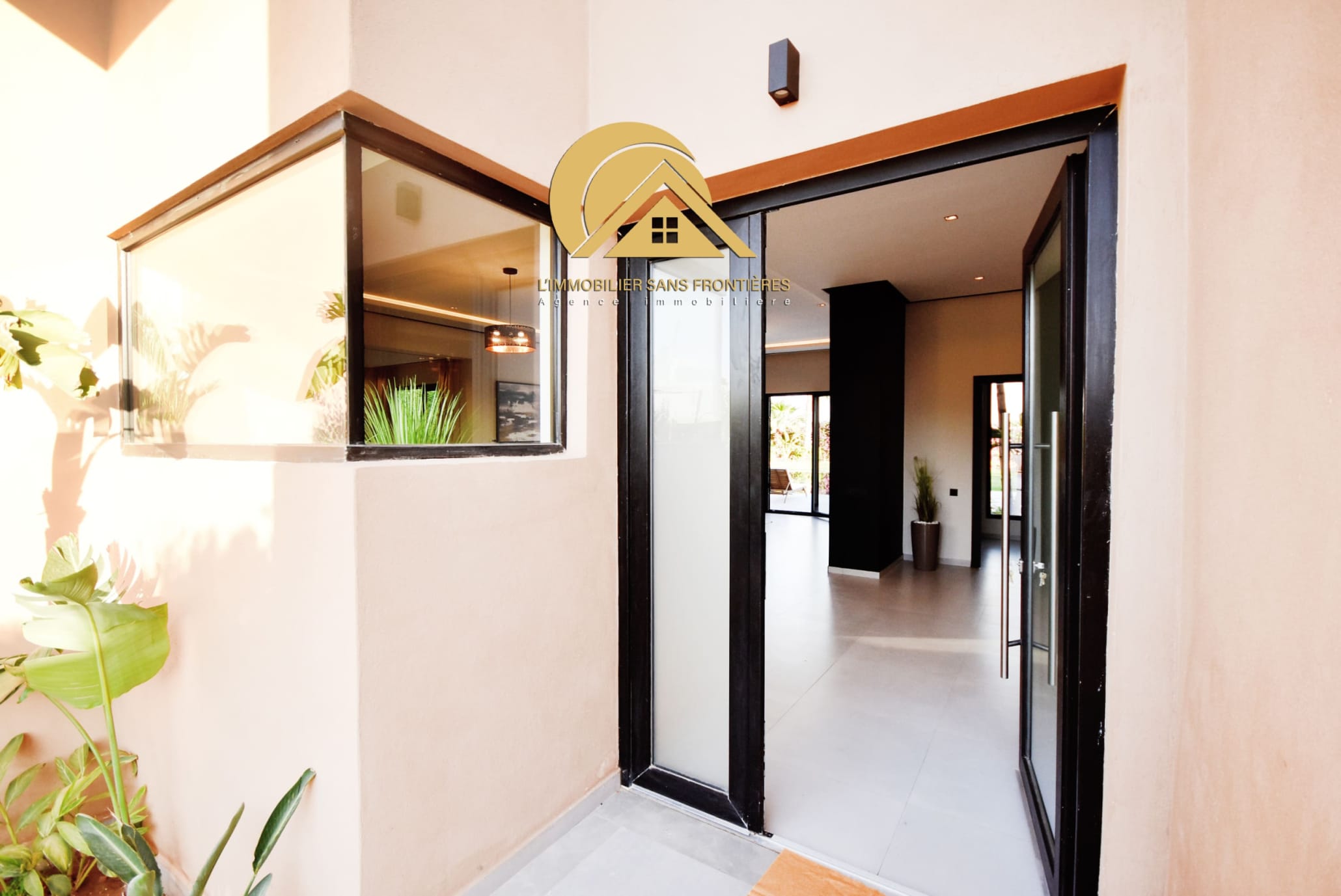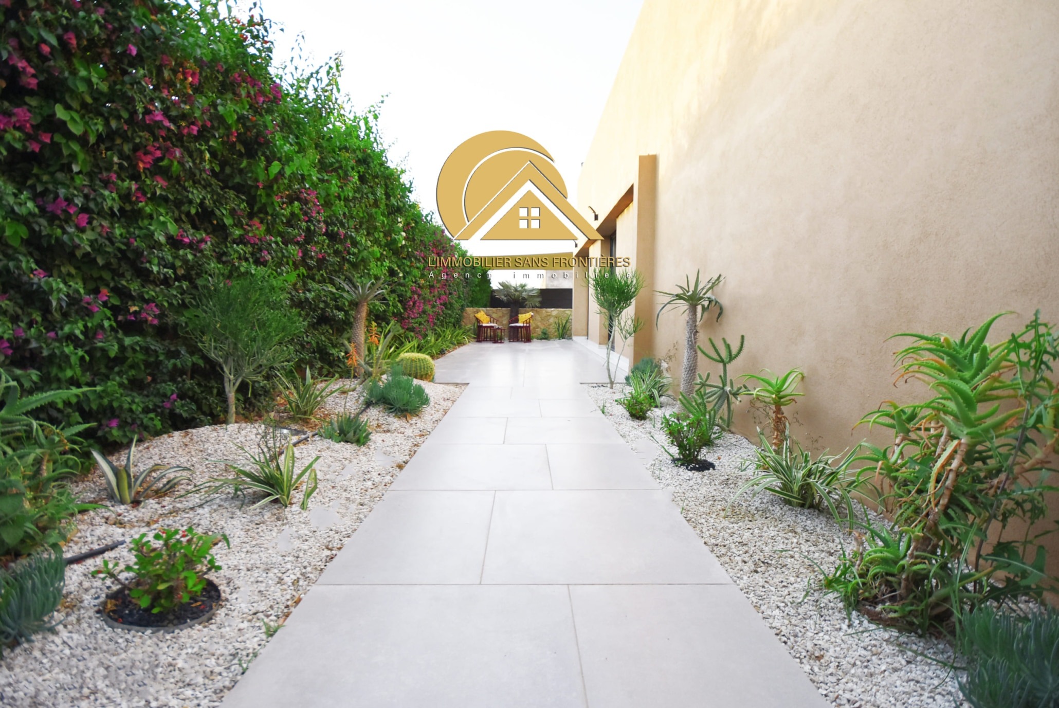 Real Estate Without Borders offers this furnished villa for rent on the Ouarzazate road, Marrakech. It is single-storey and has two facades, with a garden and a private pool. The villa is stated as available in March.