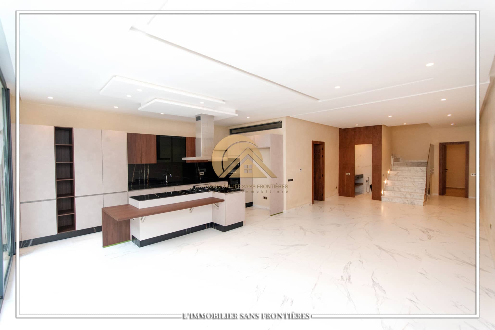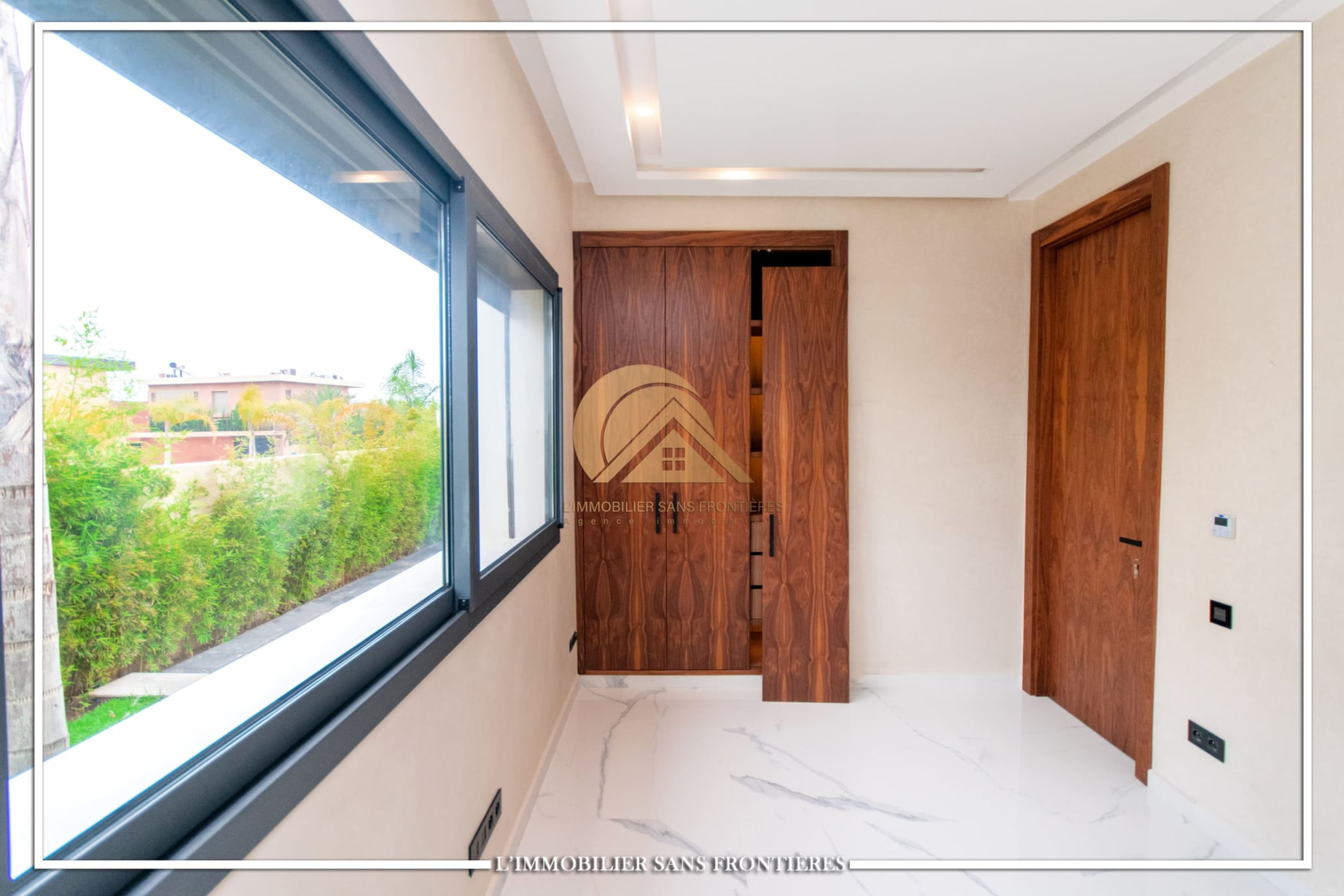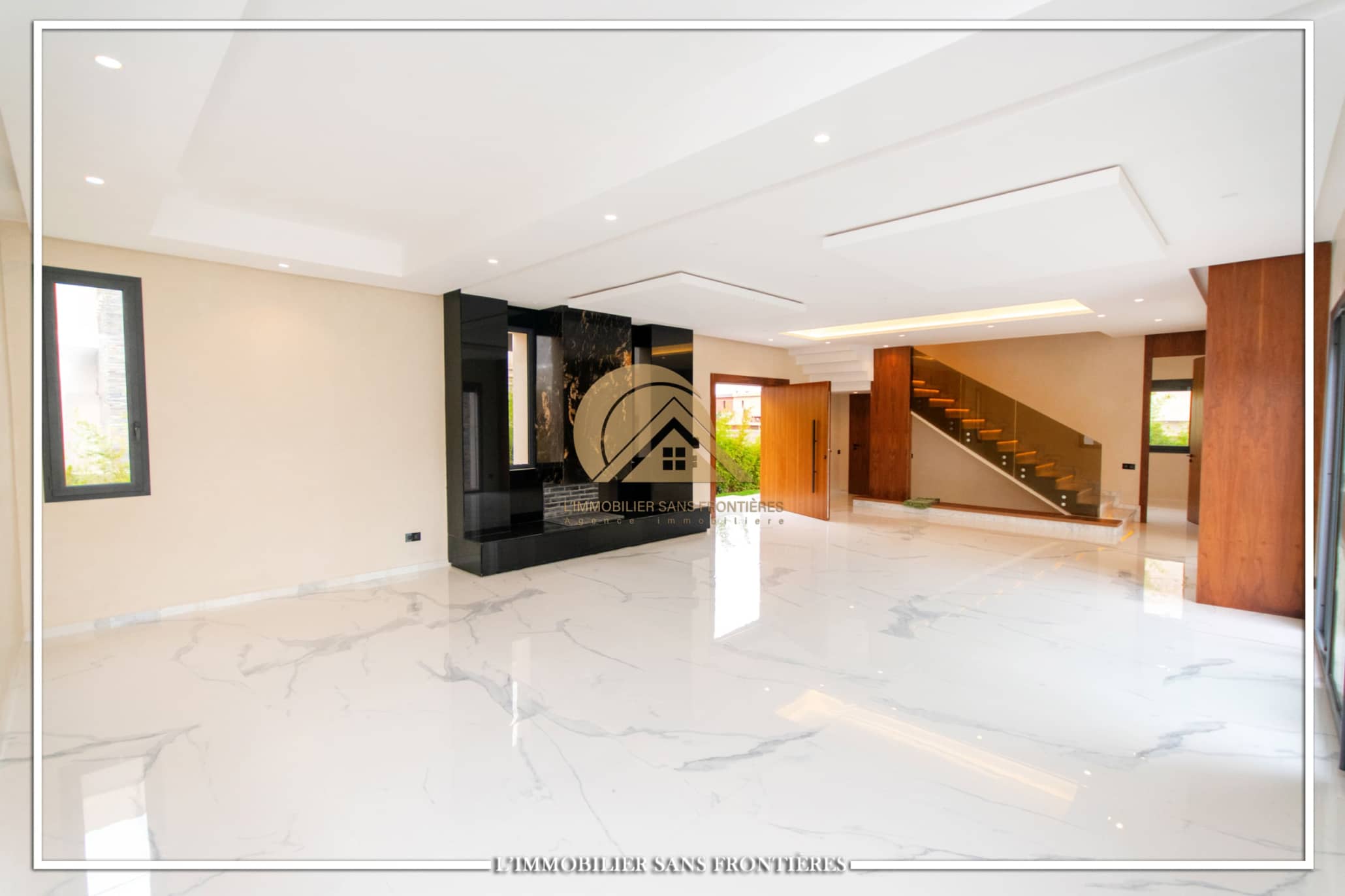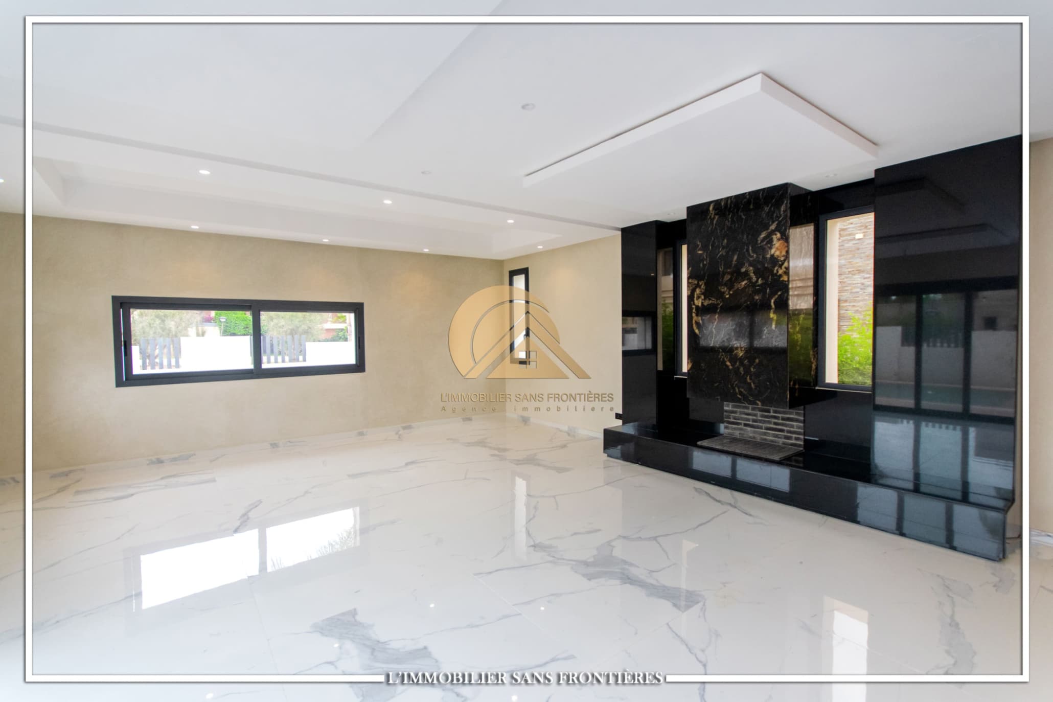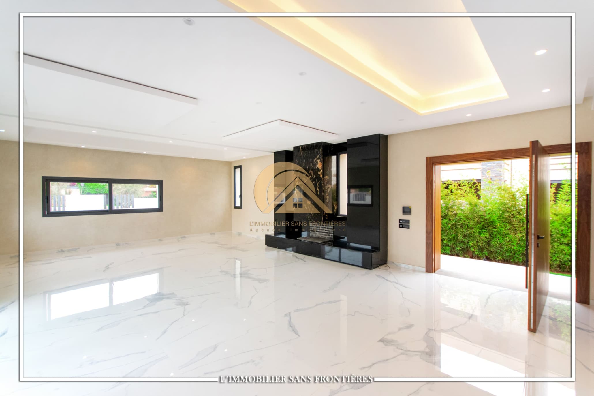 Real Estate Without Borders offers for rent this modern villa on Route d’Ourika in Marrakech, within a golf residence. Unfurnished villa on a 500 m² plot with 450 m² of living space, featuring a private pool and landscaped garden; availability indicated in August.