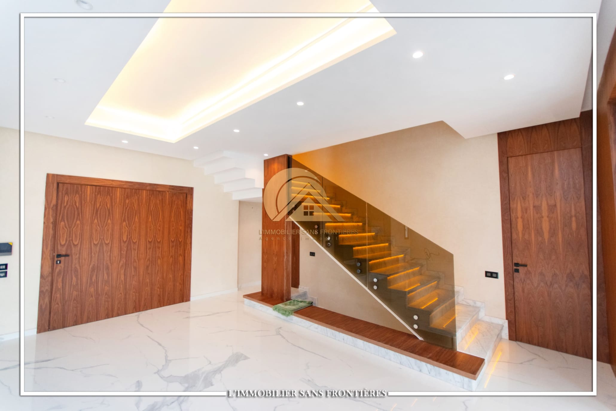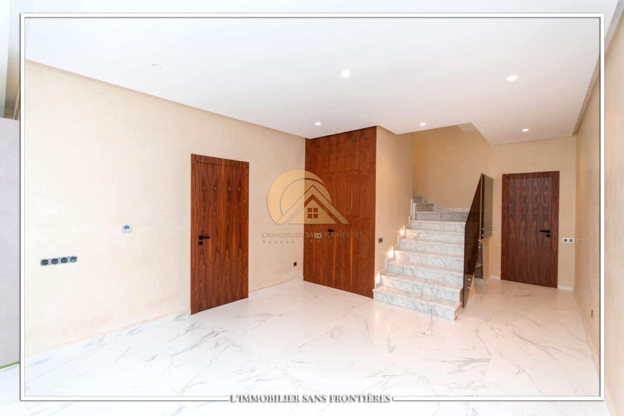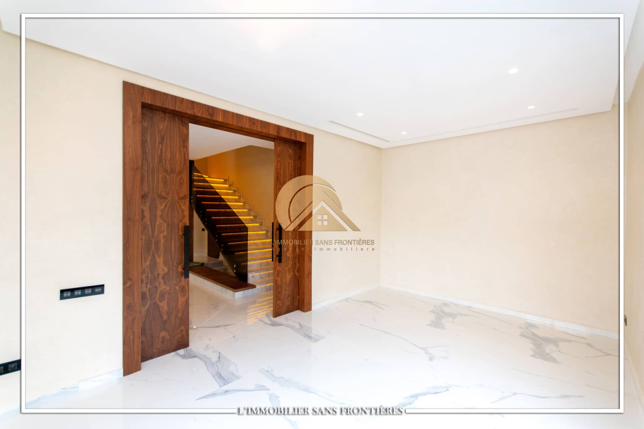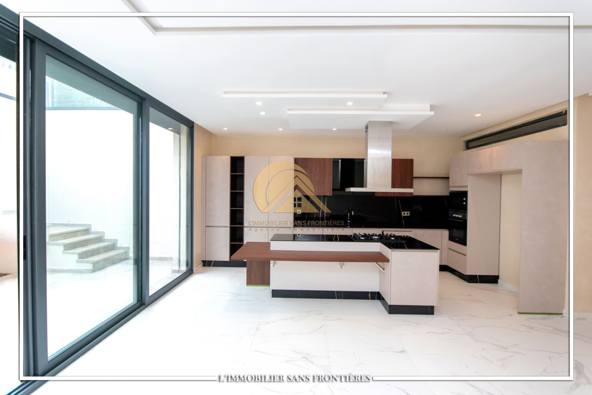Real Estate Without Borders offers for rent this modern villa on Route d’Ourika in Marrakech, within a golf residence. Unfurnished villa on a 500 m² plot with 450 m² of living space, featuring a private pool and landscaped garden; availability indicated in August.