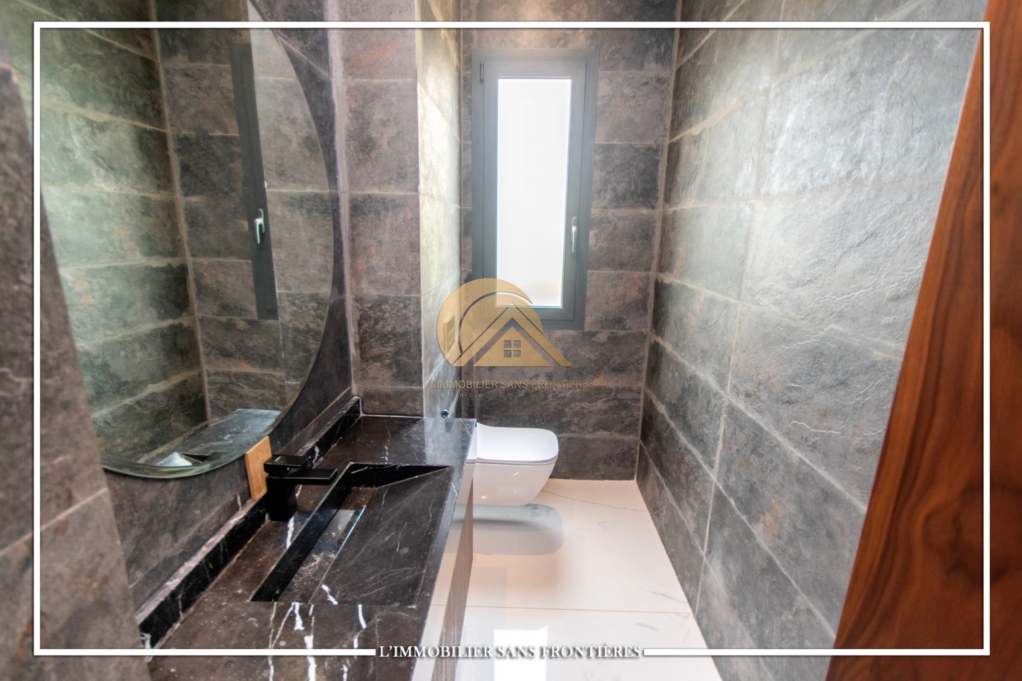 Ground floor: Modern lounge – Moroccan lounge – Suite with bathroom, closet, and central air conditioning – Guest toilet – Terrace – Wood fireplace – Bay window