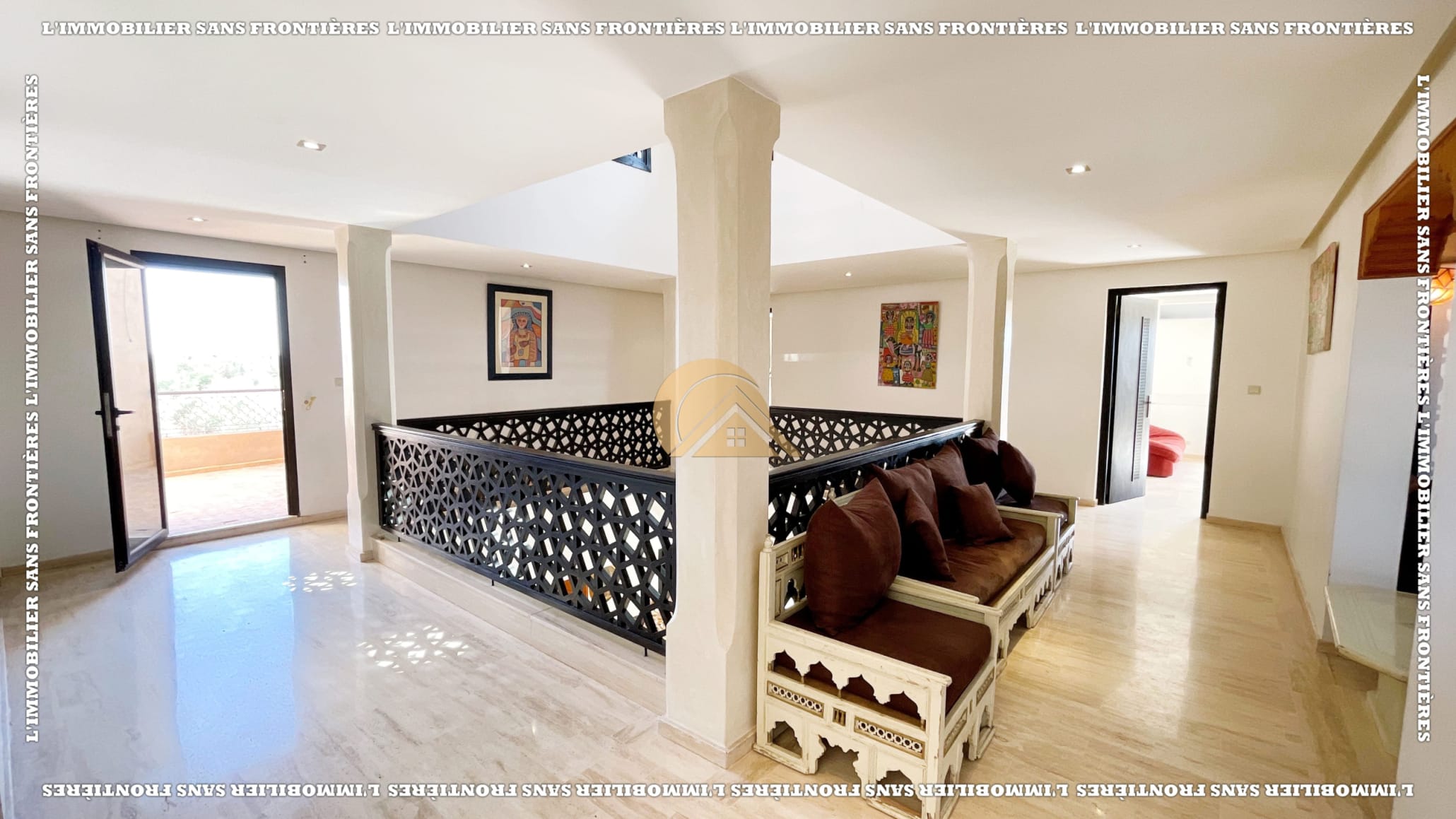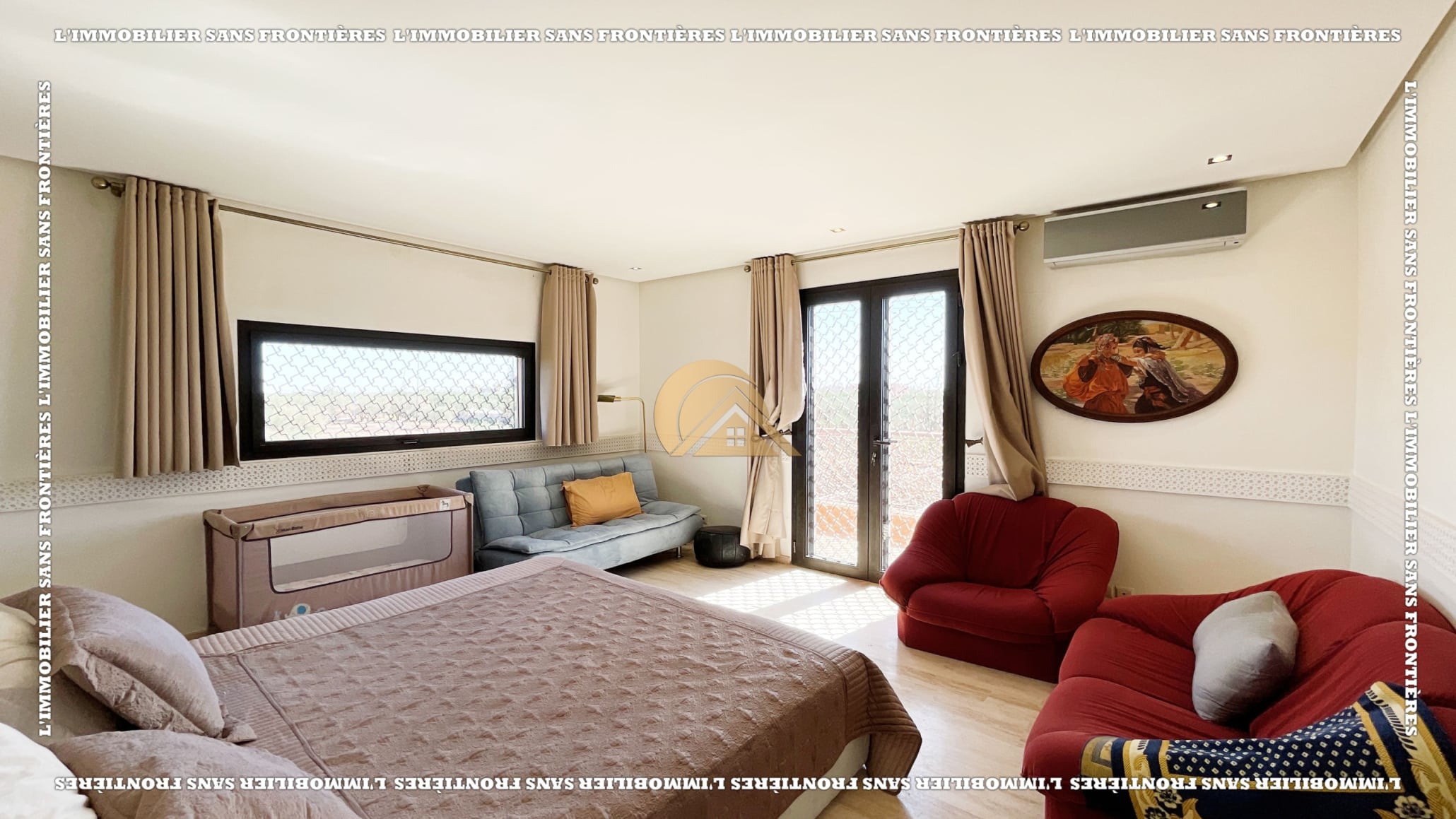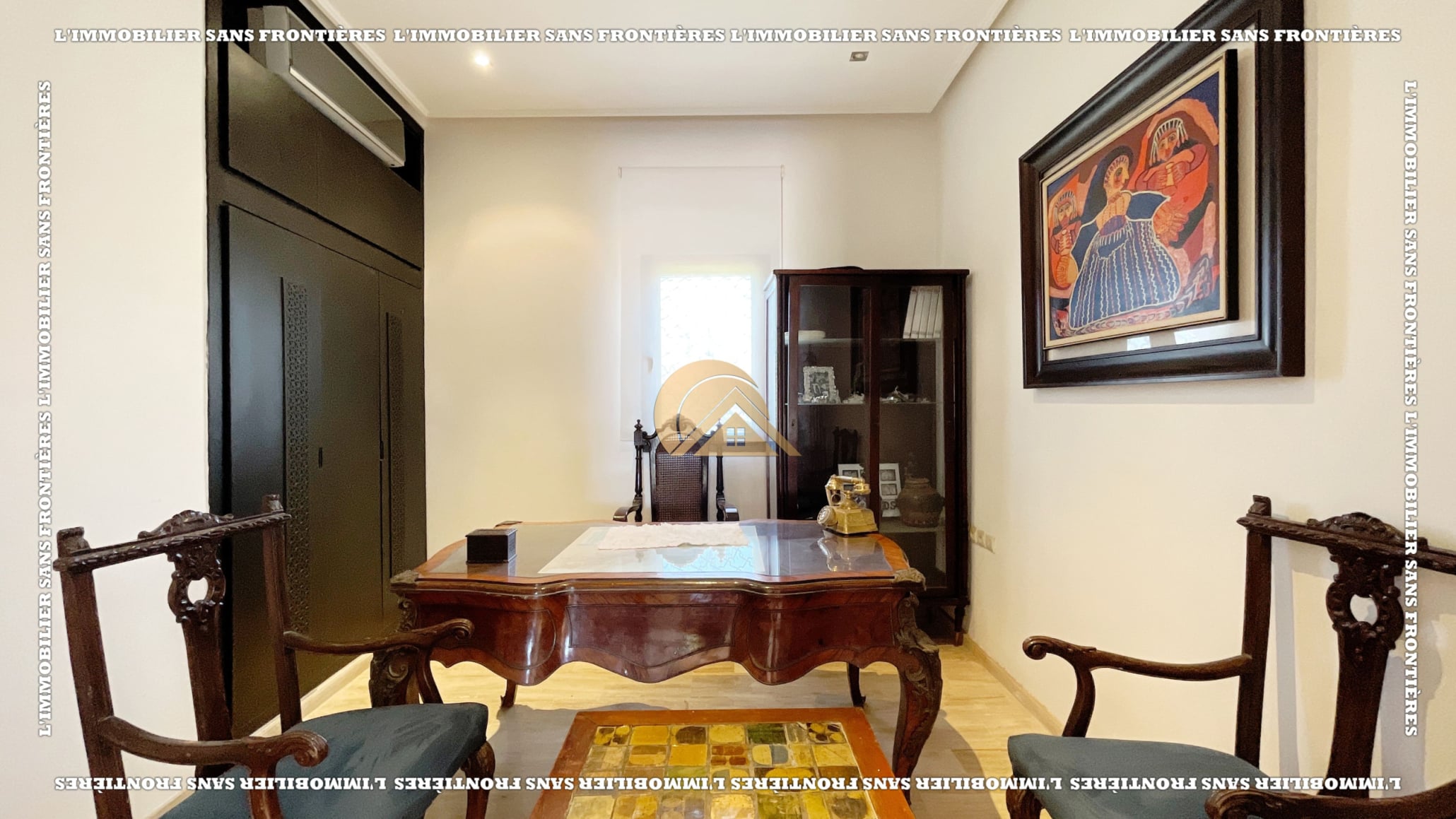 Ground floor: European living room – Moroccan living room – Guest toilet – Suite with bathroom, dressing room, fireplace, bay window, terrace access and AC – Office – Equipped kitchen – Laundry area
