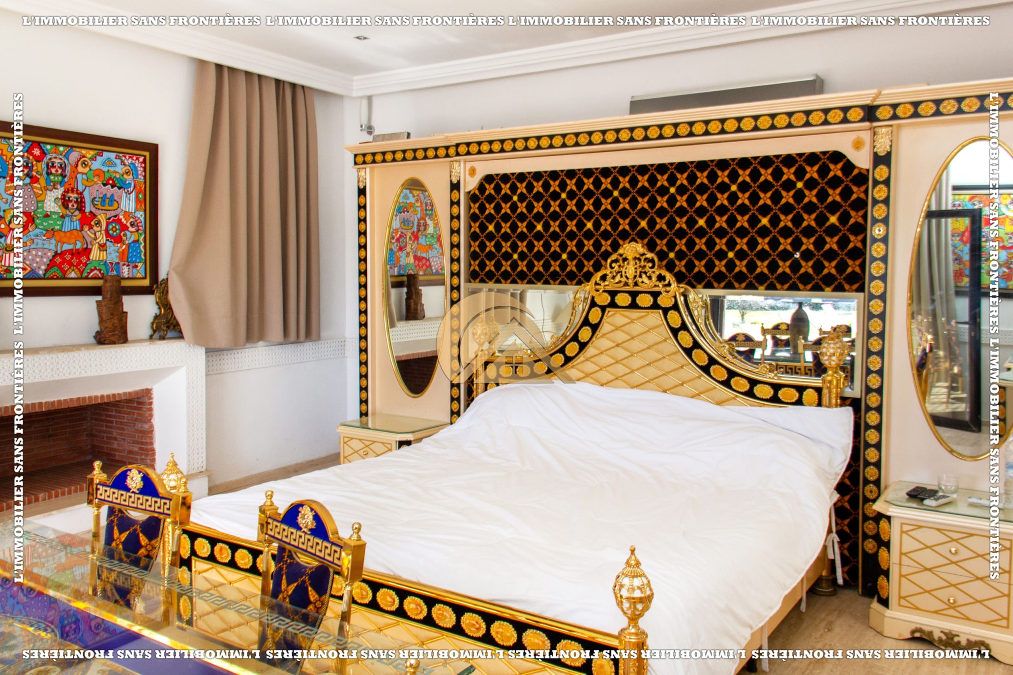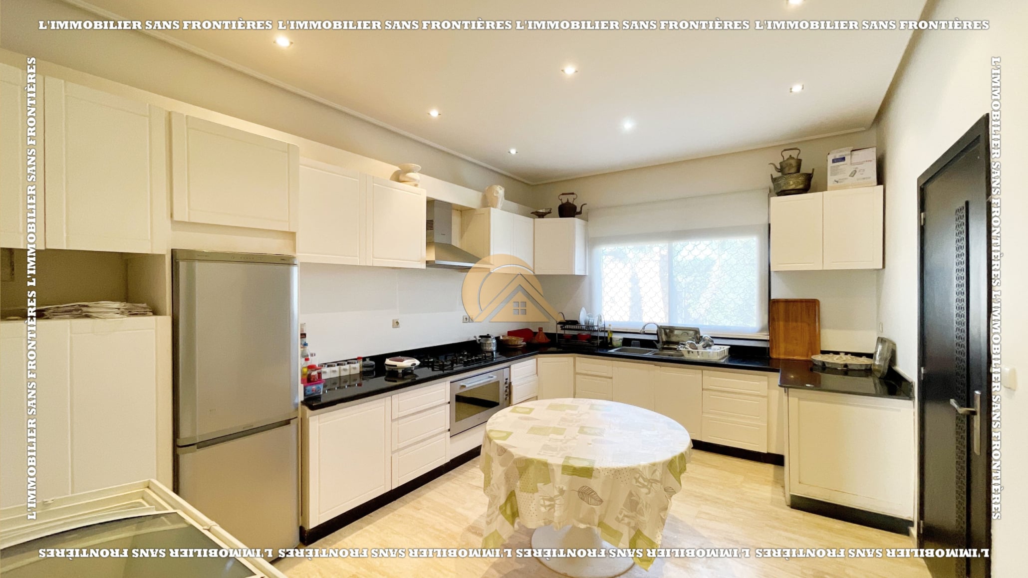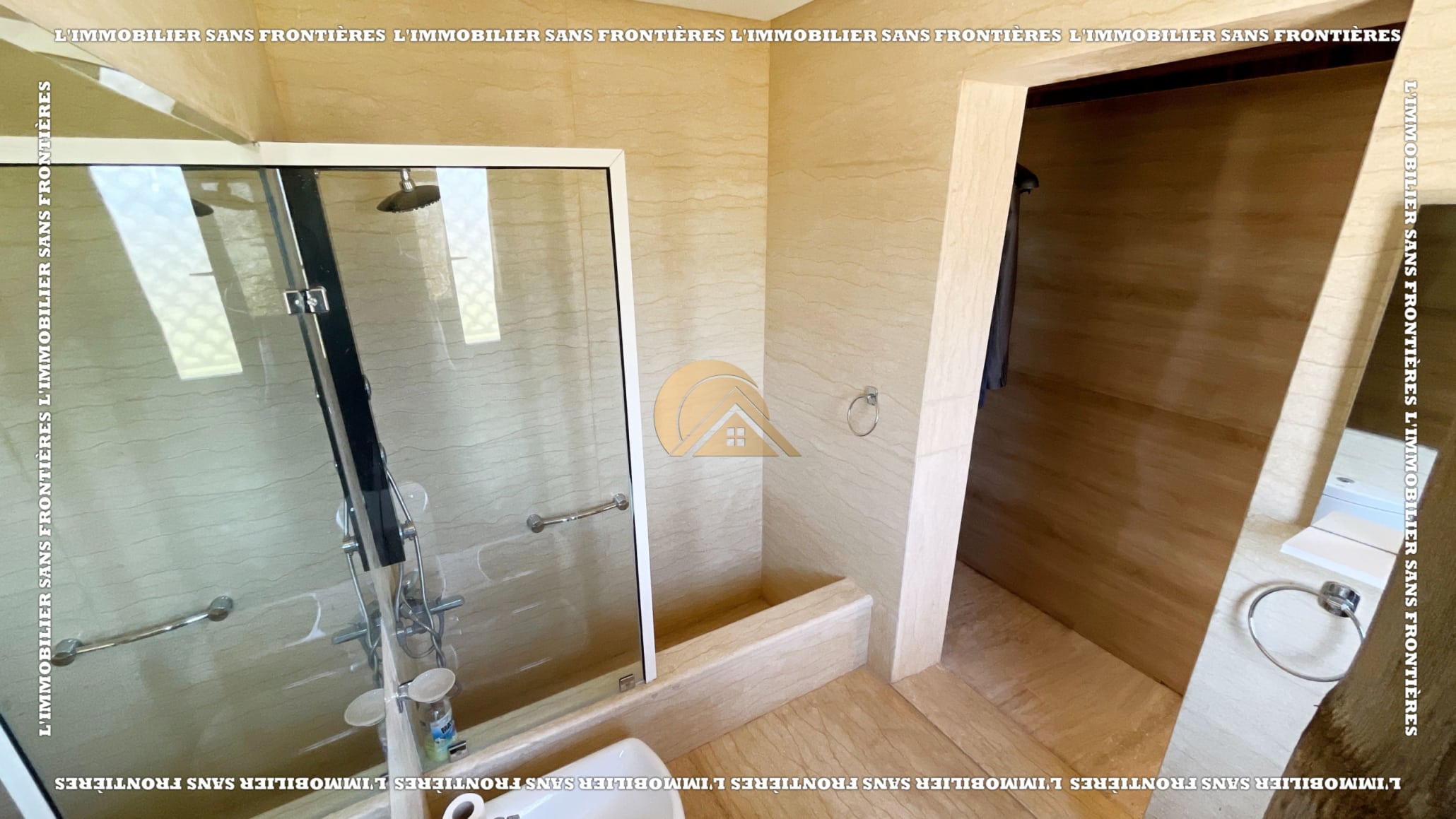 Ground floor: European living room – Moroccan living room – Guest toilet – Suite with bathroom, dressing room, fireplace, bay window, terrace access and AC – Office – Equipped kitchen – Laundry area