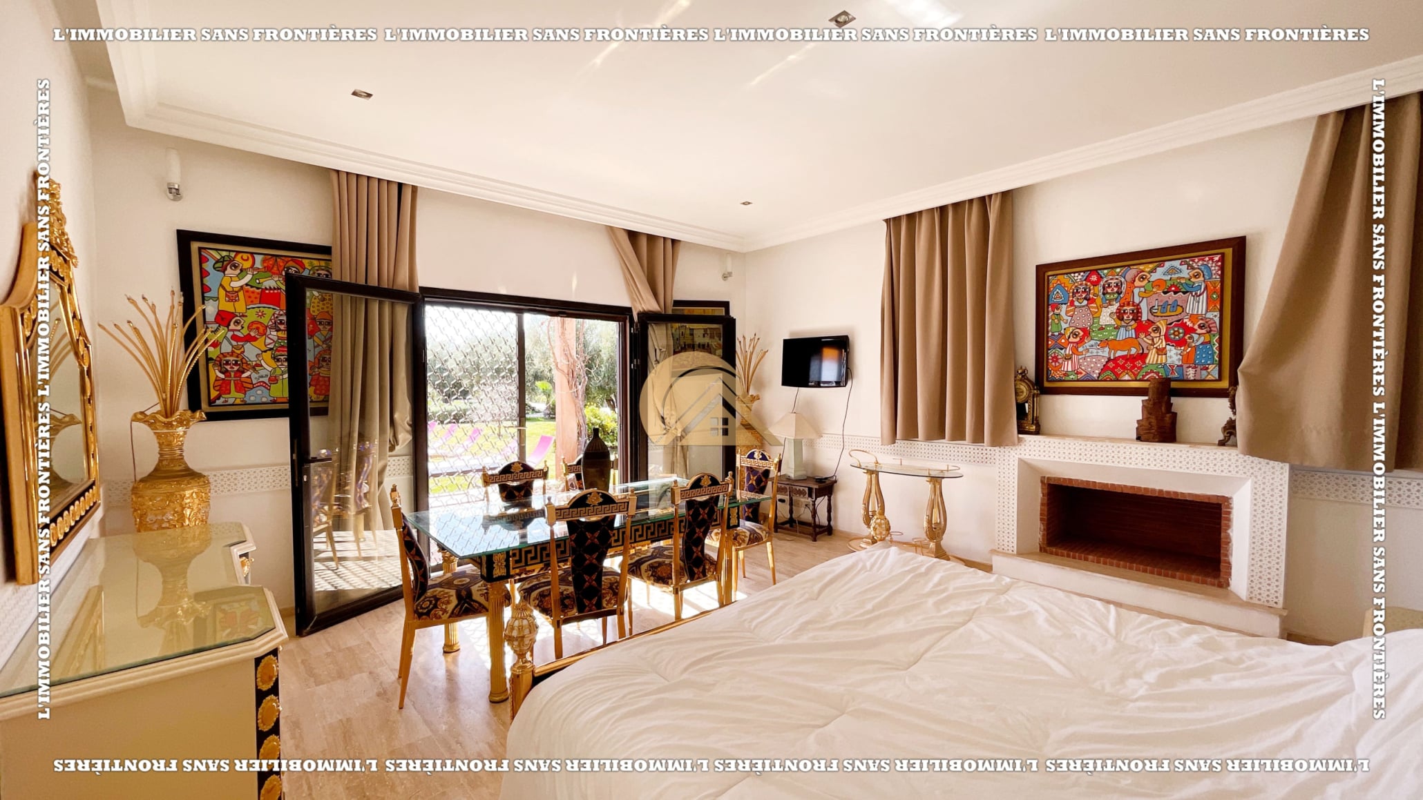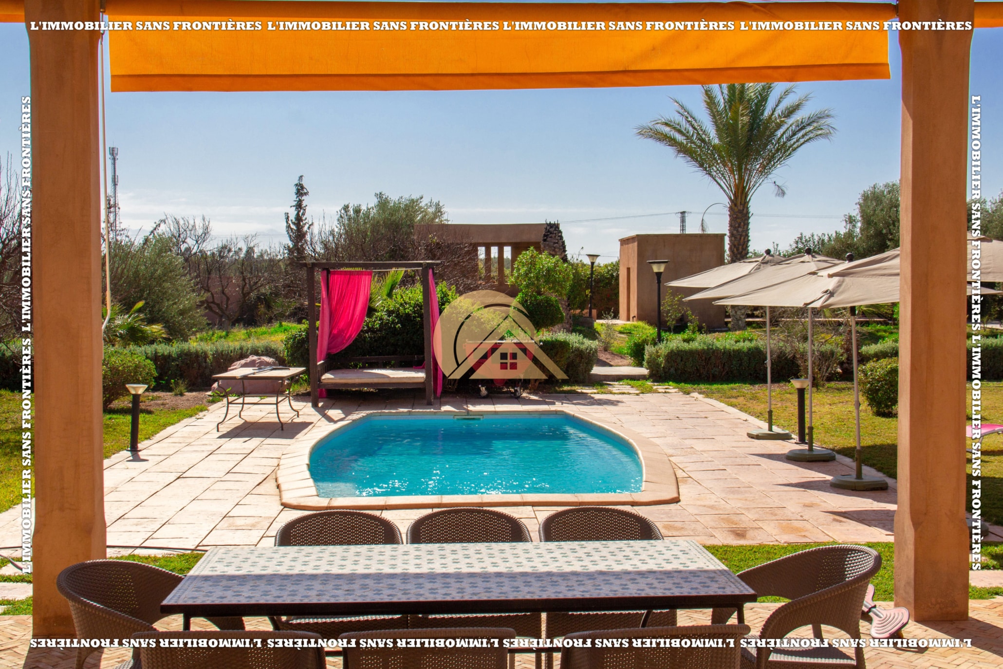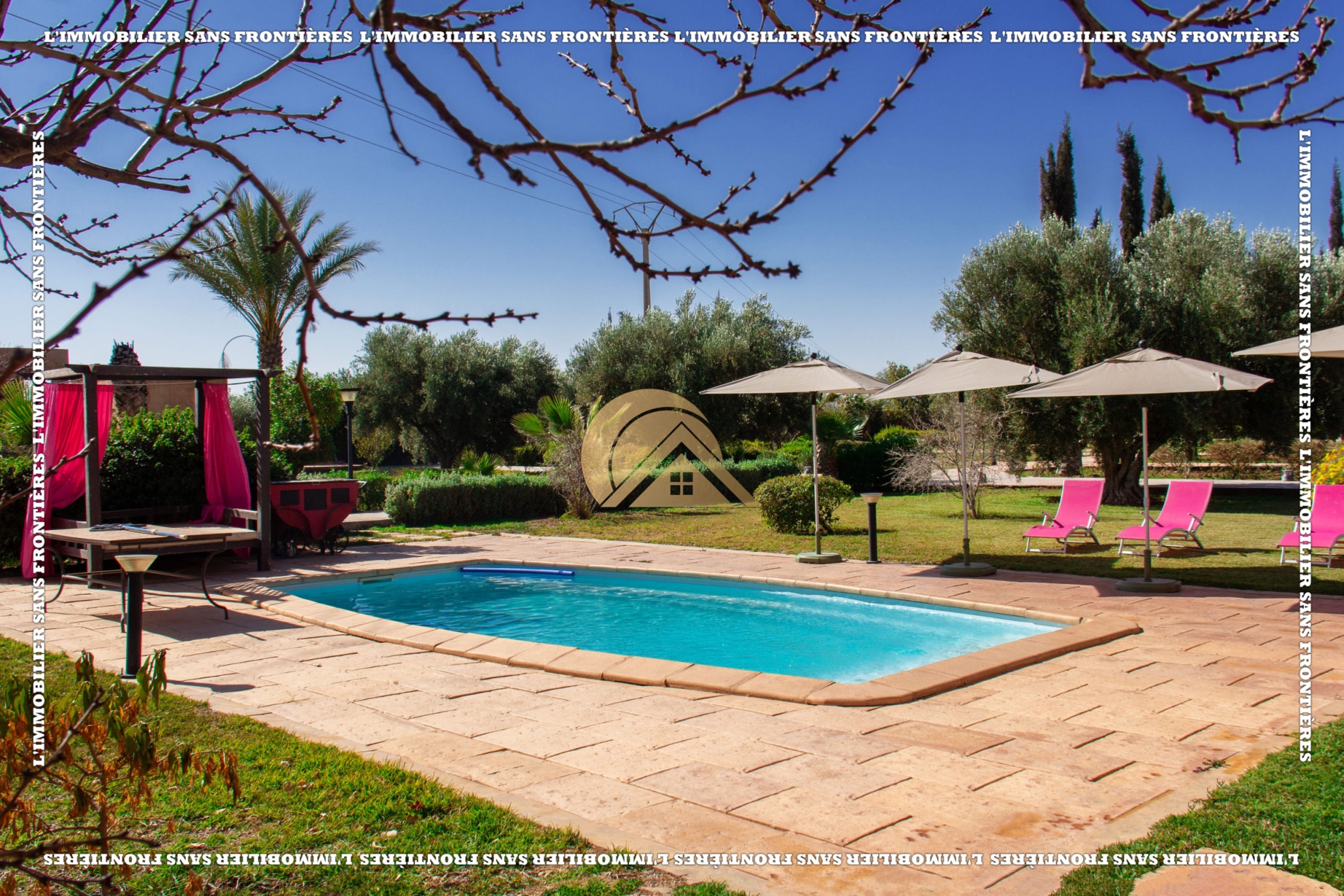 Real Estate Without Borders offers this furnished villa for rent on Route d’Agadir (Souihla) near Marrakech, with a private garden, a private pool (3×8 meters), and stated security equipment (intercom, cameras). Stated area: 1 hectare.