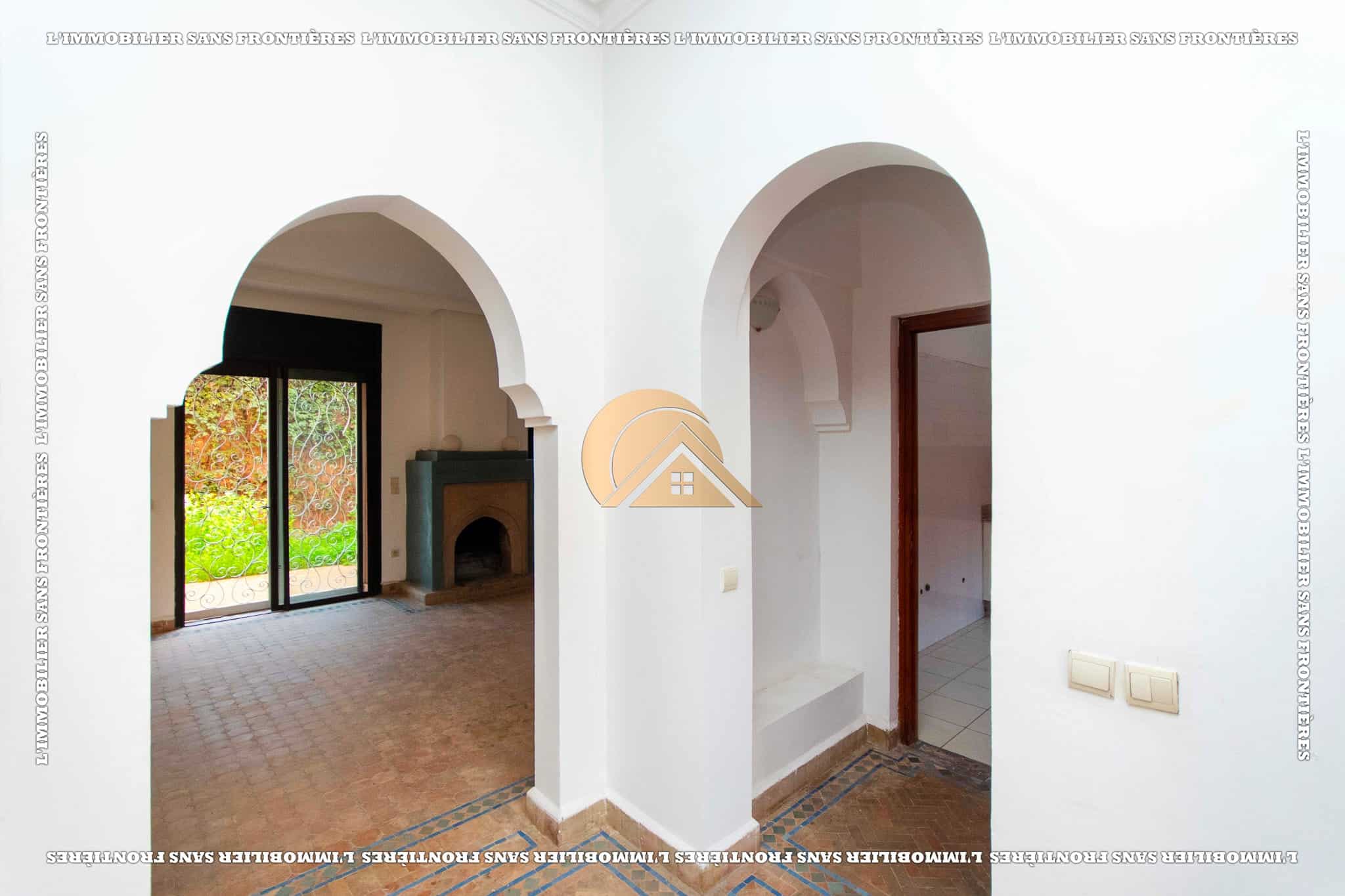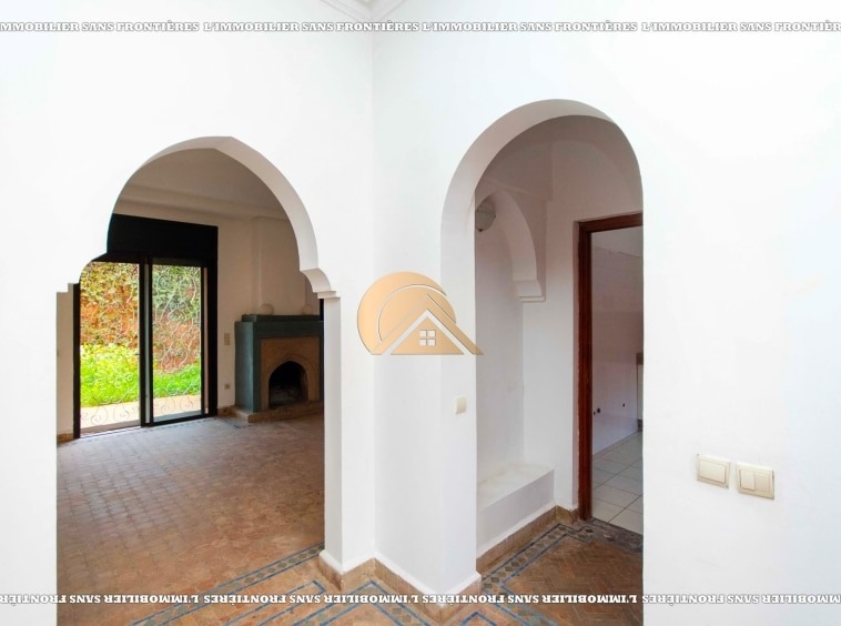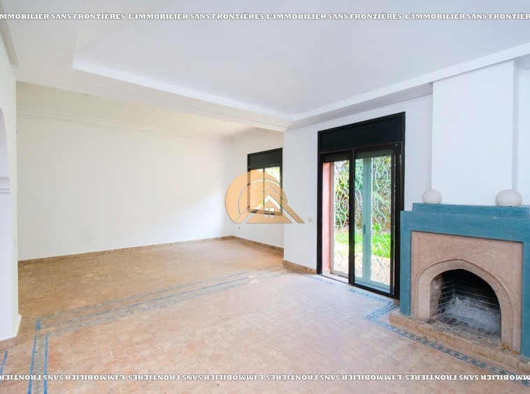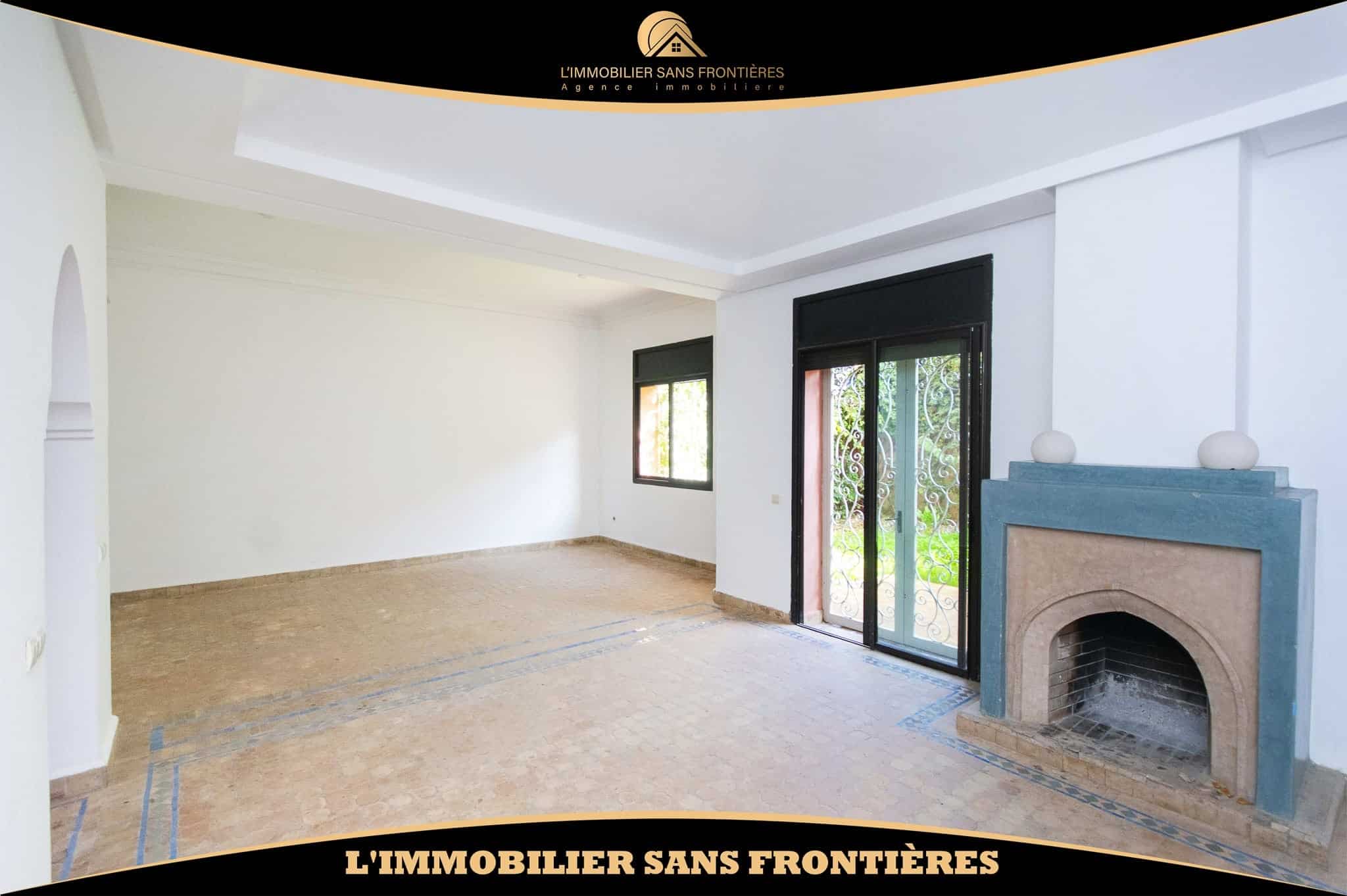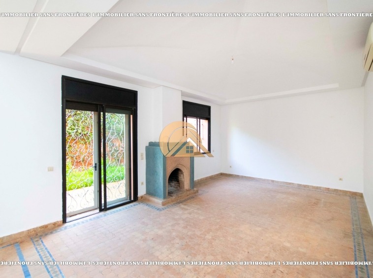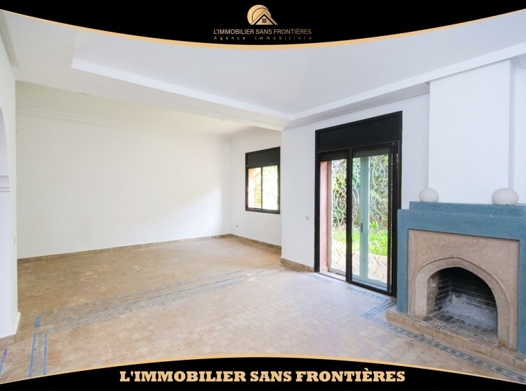 Real Estate Without Borders offers this unfurnished villa for rent in Targa, Marrakech, within a secure residence. It includes a private garden and spaces spread over two levels, with a fireplace, bay window and a terrace. Conditions required: 1 month’s rent and 2 months’ deposit.