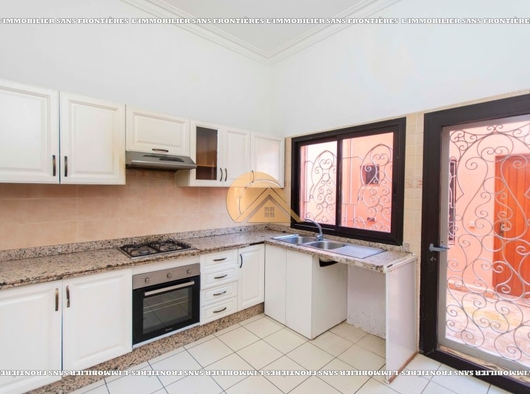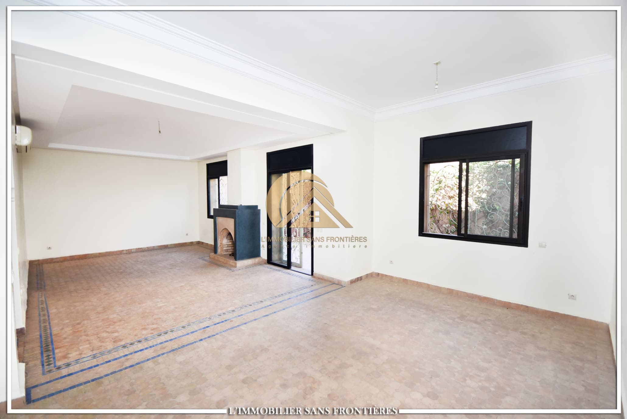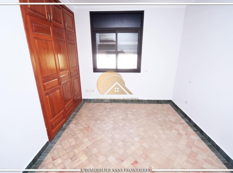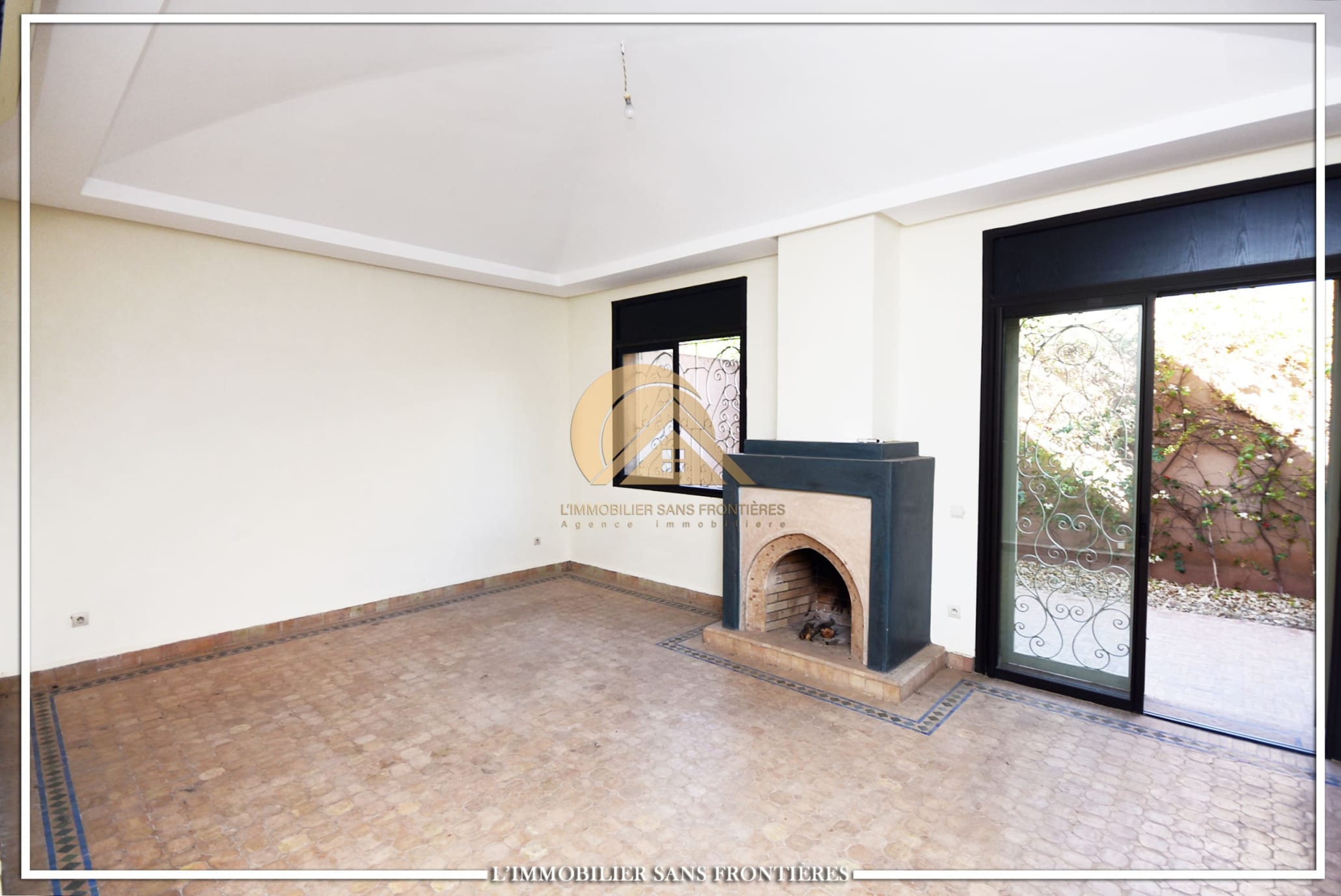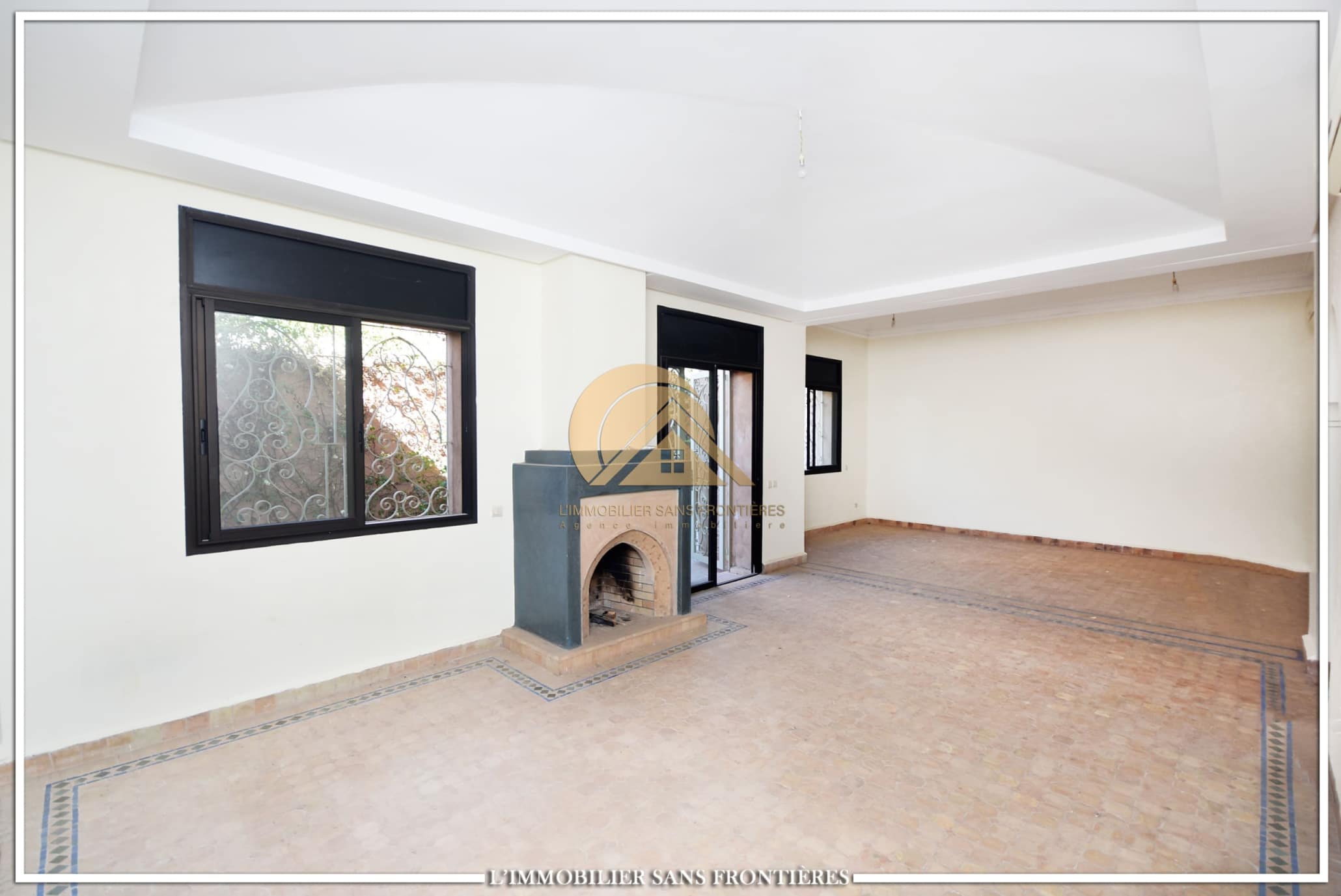 Real Estate Without Borders offers this unfurnished villa for rent in Targa, Marrakech, within a secure residence. It includes a private garden and spaces spread over two levels, with a fireplace, bay window and a terrace. Conditions required: 1 month’s rent and 2 months’ deposit.