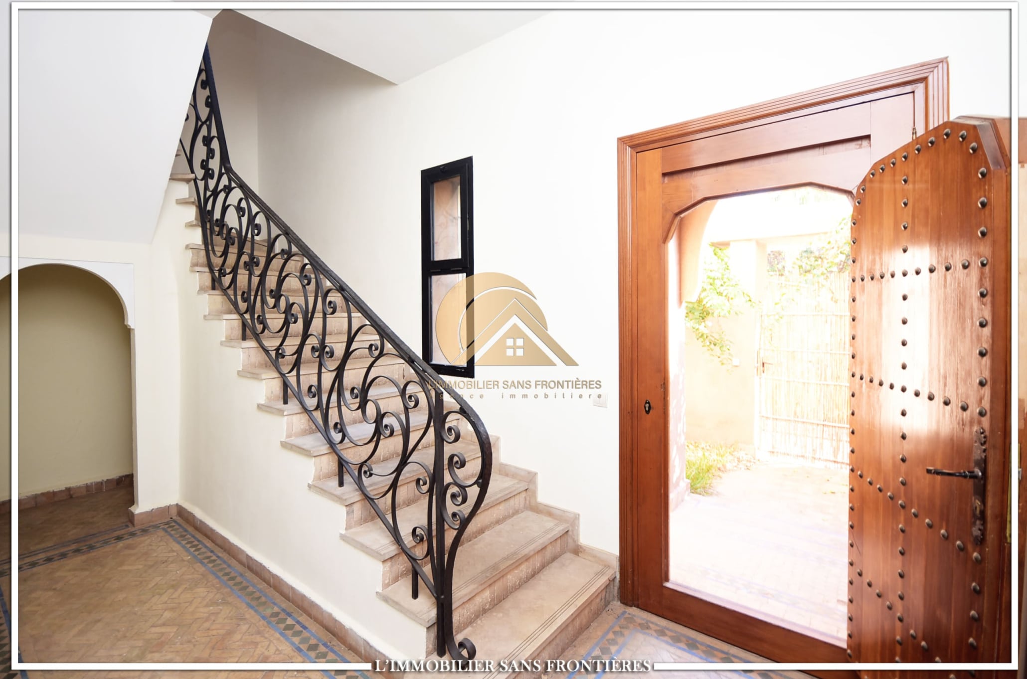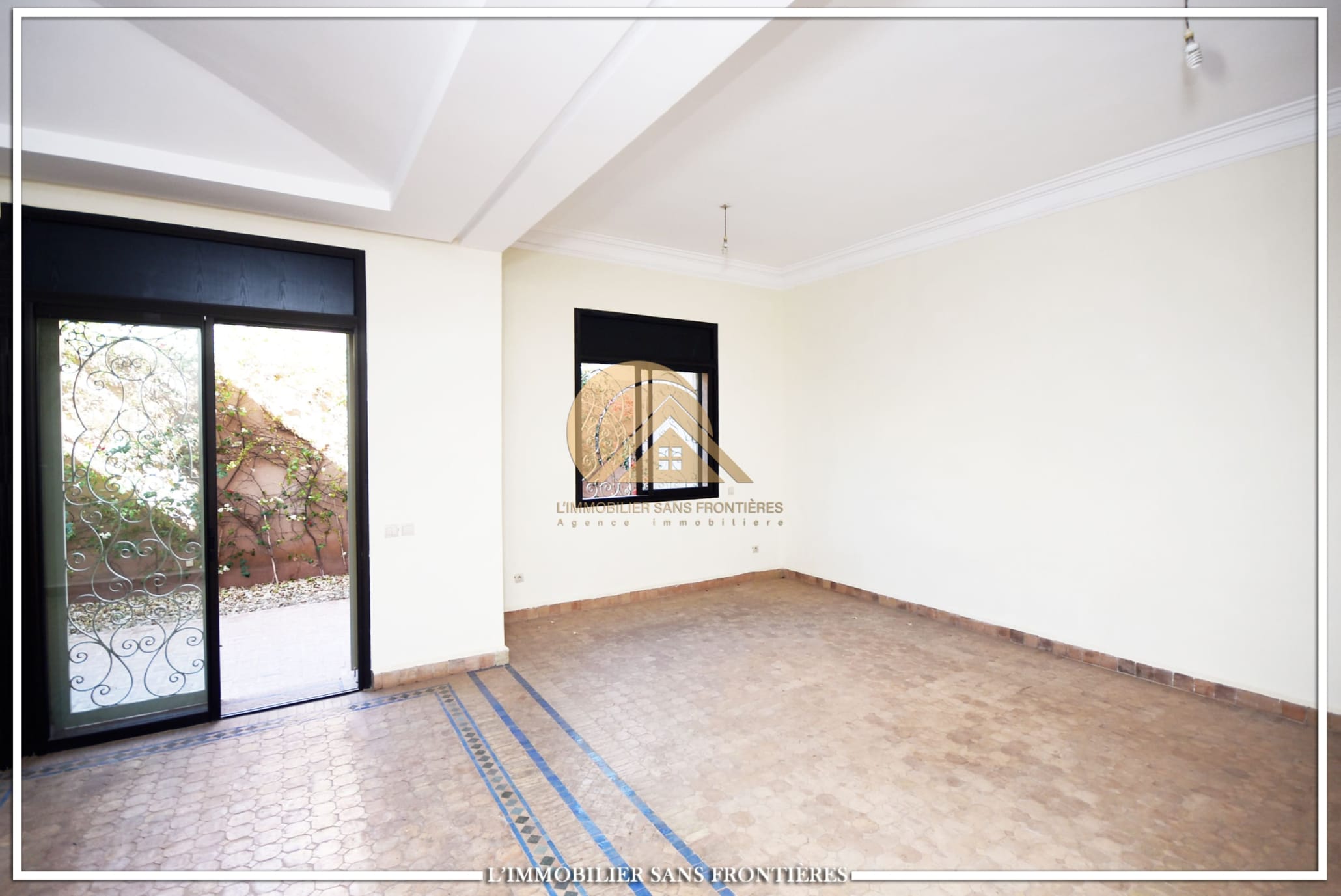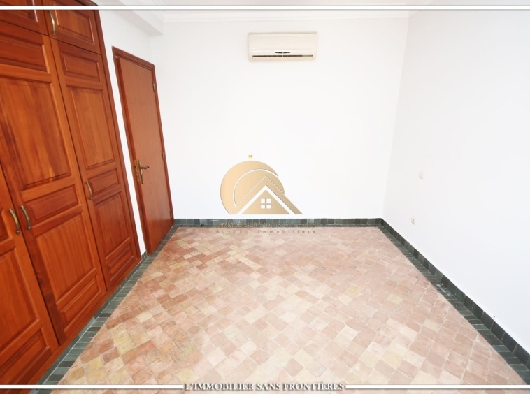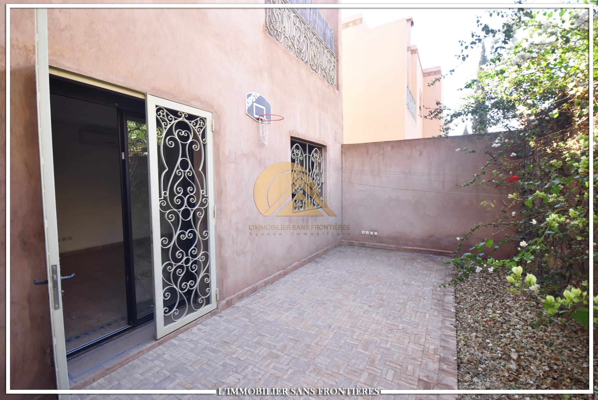 Real Estate Without Borders offers this unfurnished villa for rent in Targa, Marrakech, within a secure residence. It includes a private garden and spaces spread over two levels, with a fireplace, bay window and a terrace. Conditions required: 1 month’s rent and 2 months’ deposit.