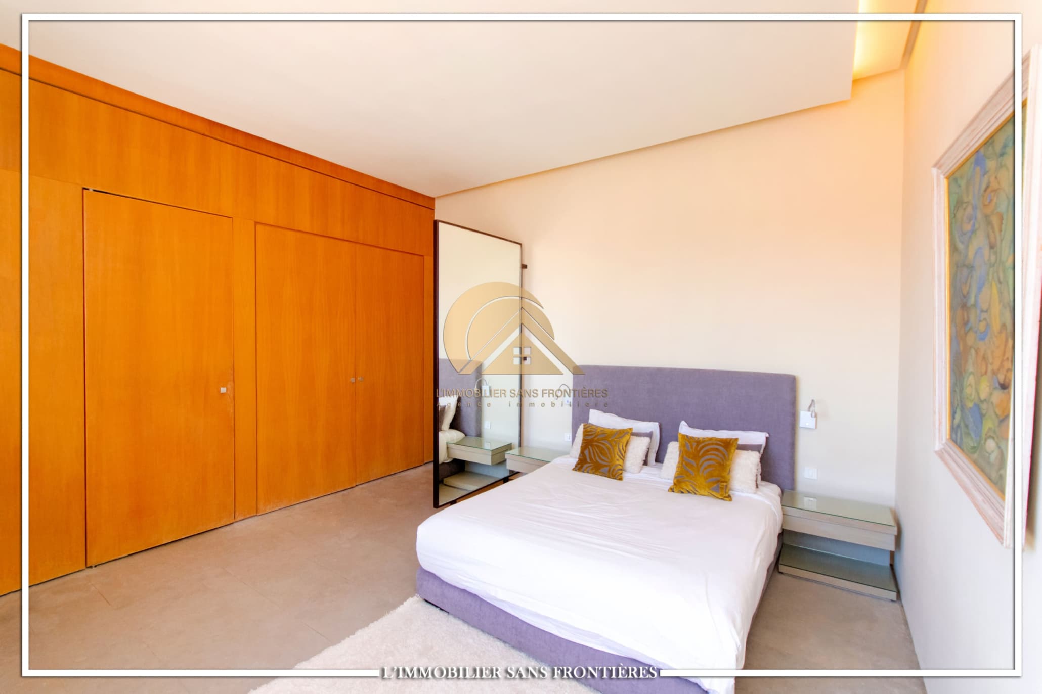 Real Estate Without Borders offers this furnished villa for sale in La Palmeraie, Marrakech, located in Bab Atlas area. The provided details mention a view of the Atlas Mountains, a large private pool and a landscaped garden.