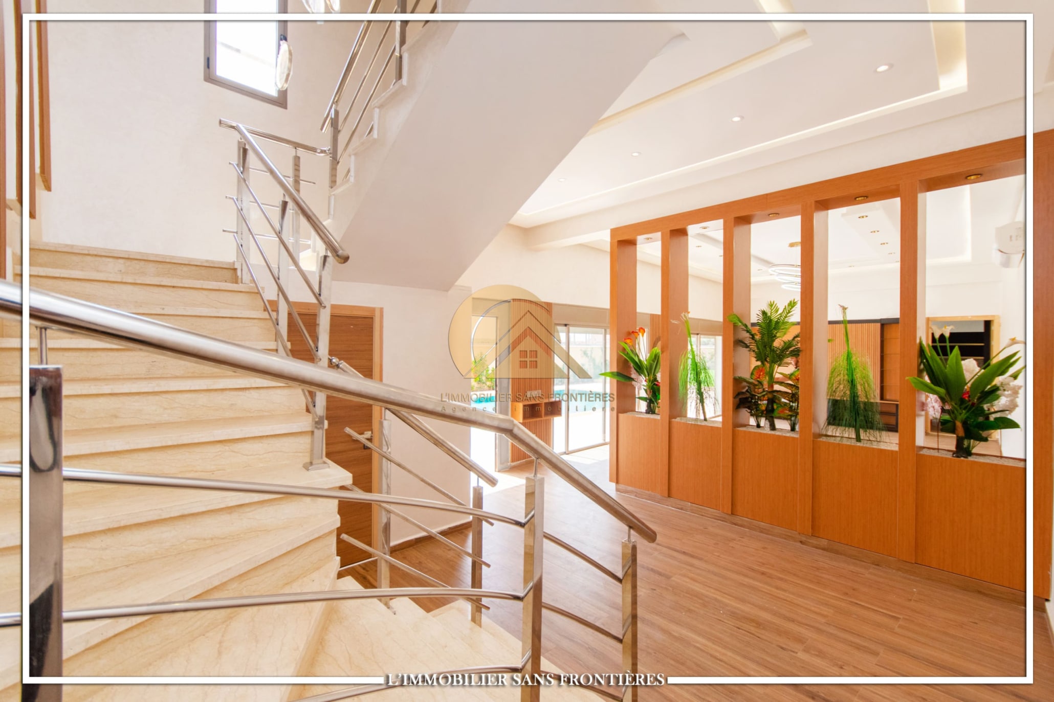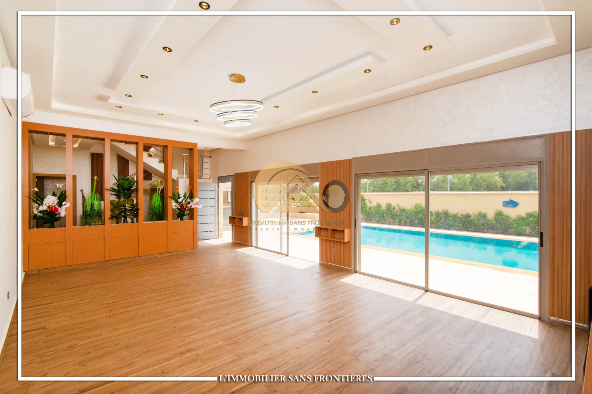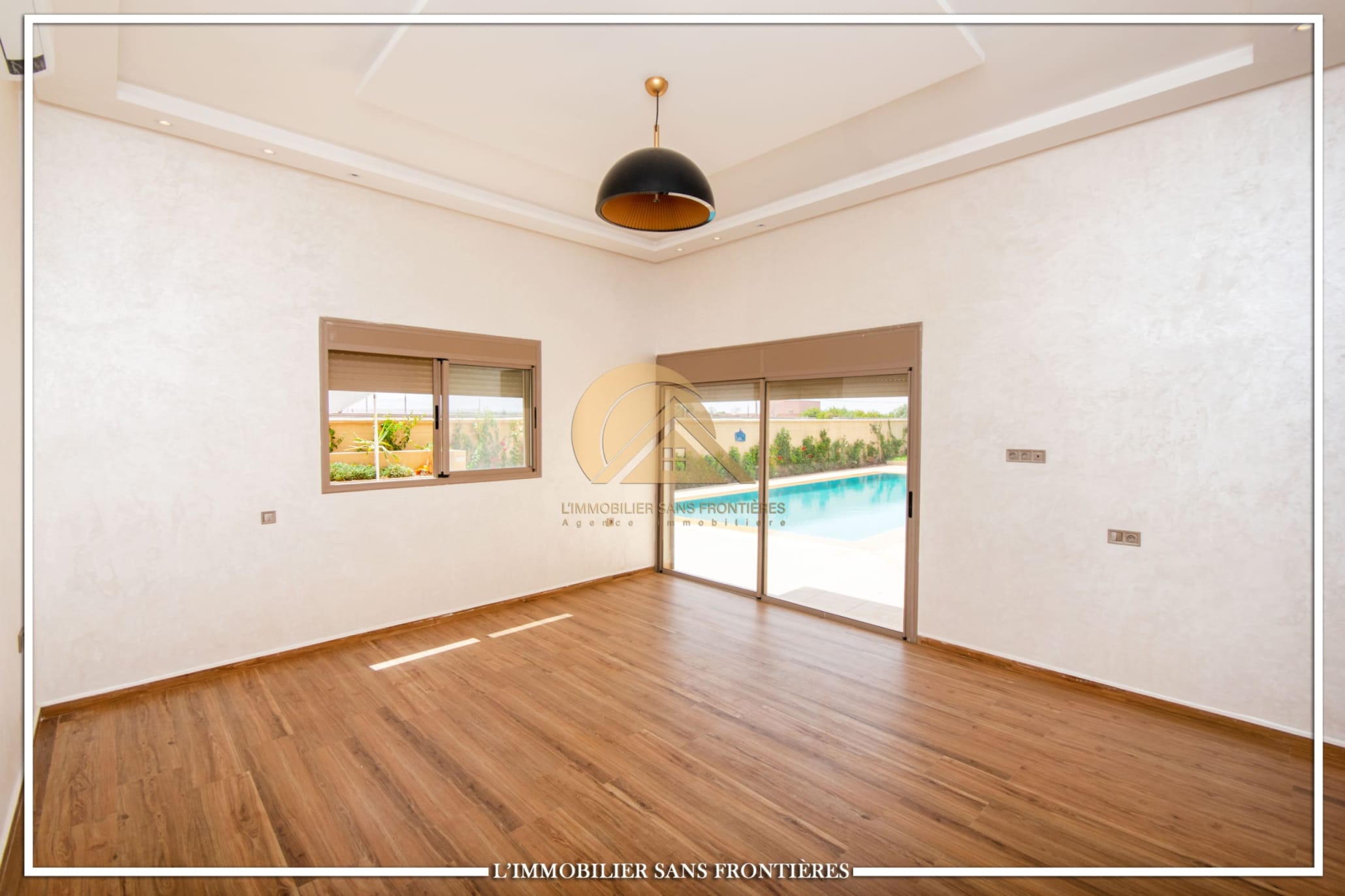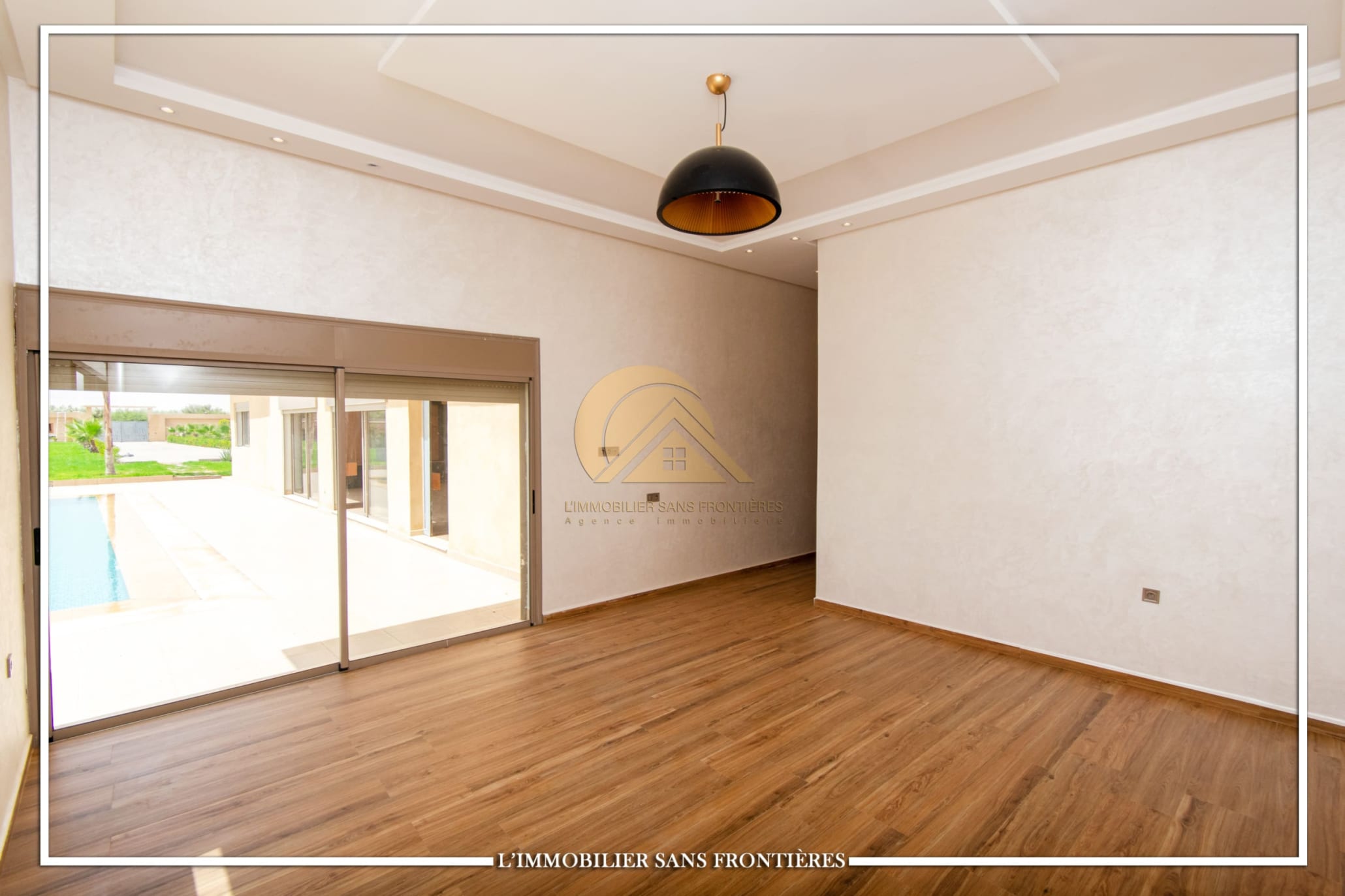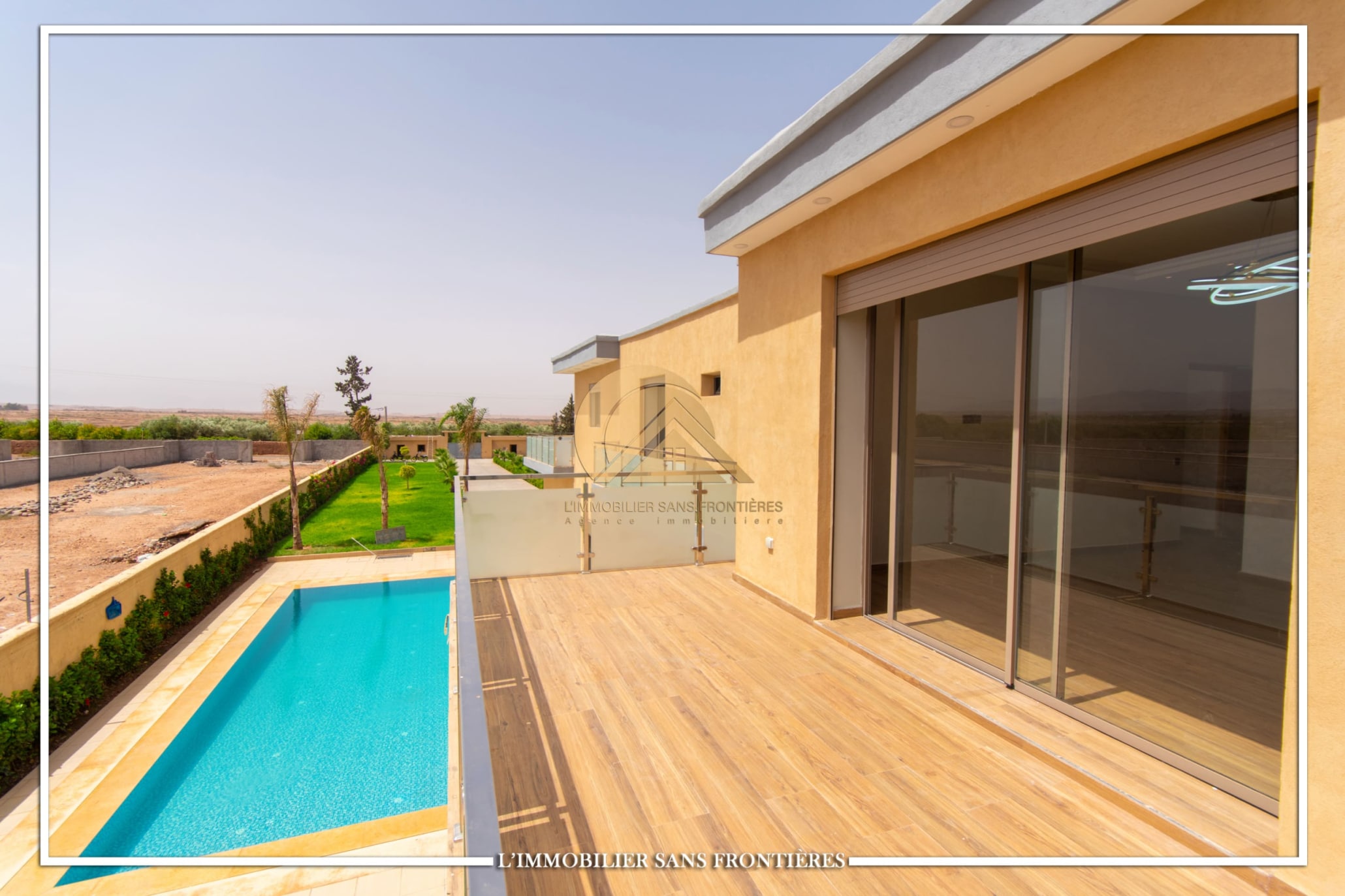 Real Estate Without Borders offers this unfurnished villa for sale on Route d’Amizmiz, 14 km from Chrifia, with no track access. The text mentions 4 facades, no overlooking, a garden and a private pool.