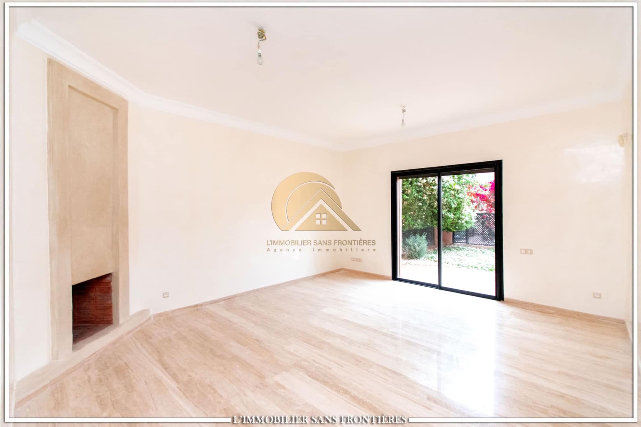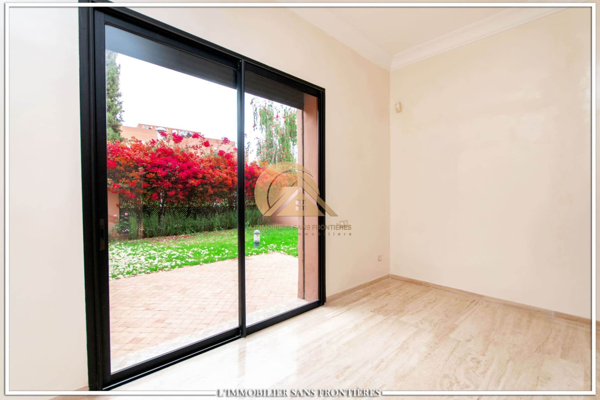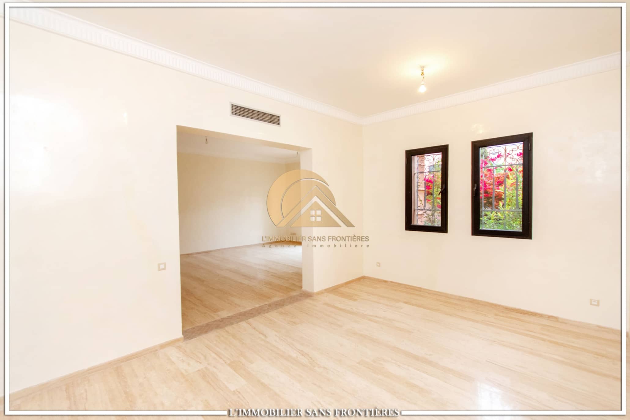 Real Estate Without Borders offers this unfurnished villa for sale on Route de Fès in Marrakech, within a residence with a shared garden and a shared pool, plus a private garden. The property is described as having no overlooking and interiors stated as bright thanks to bay windows.