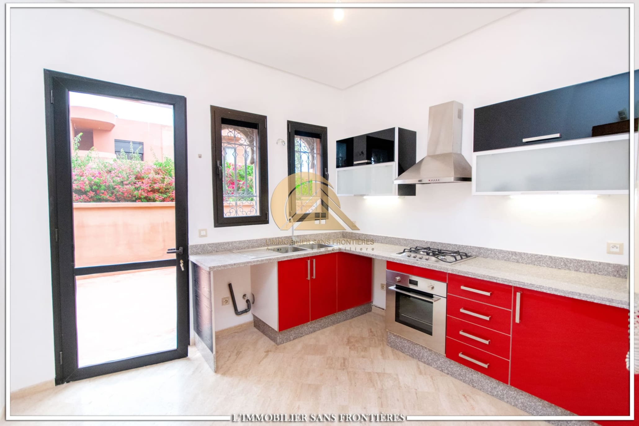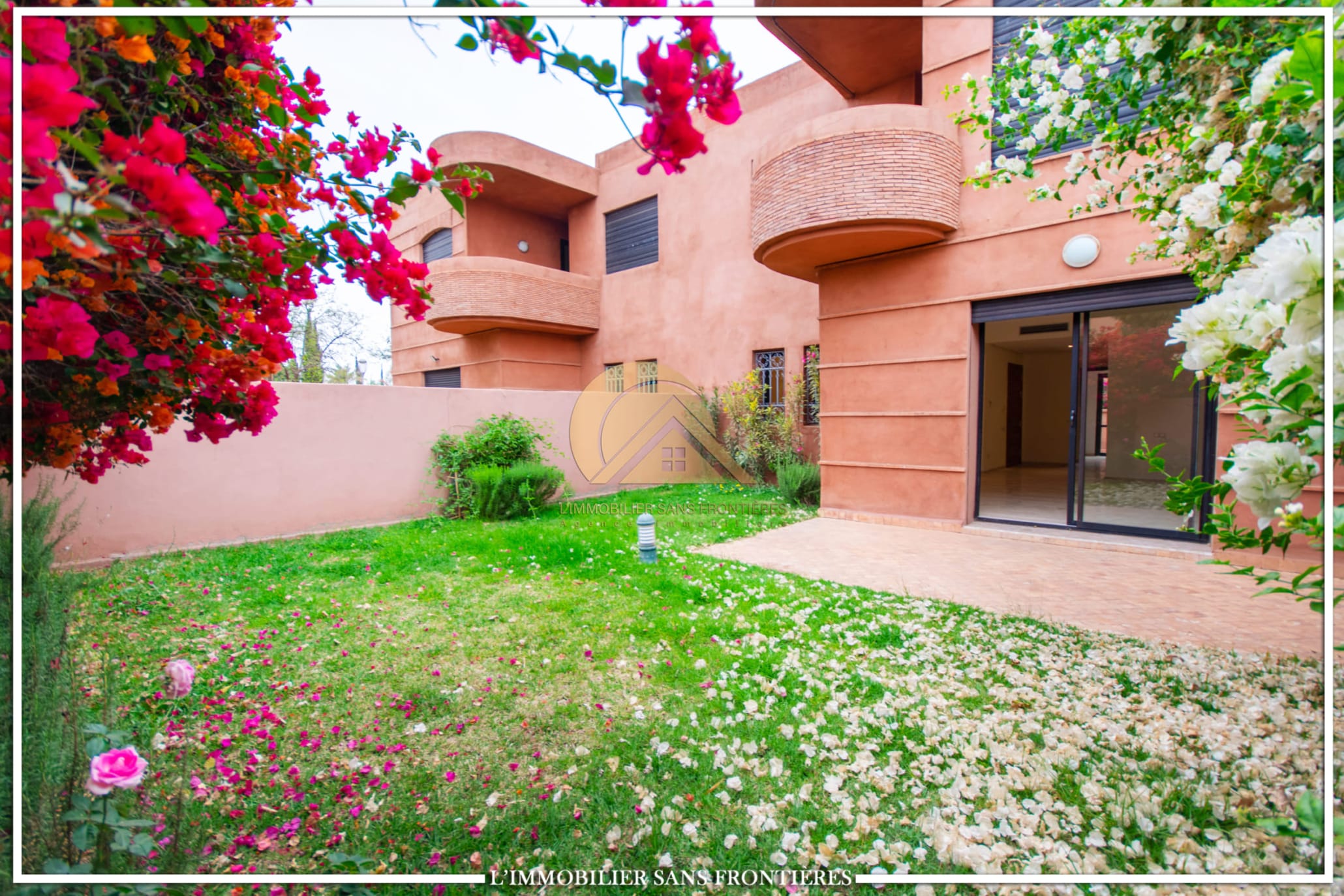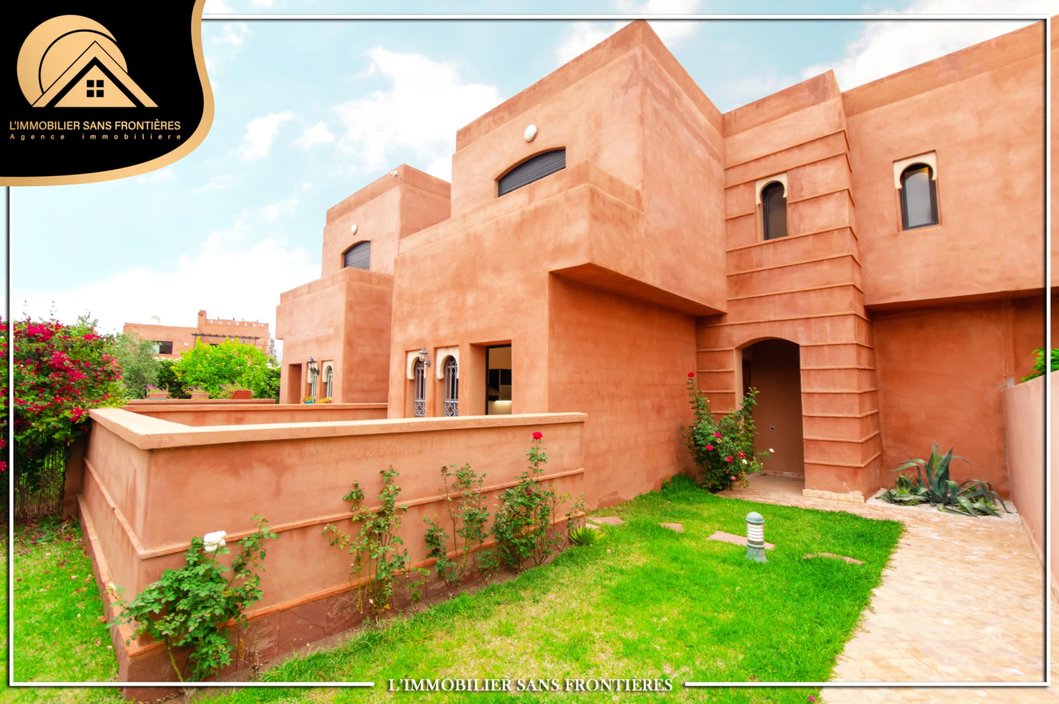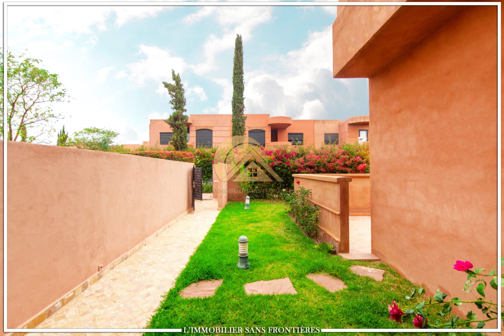 Real Estate Without Borders offers this unfurnished villa for sale on Route de Fès in Marrakech, within a residence with a shared garden and a shared pool, plus a private garden. The property is described as having no overlooking and interiors stated as bright thanks to bay windows.