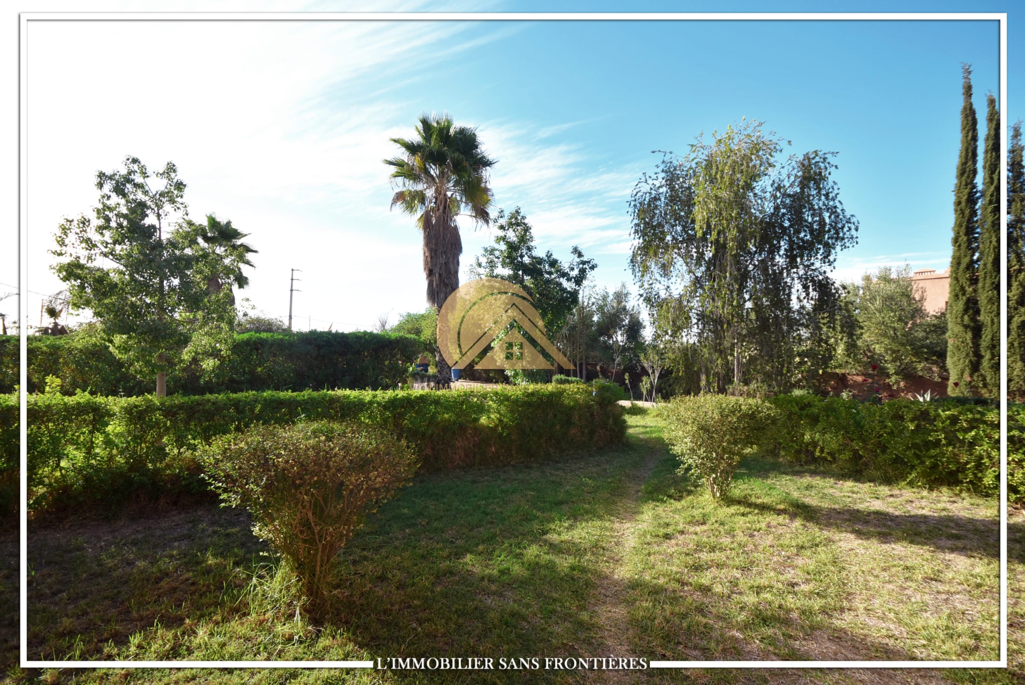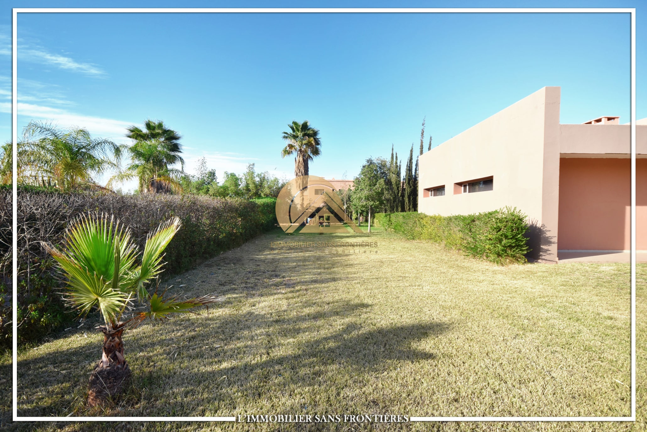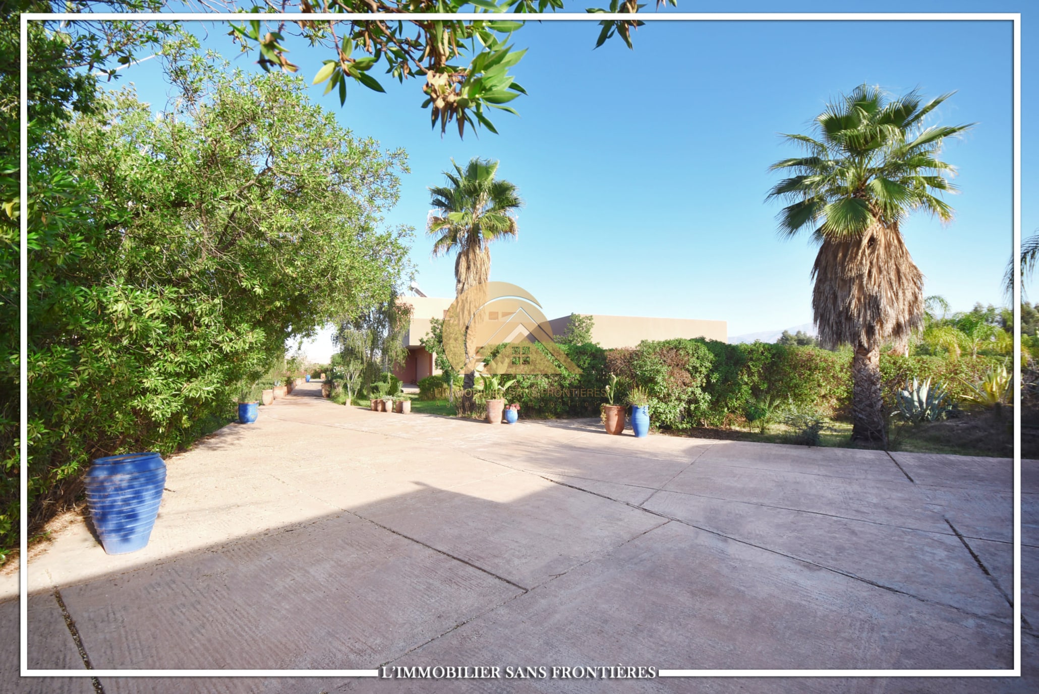 Real Estate Without Borders offers this unfurnished villa for sale on Sidi Abdellah Ghiat, Route Ourika km 21, Marrakech. The text mentions a single-level villa with a private pool and a landscaped private garden.