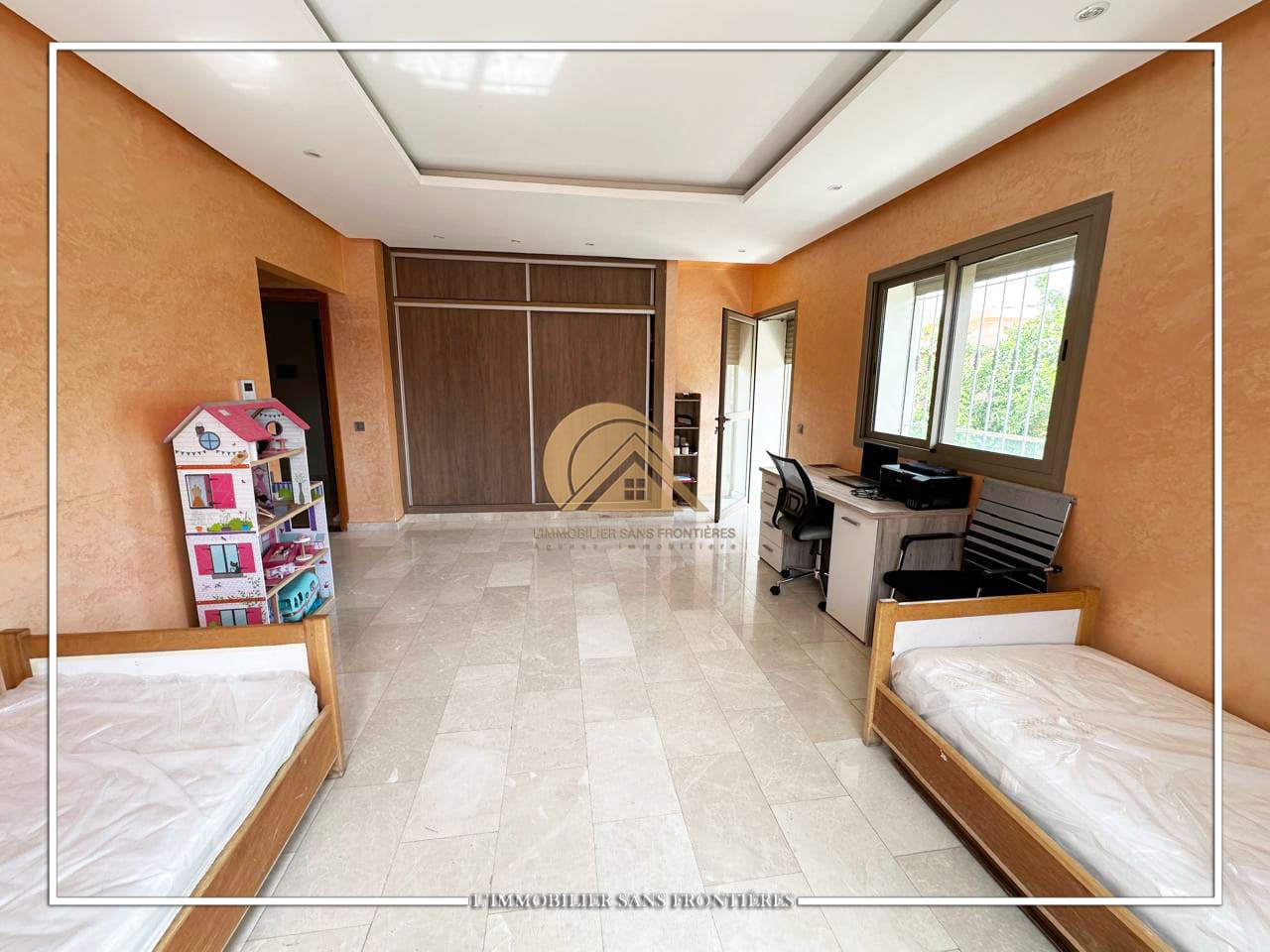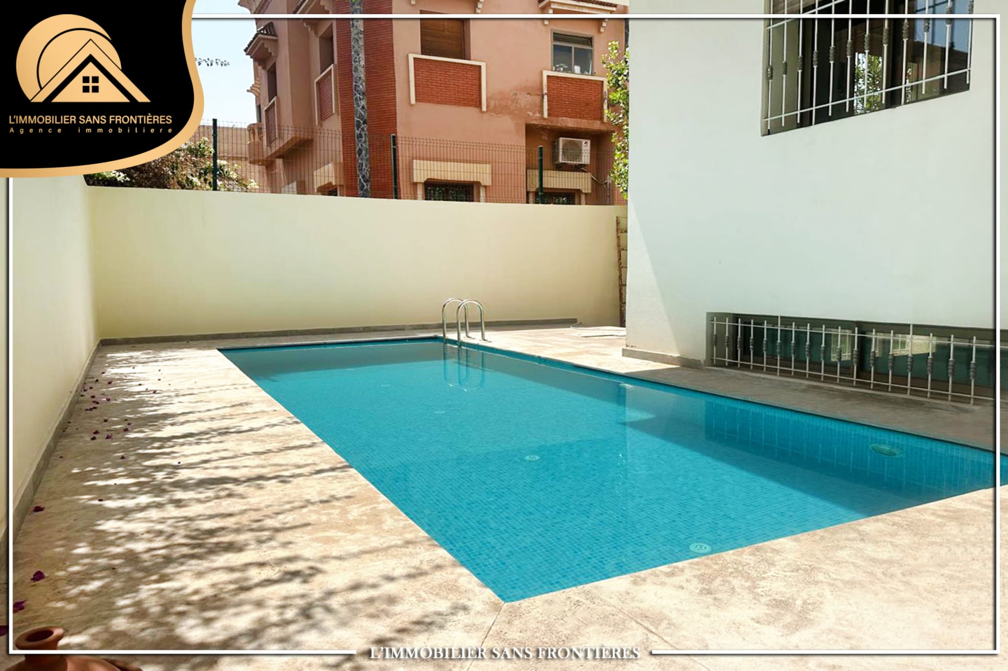Real Estate Without Borders offers this unfurnished villa for sale in Targa, Marrakech. The listing mentions a pool and a garden, with a multi-level layout.