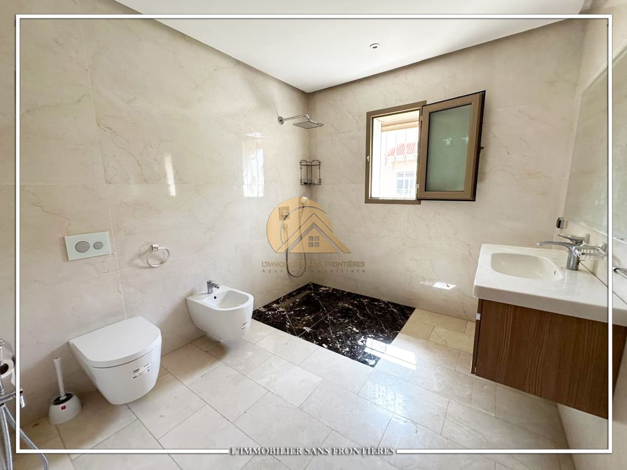 Ground floor: 2 living rooms – bedroom with wardrobe and A/C ; First floor: 4 suites with A/C, wardrobes and balconies ; Basement: fitted kitchen – living room – hammam