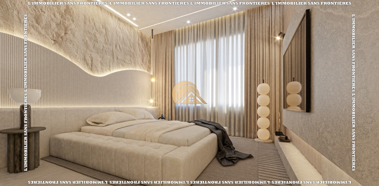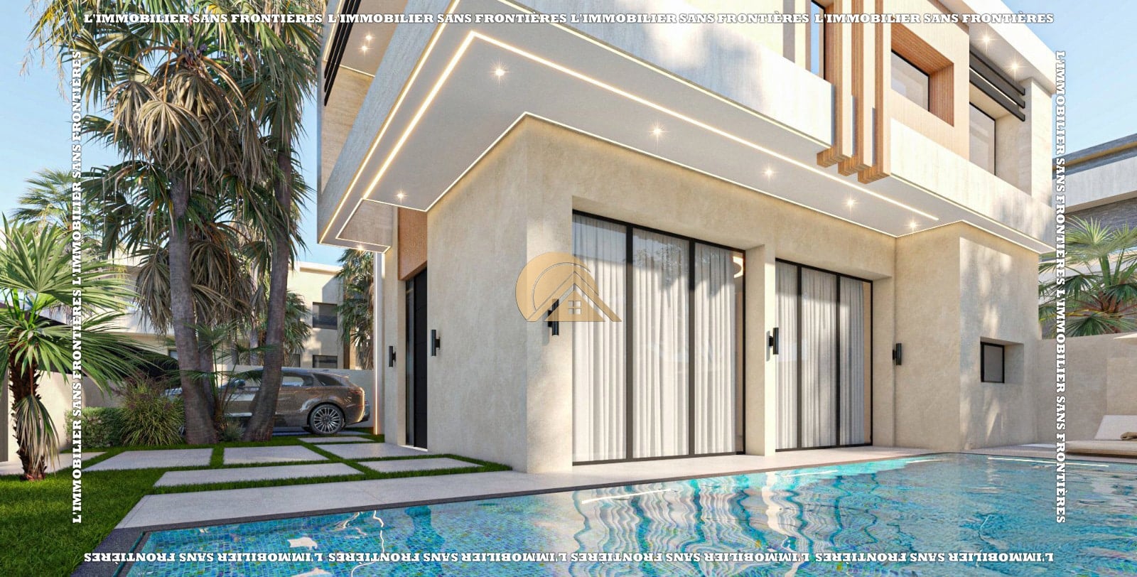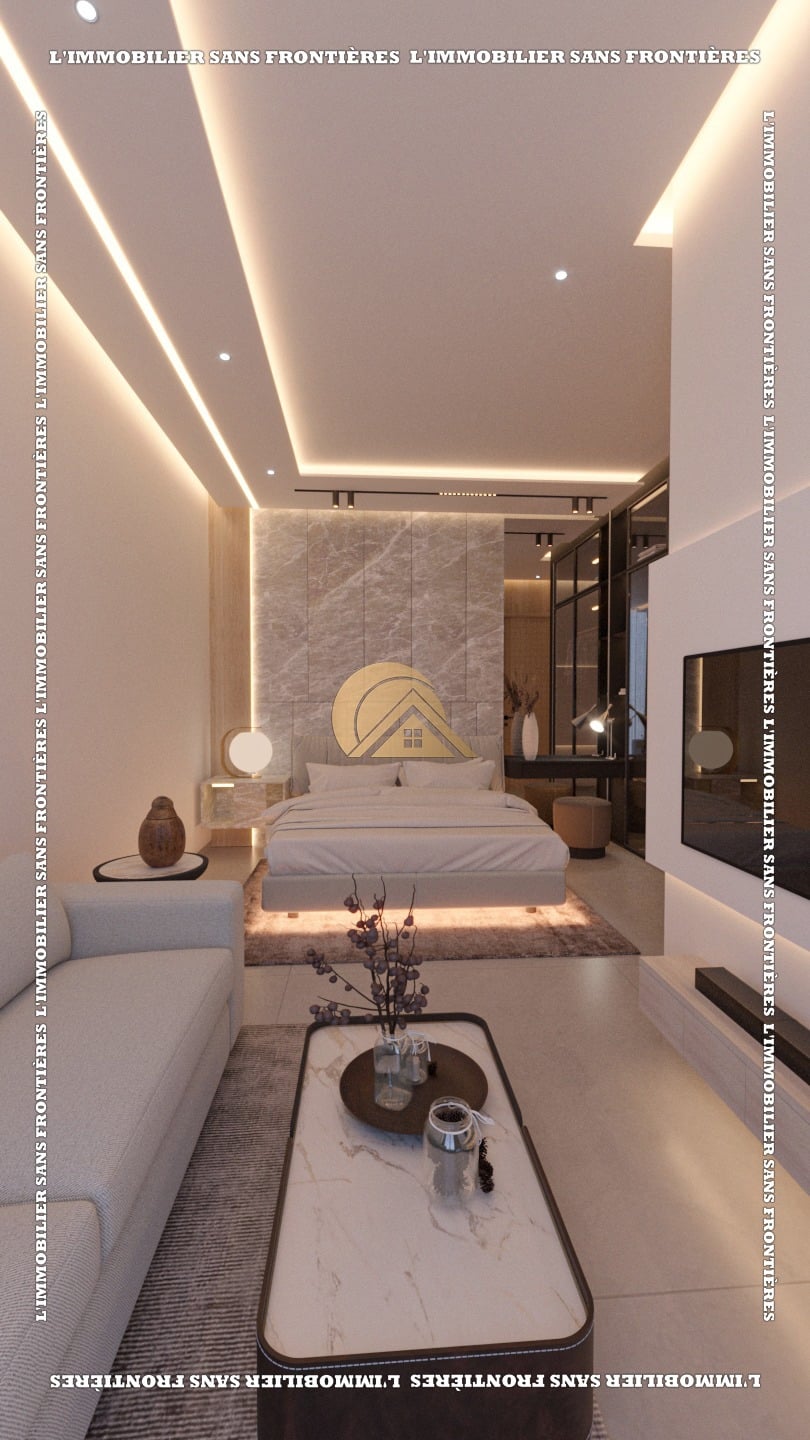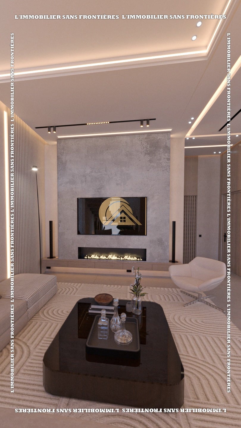 Real Estate Without Borders offers this unfurnished villa for sale on Route d’Amizmiz km 8, Marrakech, within a residence in a calm and pleasant setting. Titled and stated as under finishing, it is indicated as delivered fully finished. Land area: 300 m²; built area: 230 m², with a 4 m ceiling height on the ground floor.