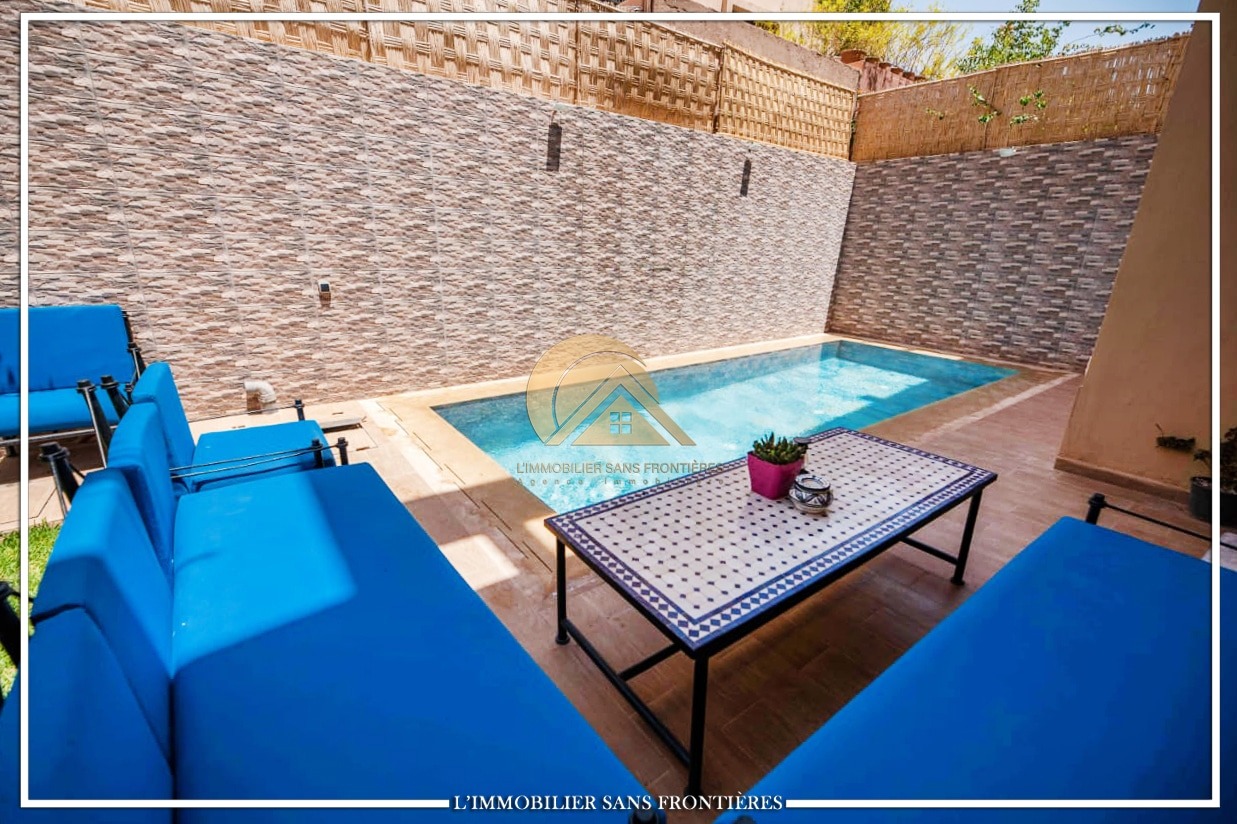 Real Estate Without Borders offers this furnished villa for sale in Targa, Marrakech, with a private pool and landscaped garden, close to amenities. The property is presented as being in a calm residential setting.