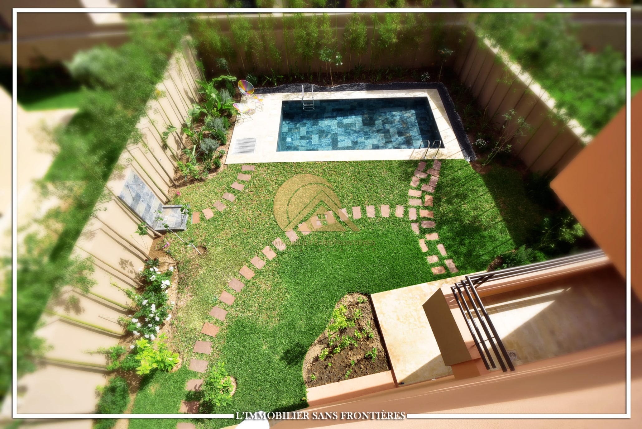 Highlights: piscine privée, jardin privé, caméras de surveillance.