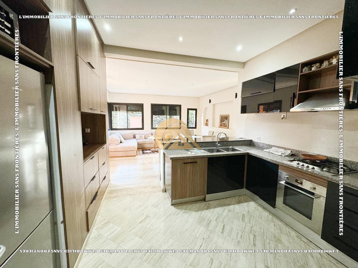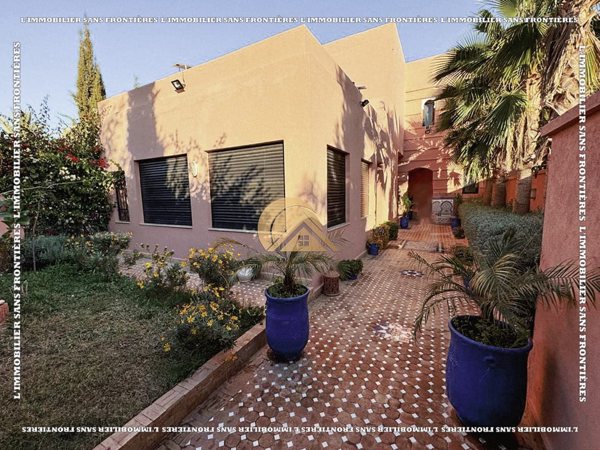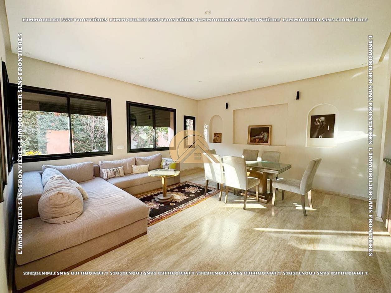 Real Estate Without Borders offers this furnished villa for rent on Route de Fes in Marrakech, in a calm residential environment. The residence is stated with a private garden, a communal garden and a communal pool. The stated size is 268 m², with 200 m² of living area.