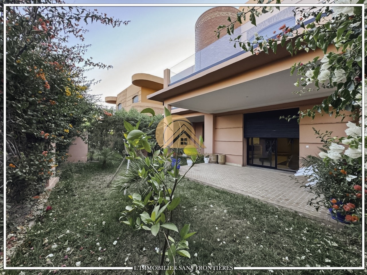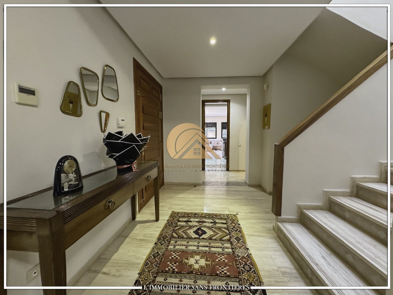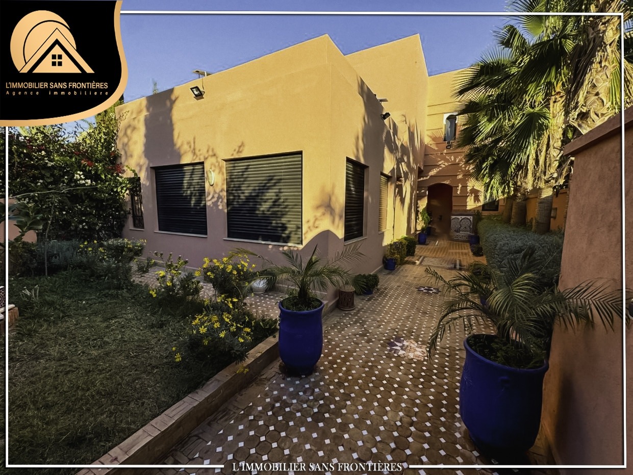 Real Estate Without Borders offers this furnished villa for rent on Route de Fes in Marrakech, in a calm residential environment. The residence is stated with a private garden, a communal garden and a communal pool. The stated size is 268 m², with 200 m² of living area.