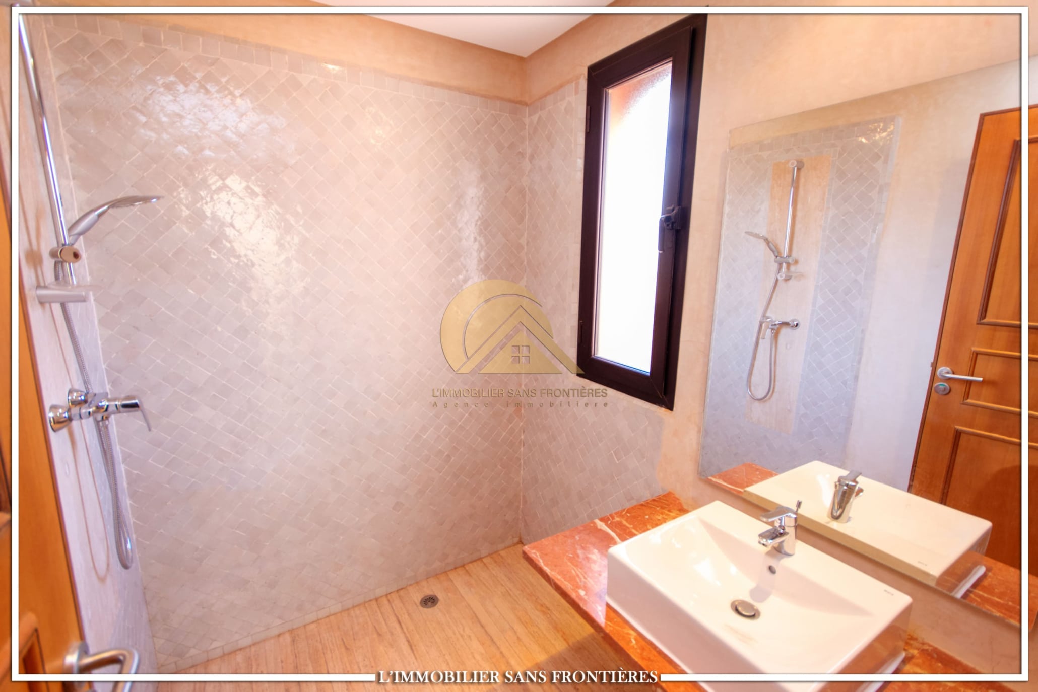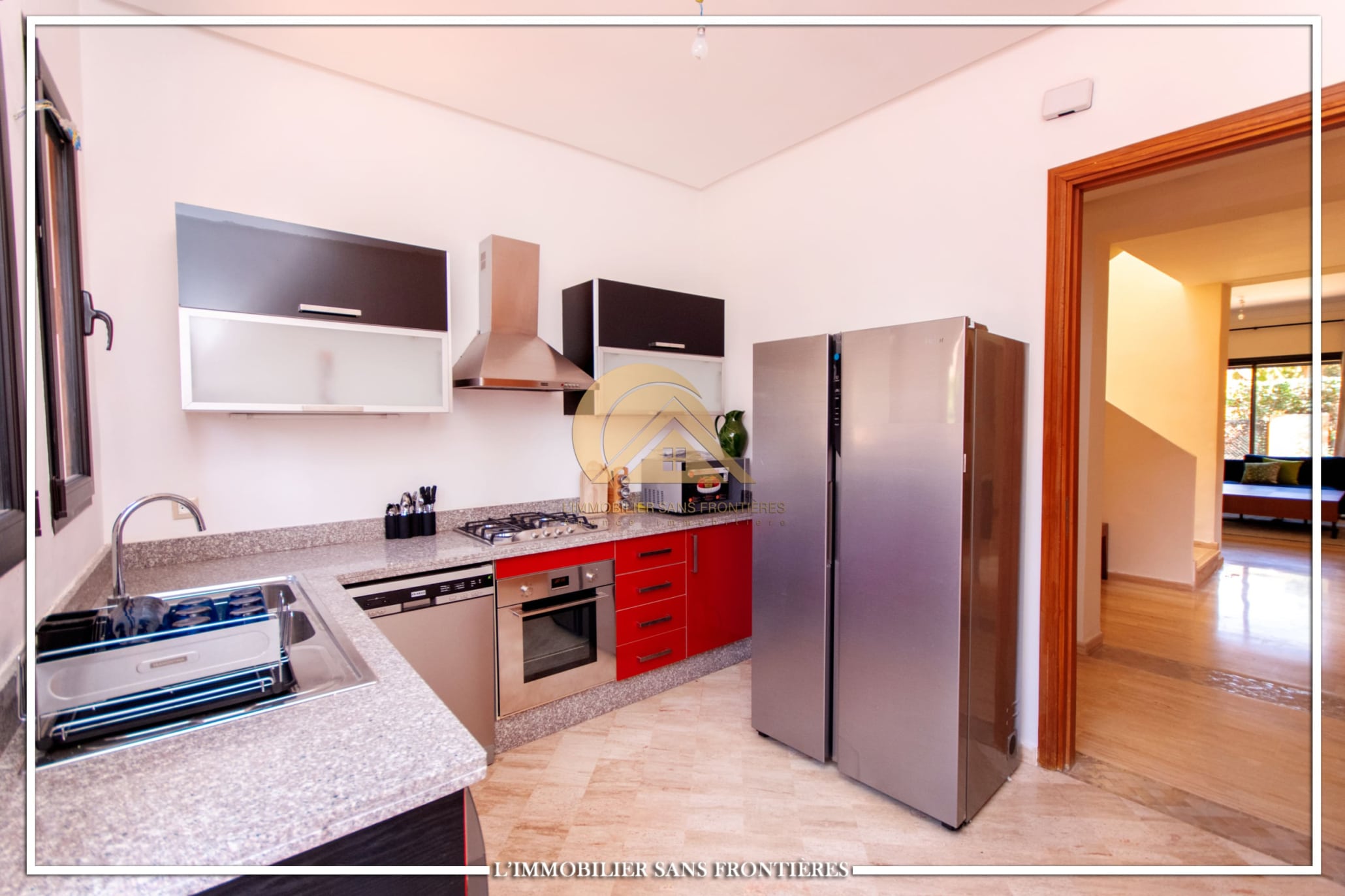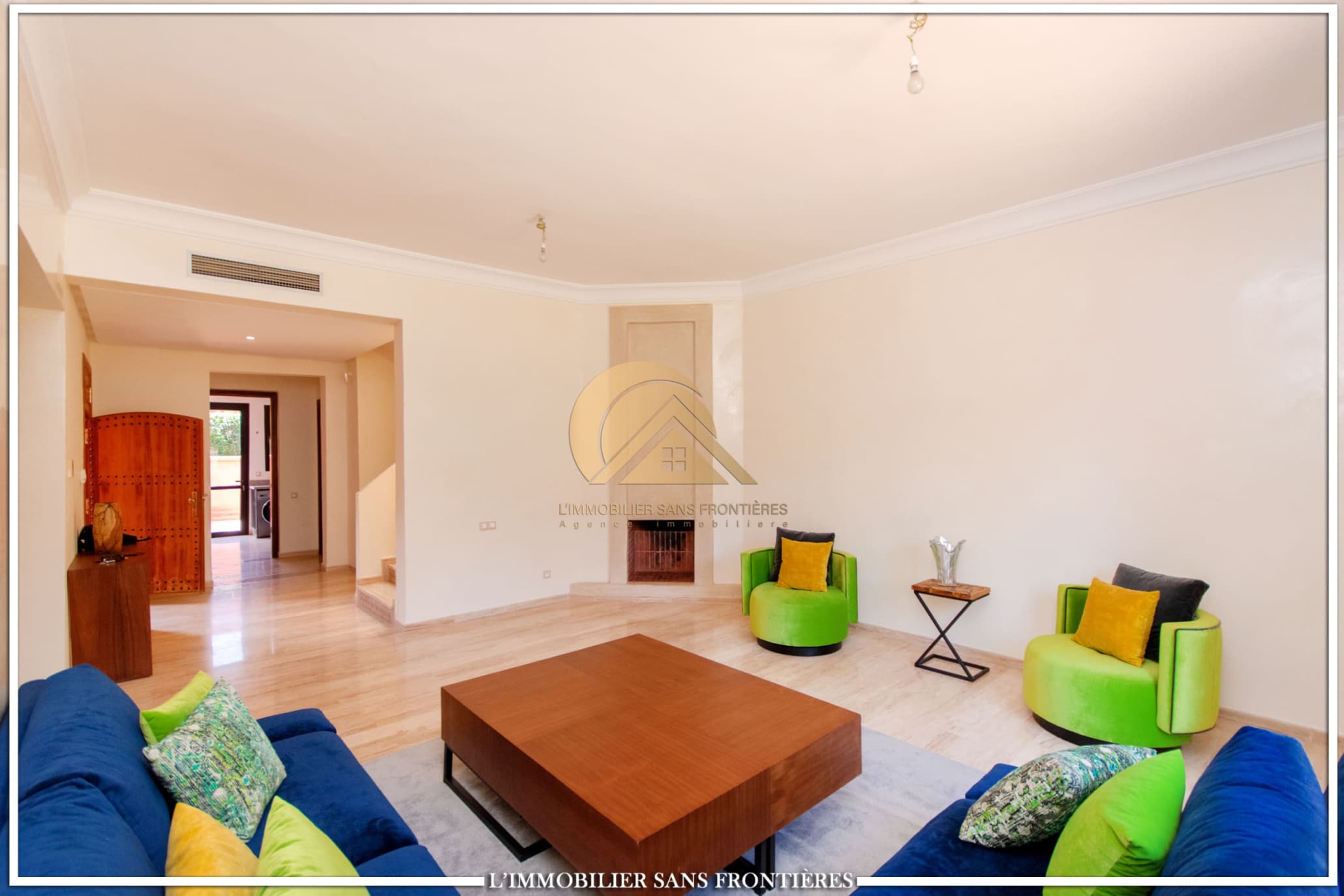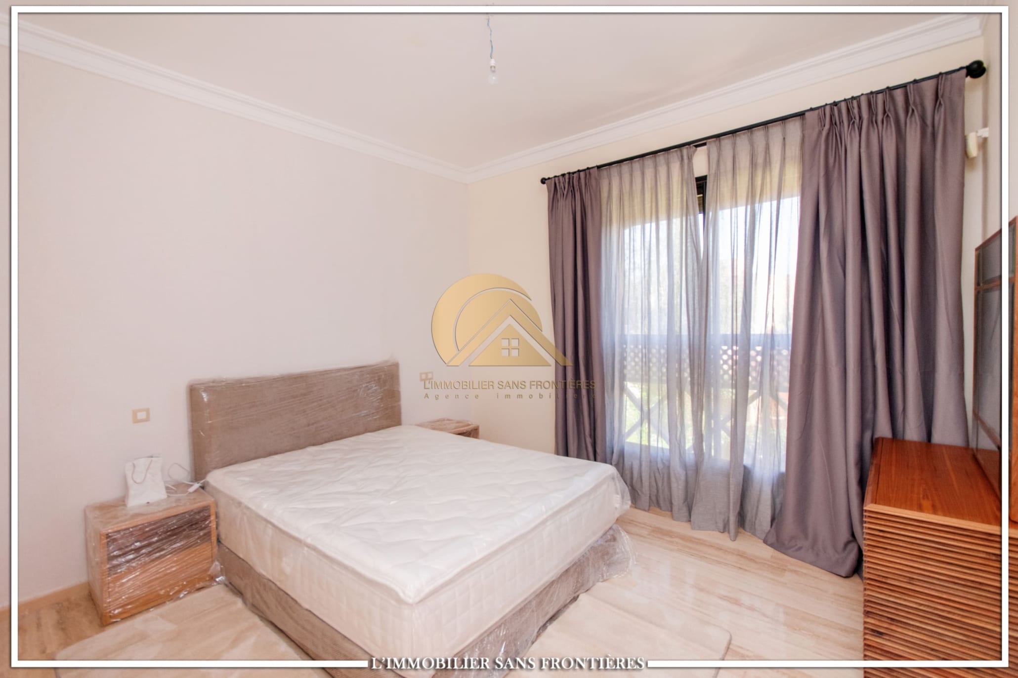 Real Estate Without Borders offers this furnished villa for rent on Route de Fes, Marrakech, located in a residence. The listing mentions a communal garden, a communal pool and a private garden. The land area is 268 m² with 200 m² of living space, and the villa benefits from complete privacy with no overlooking neighbors.
