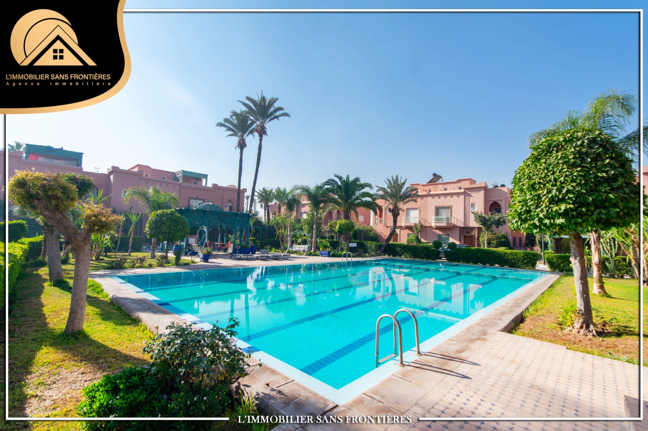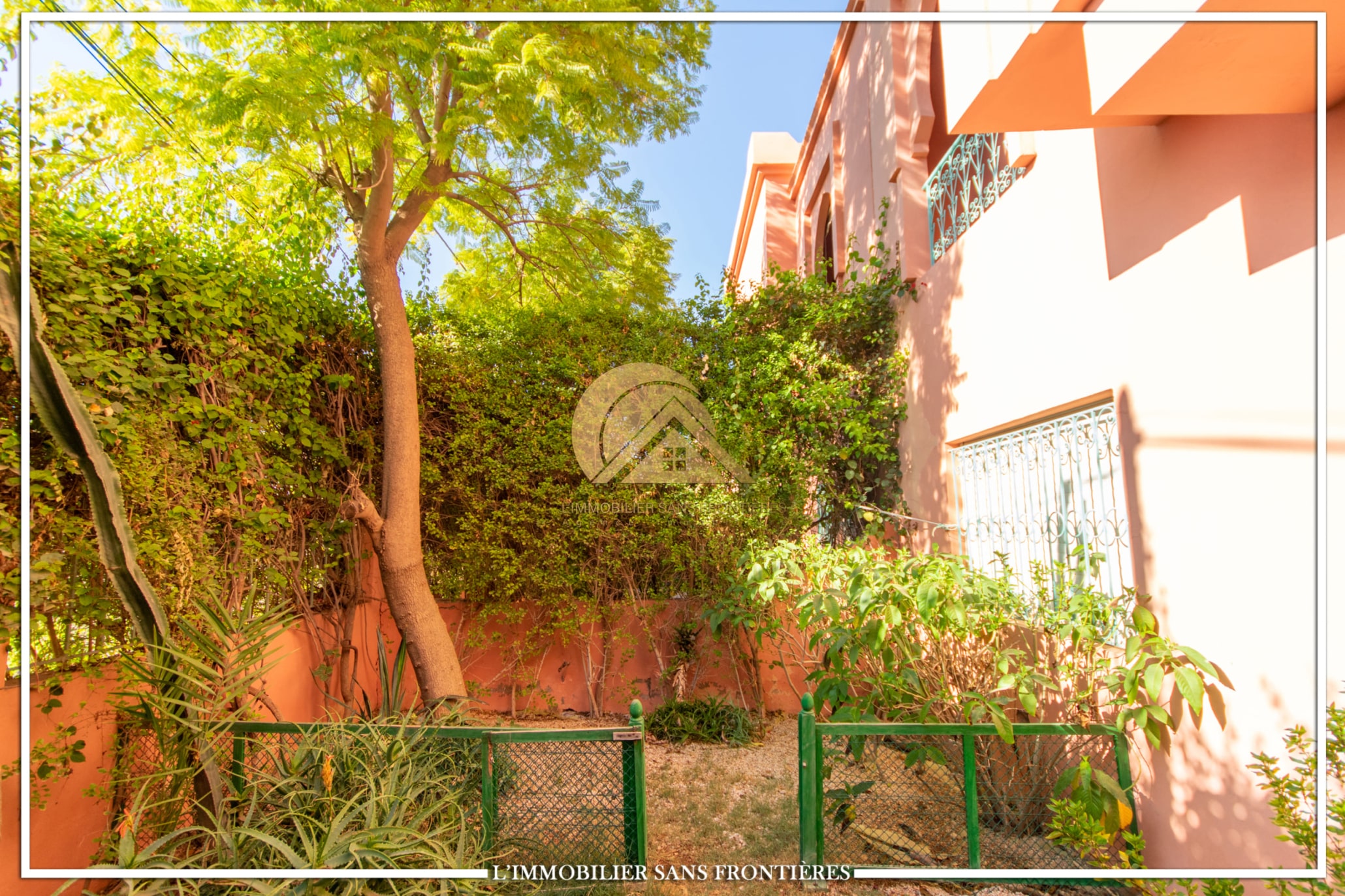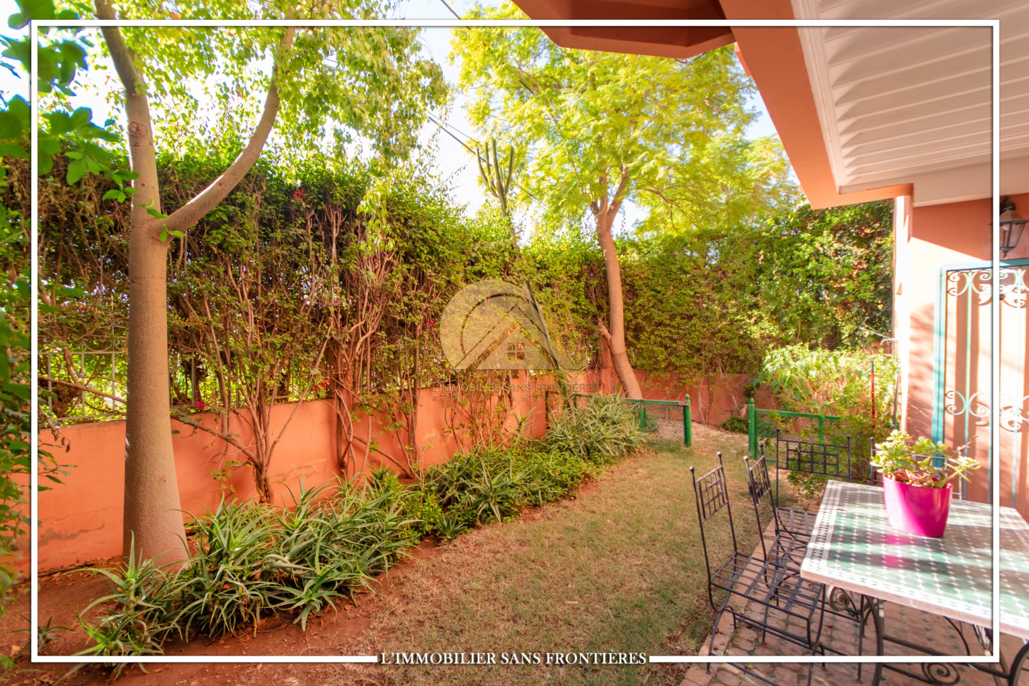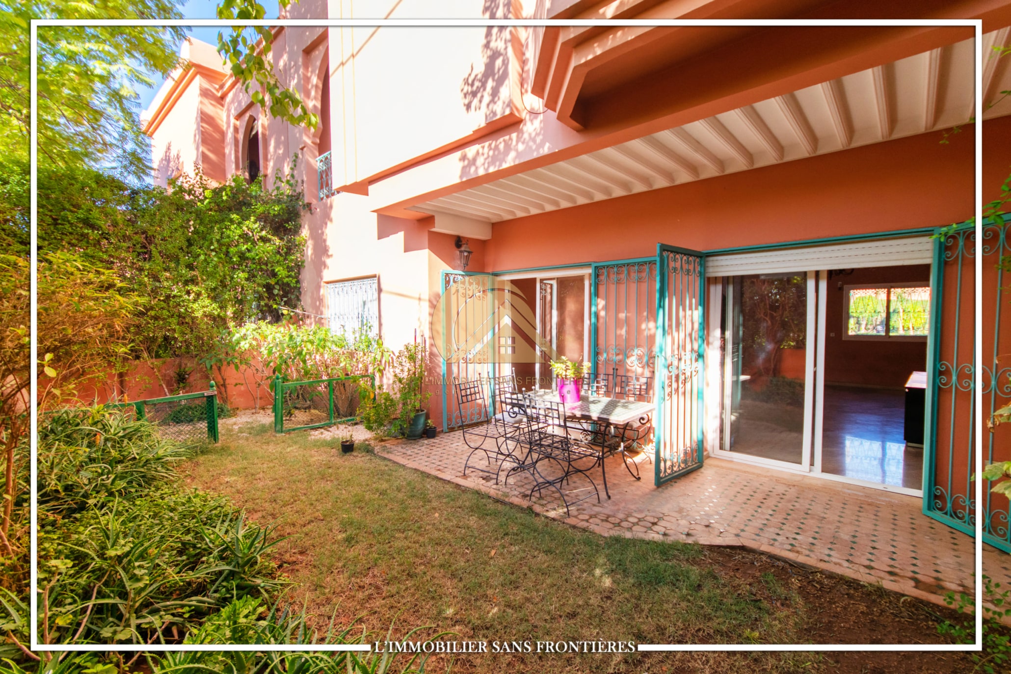 Real Estate Without Borders offers this furnished villa for rent in Targa, Marrakech, in a residential area. Mmodern and peaceful setting, as well as a private garden, a communal garden, a residence well and access to a communal pool. The stated land size is 200 m².